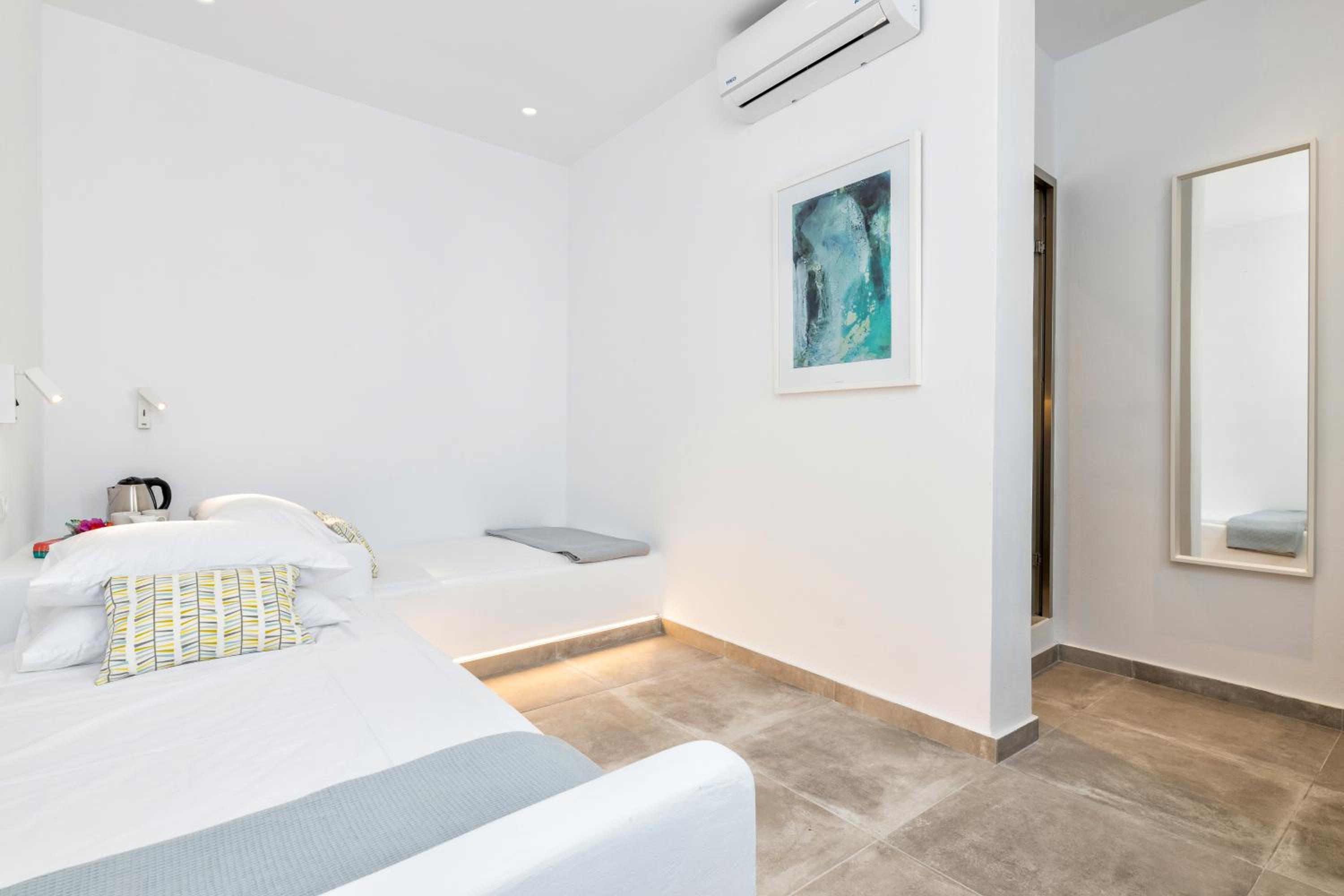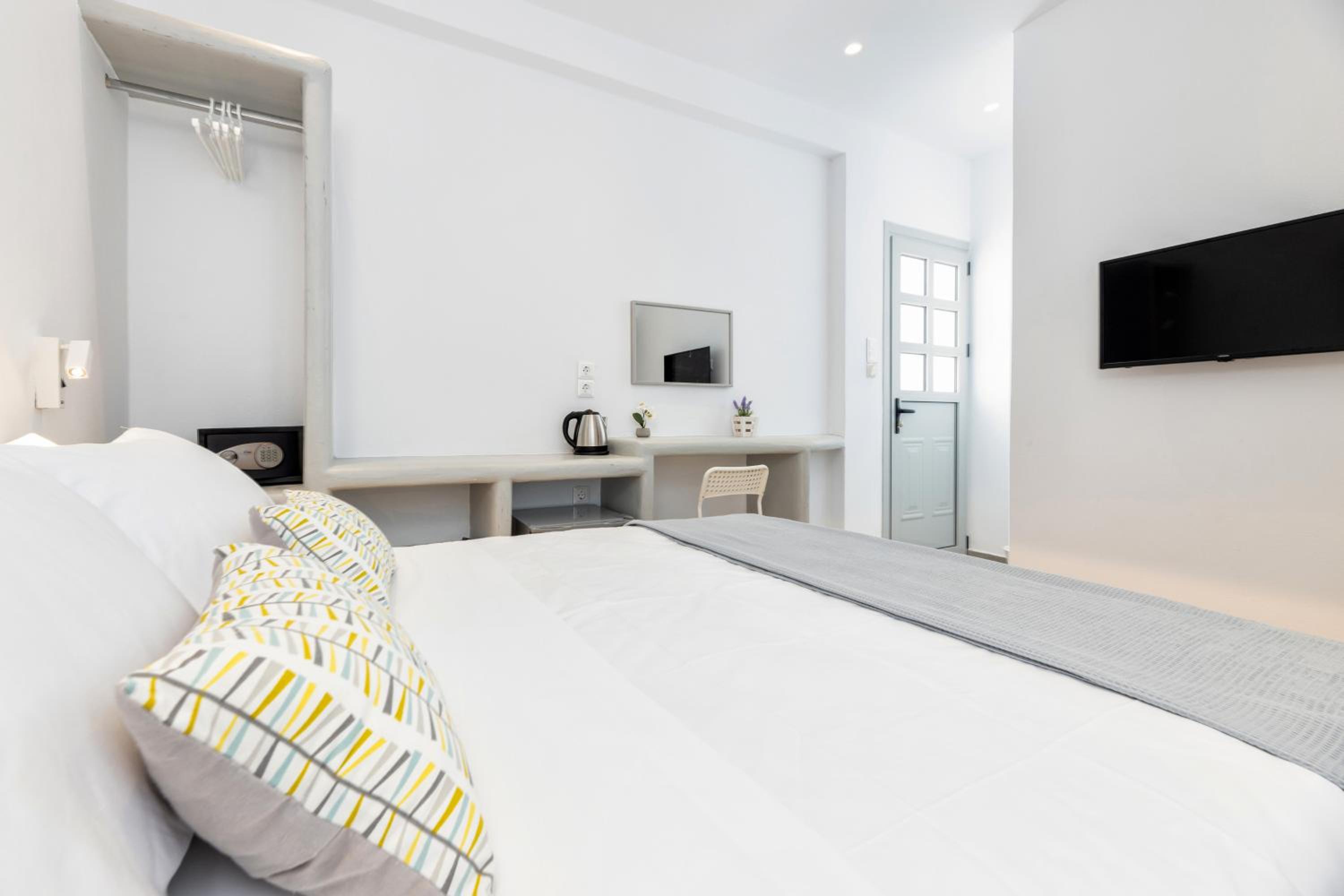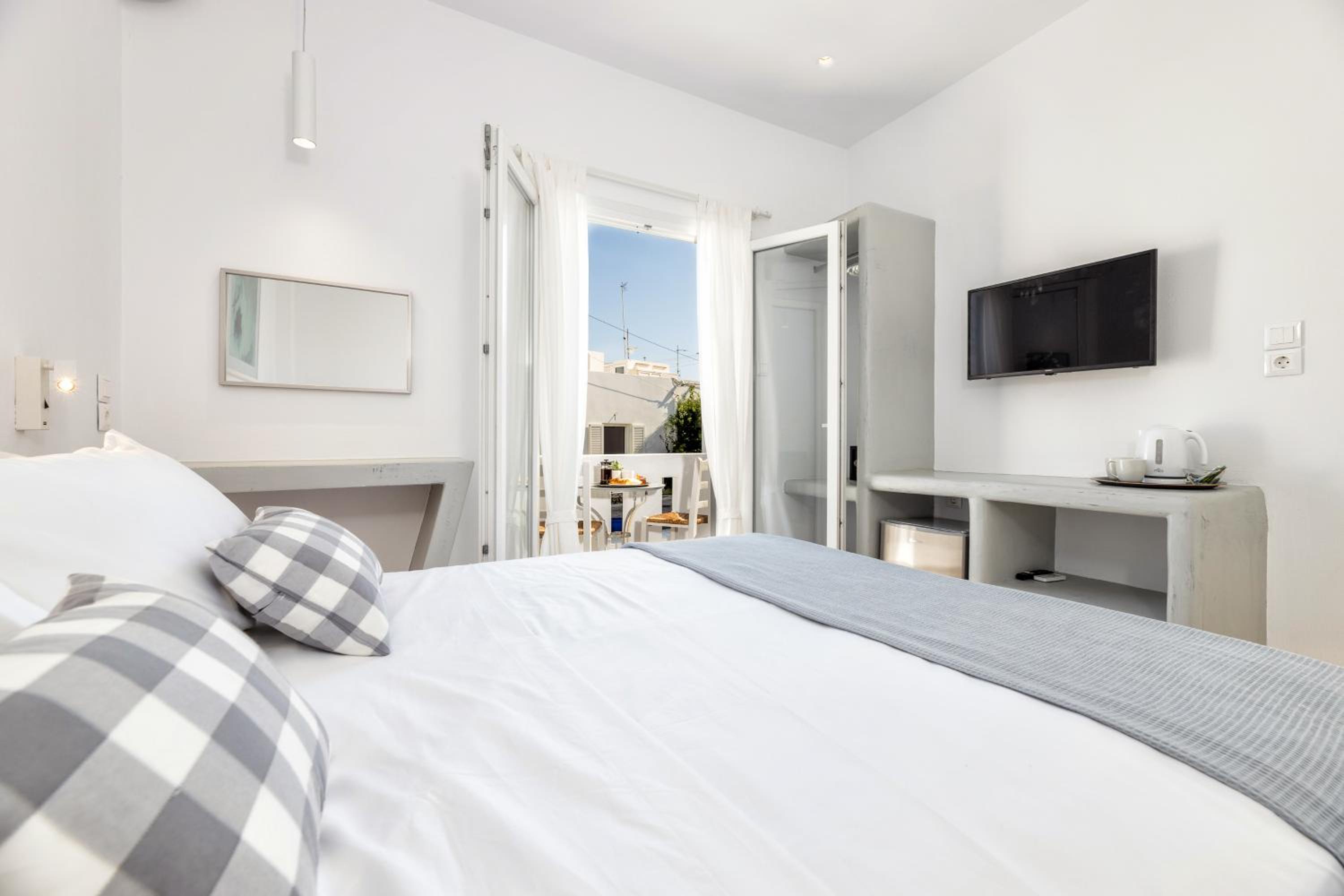 Convenient Amenities: Pelican Paros offers air-conditioned rooms with modern facilities including a flat-screen TV, safety deposit box, and private bathroom. Some rooms even feature a kitchen for added convenience.
