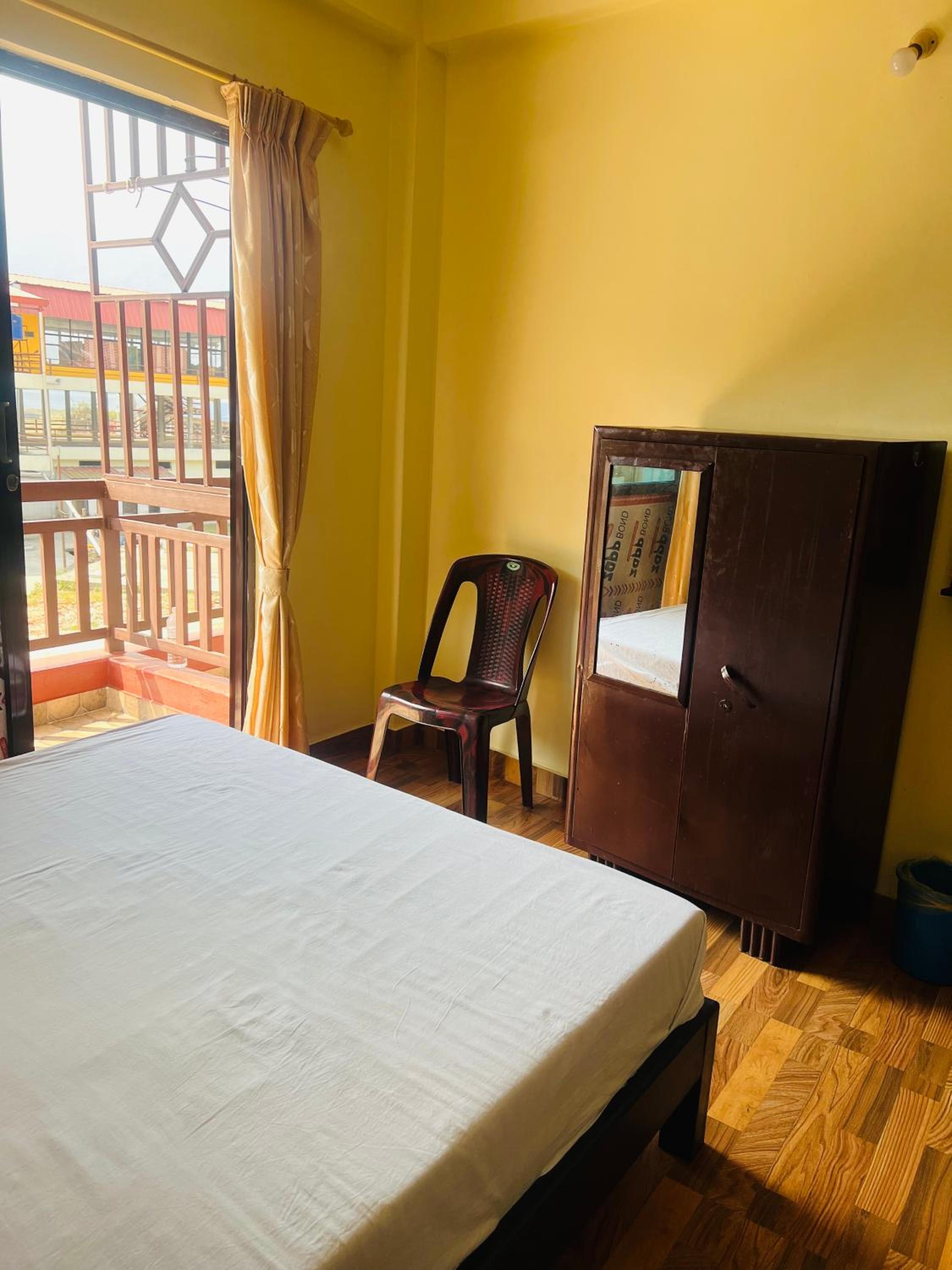 The room was good according to the price we got ..the location gives a countryside feeling with great view from the common balcony and sitting area to have a quiet time ..the caretaker lady is very caring and polite