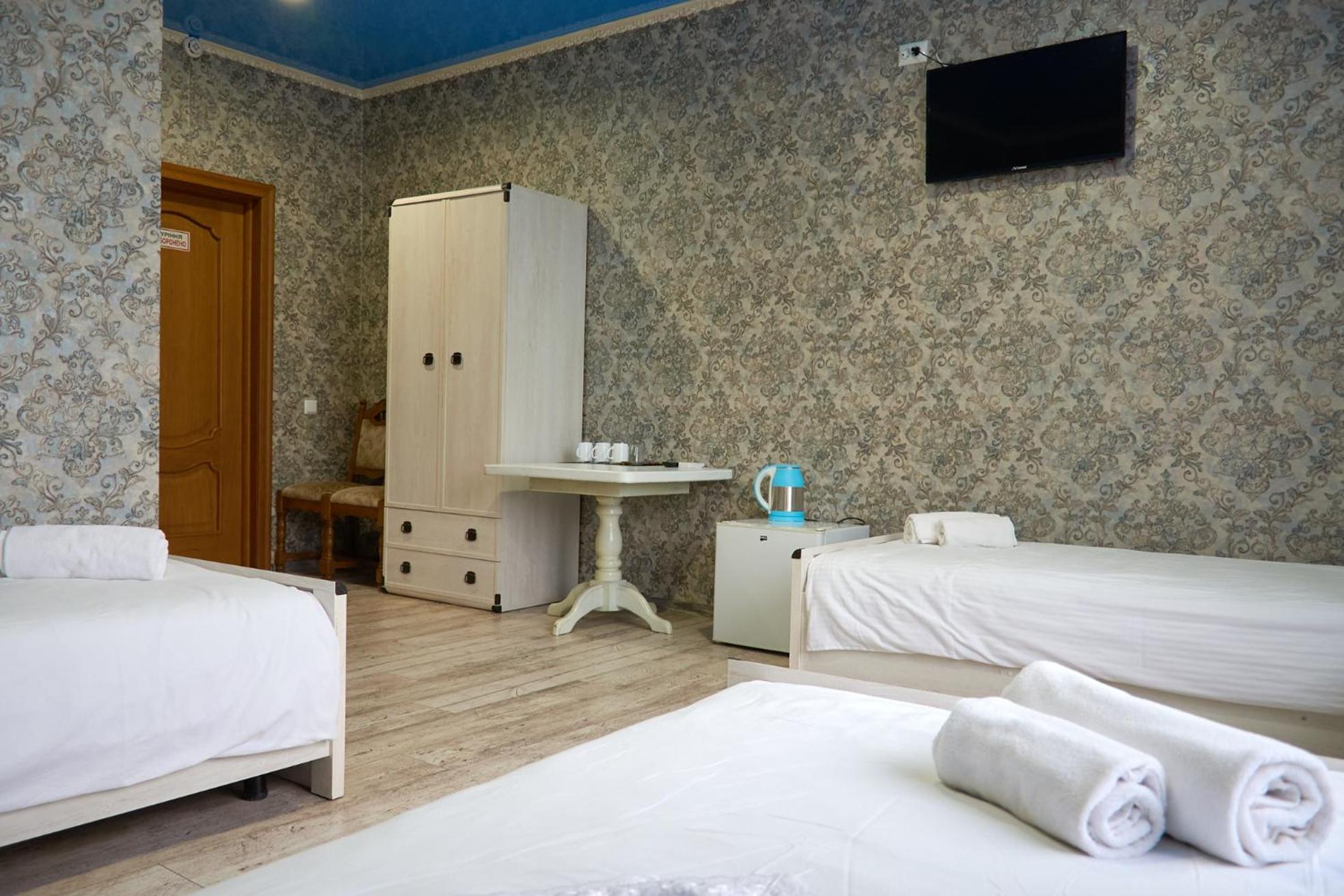 Hotel Royal (Отель Роял) in Poltava offers air-conditioned rooms with modern amenities including flat-screen TVs and private bathrooms. Each room is thoughtfully equipped with comfortable bedding and fresh towels, ensuring a relaxing stay for every guest.
