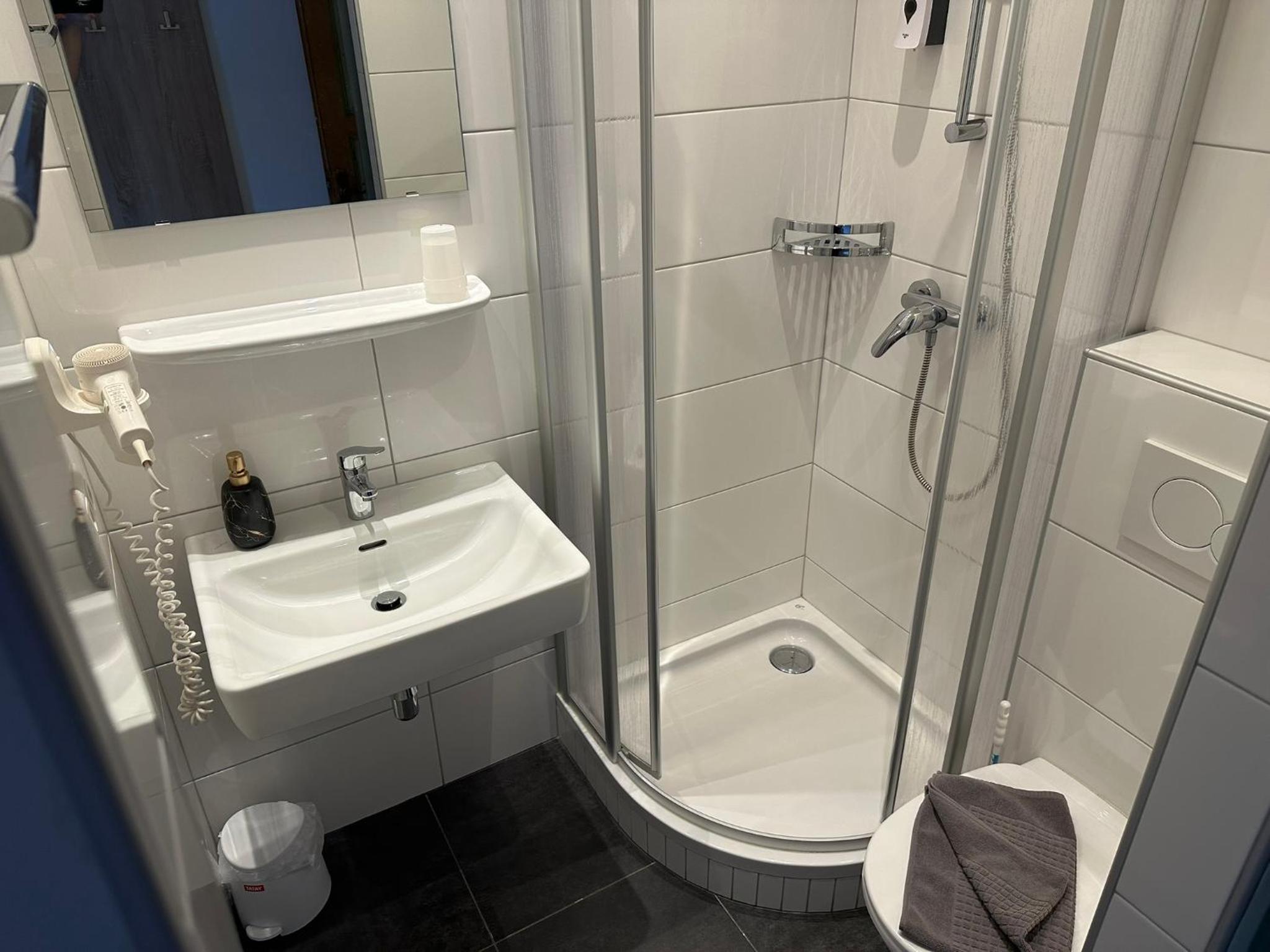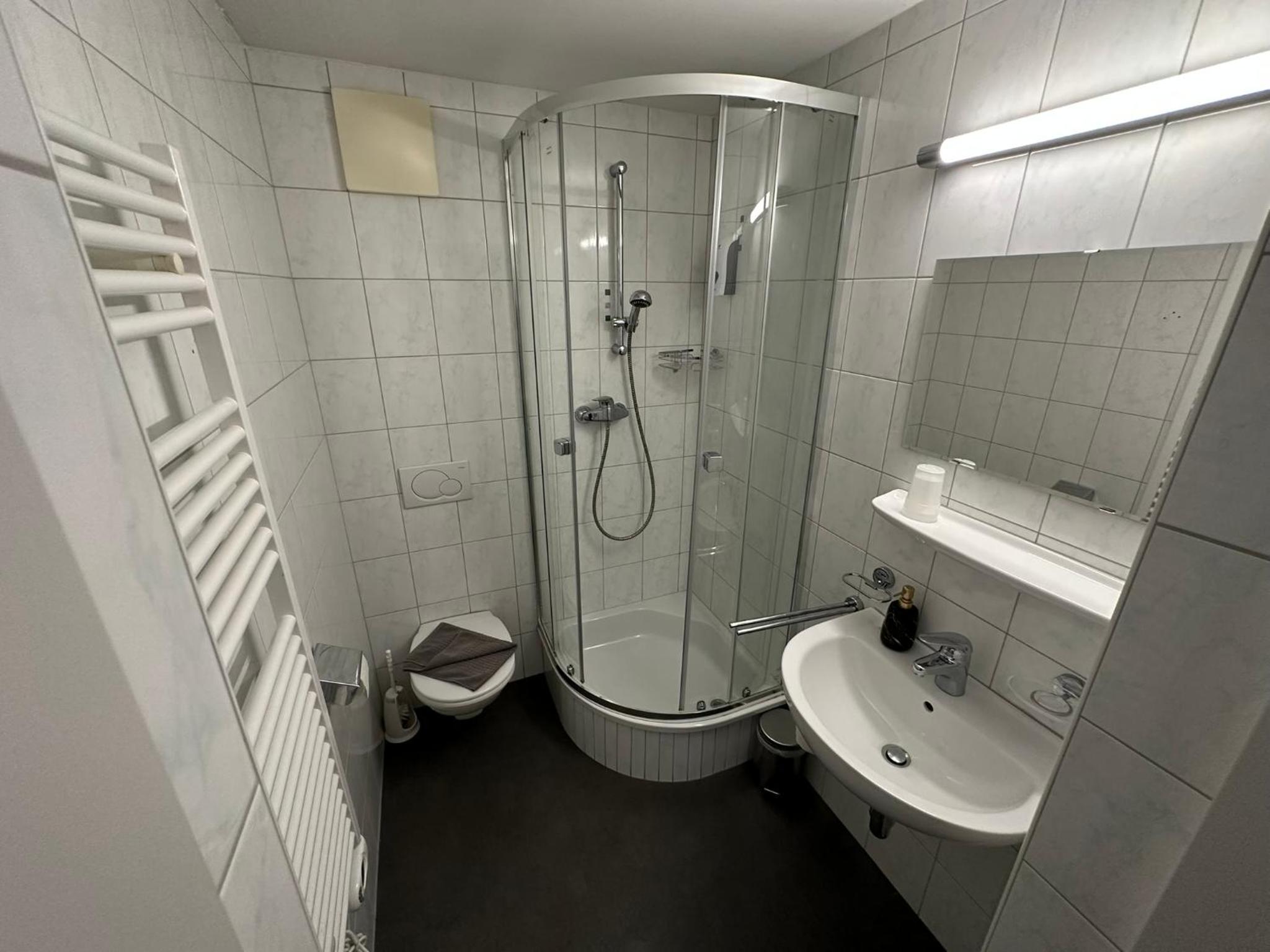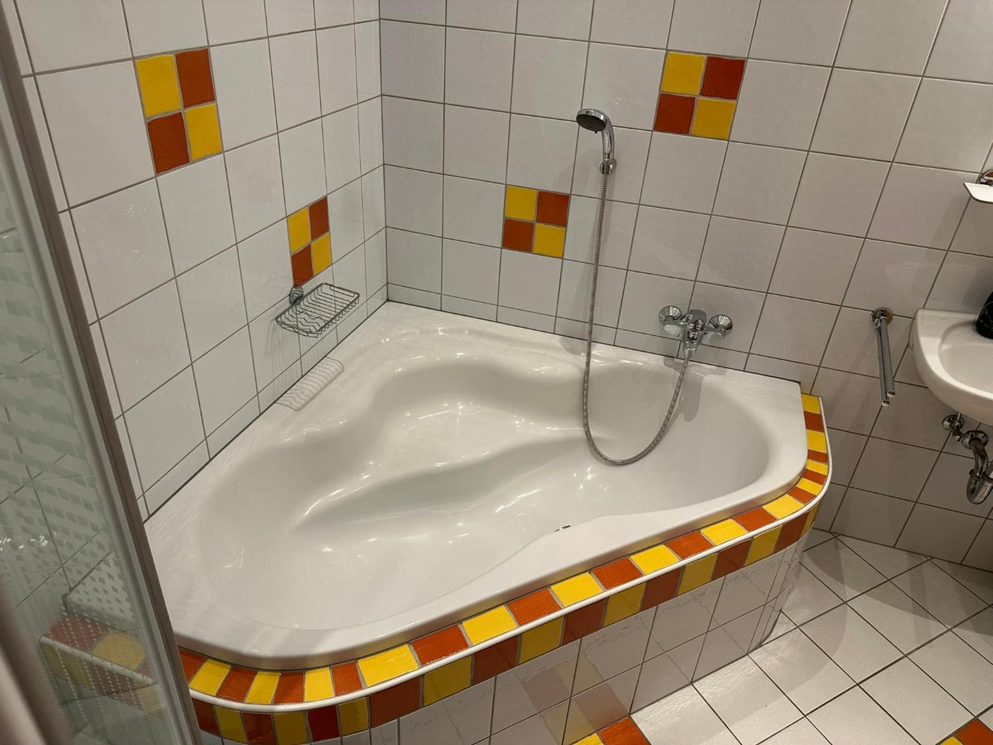 Kleine douche die niet heel warm werd of veel water had.