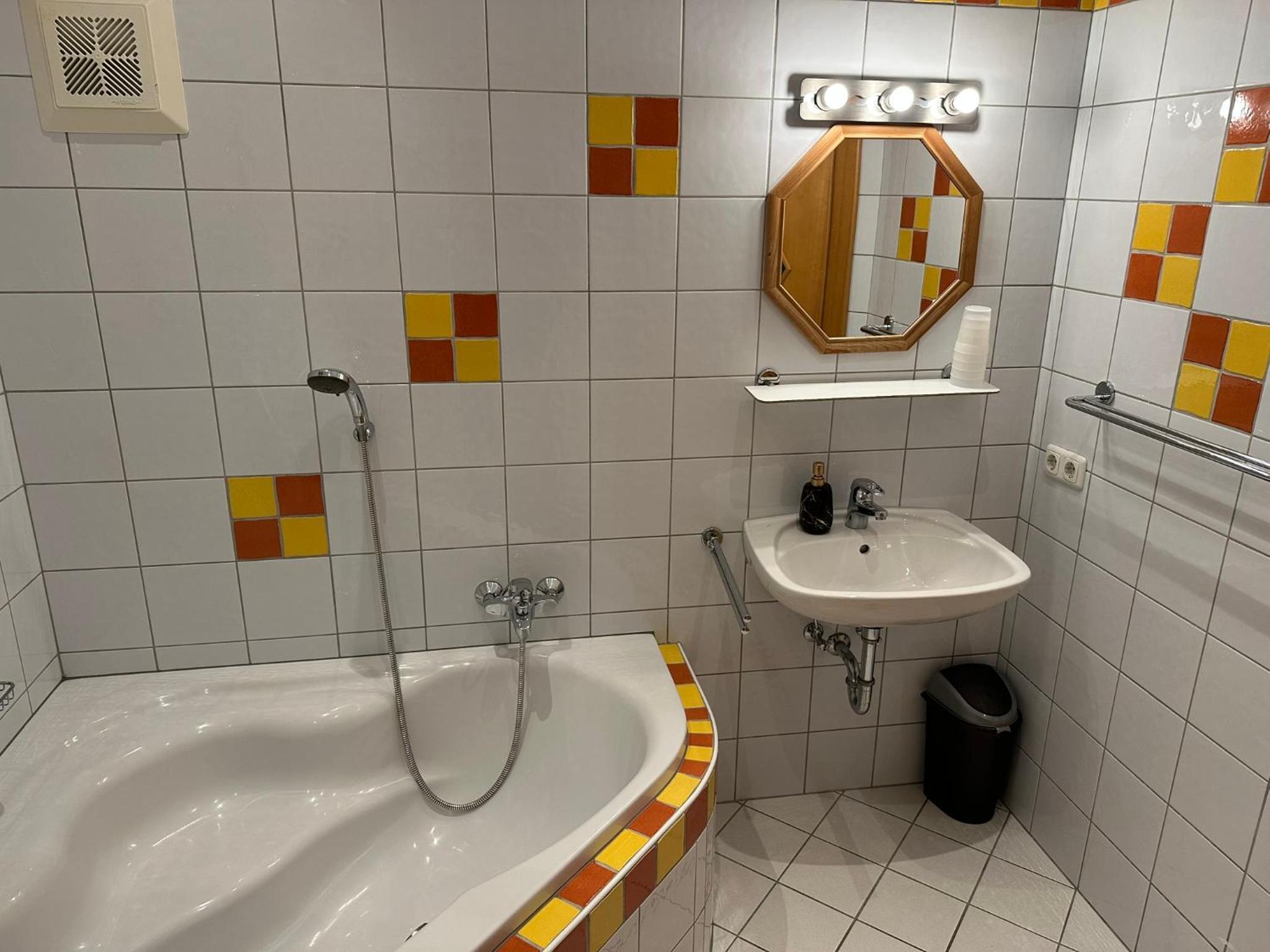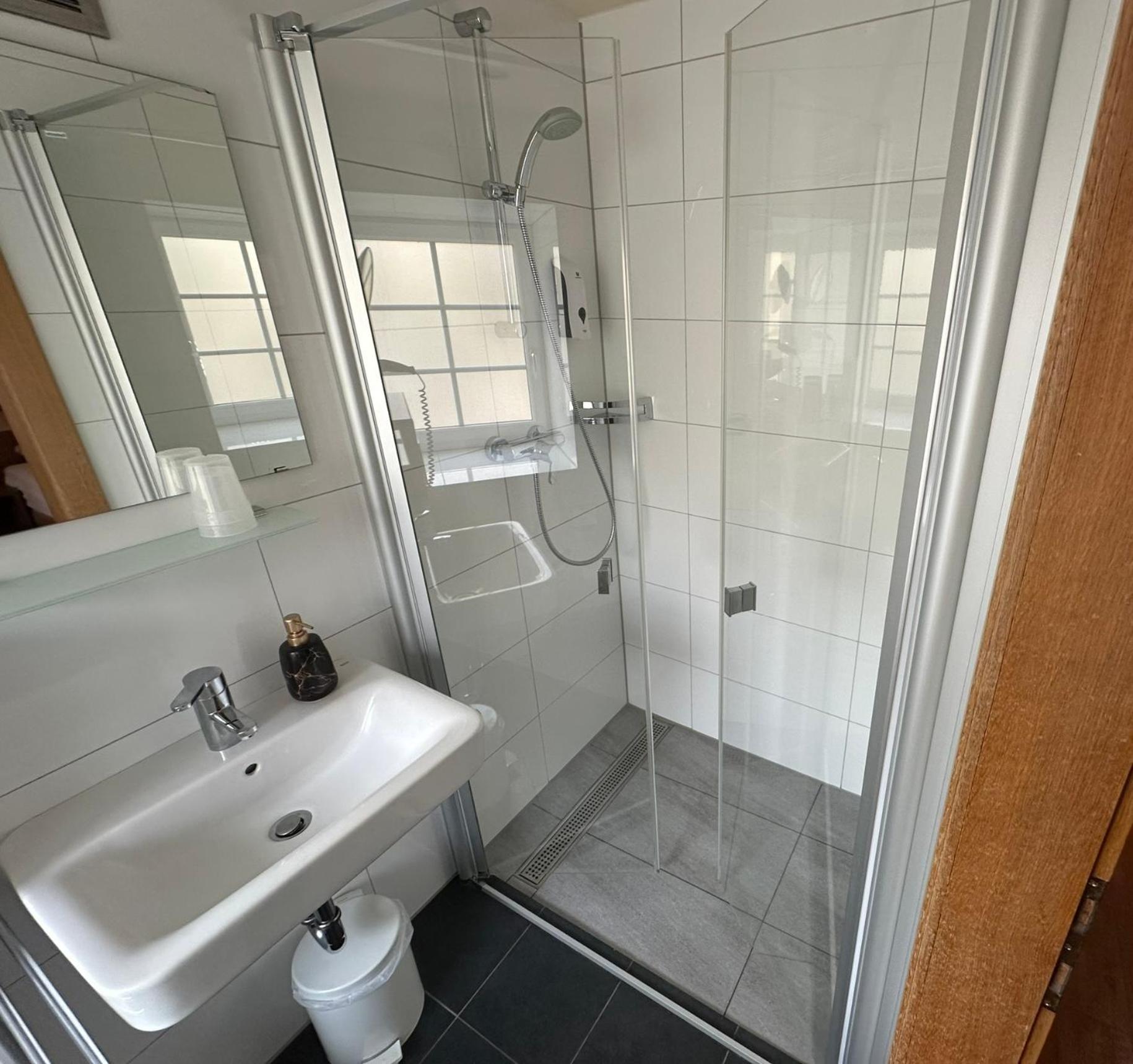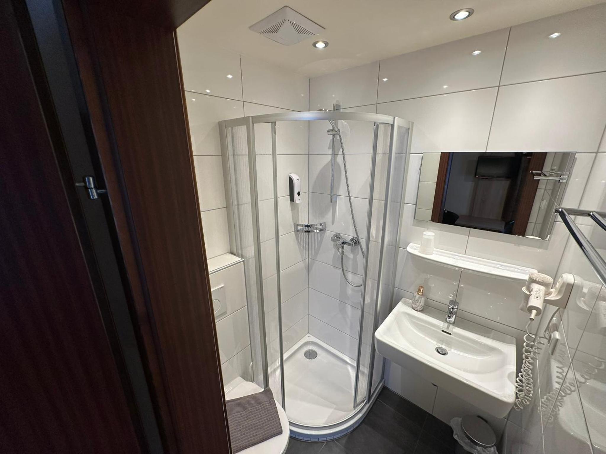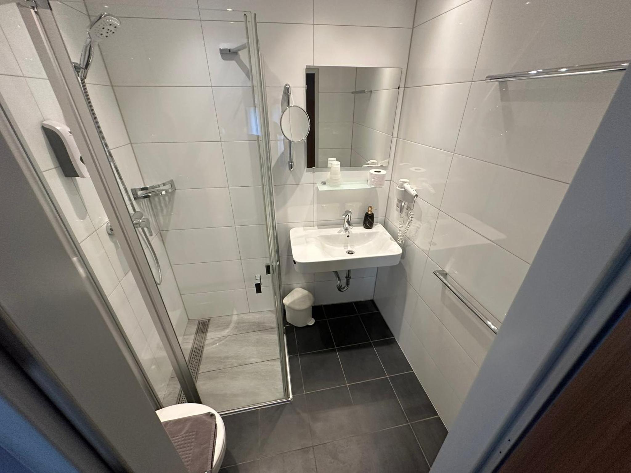 Kleine douche die niet heel warm werd of veel water had.