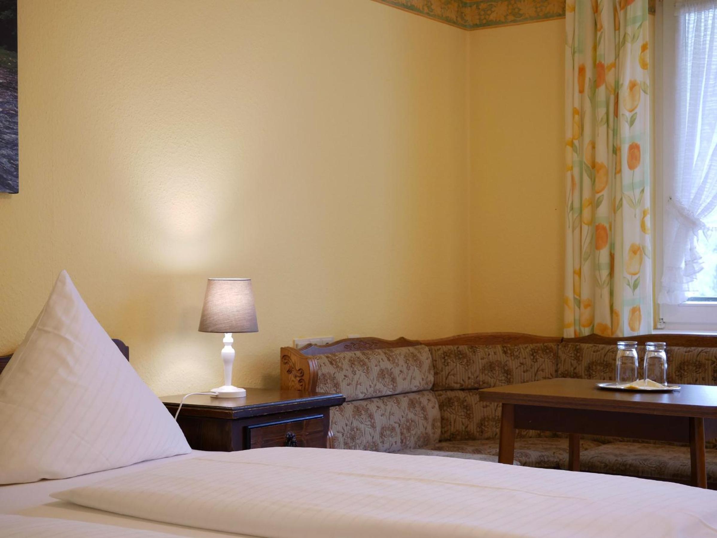 Das Frühstück war gut. Alles vorhanden und mit Liebe angerichtet. Das hauseigene gut Bürgerliche Restaurant ist sehr gut und alle dort sind sehr freundlich. Unser Hund war sehr willkommen. Zahlreiche Wanderwege liegen in der Nähe. Auch wenn das Haus etwas in die Jahre gekommem ist hat es viel Charme. Wir kommem wieder