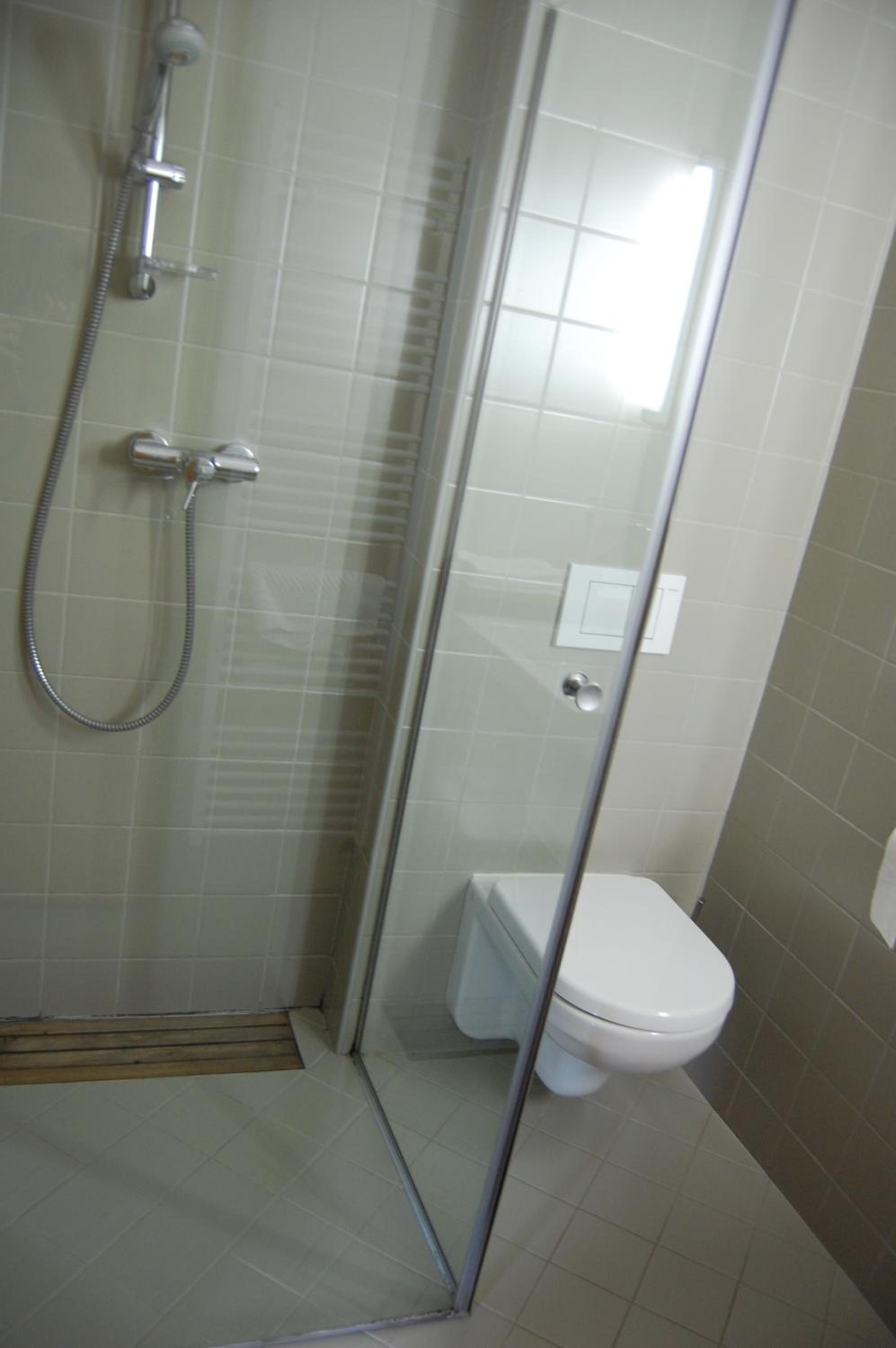 chambre mal equipée aucun cintre pour pendre les habits …un seul siège …. salle de bain très mal conçue : inondée par la douche et très glissante