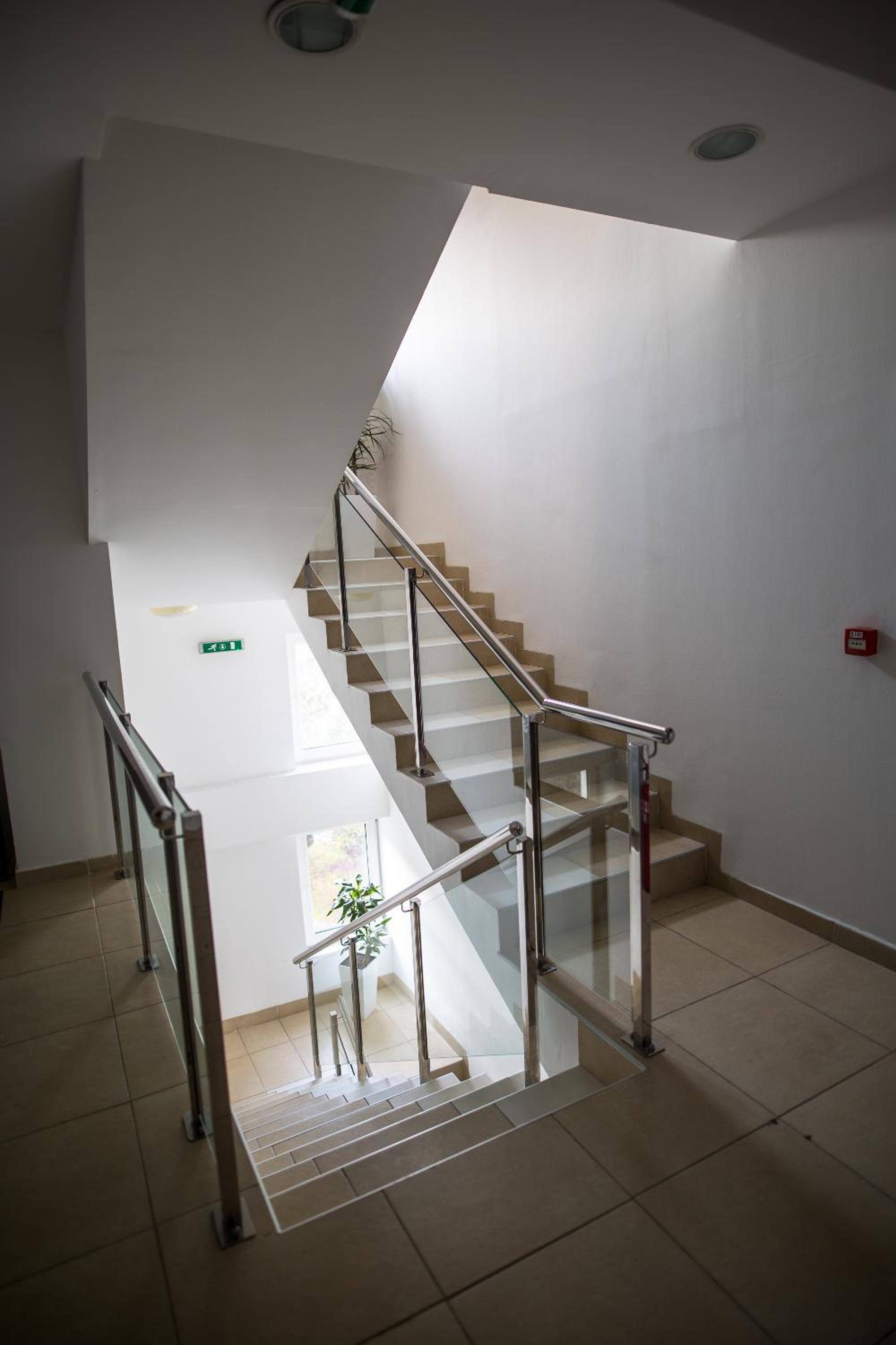 Zvoh iz hodnika v sobo. EVakuacijska lučka v sobi, ki moti spanje. Obrabljena oprema.