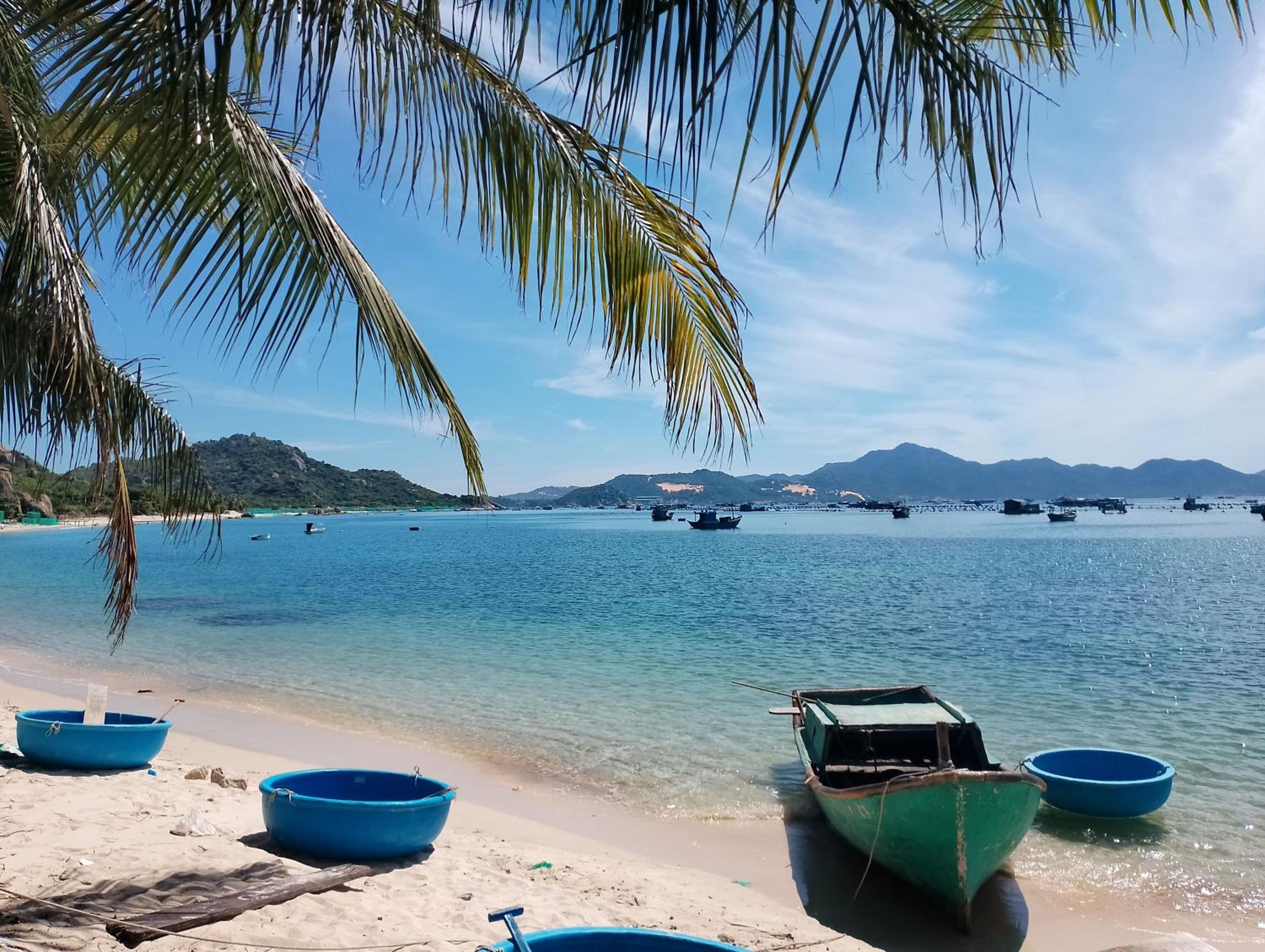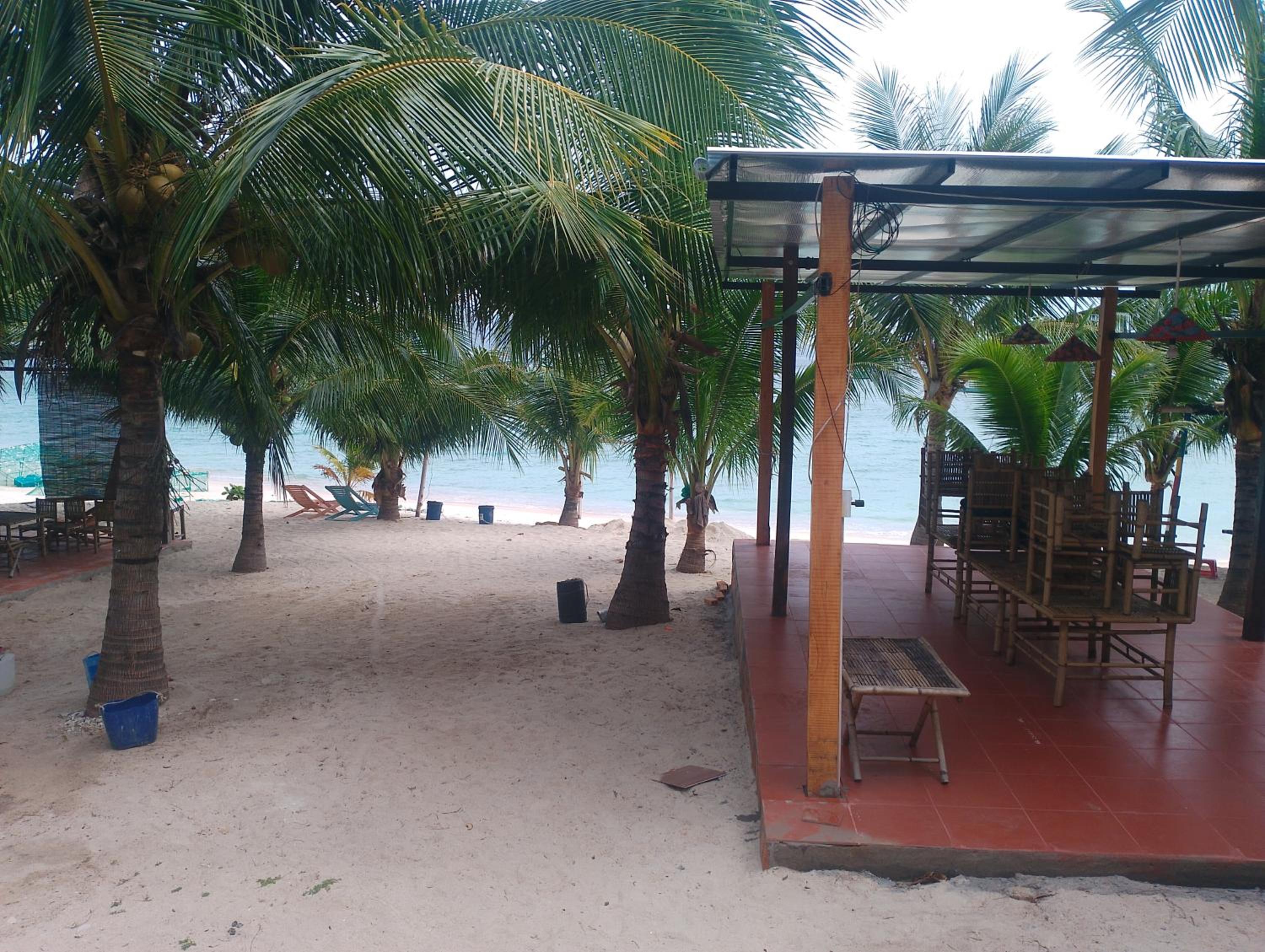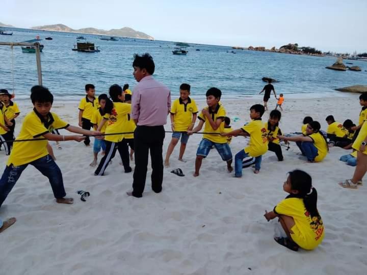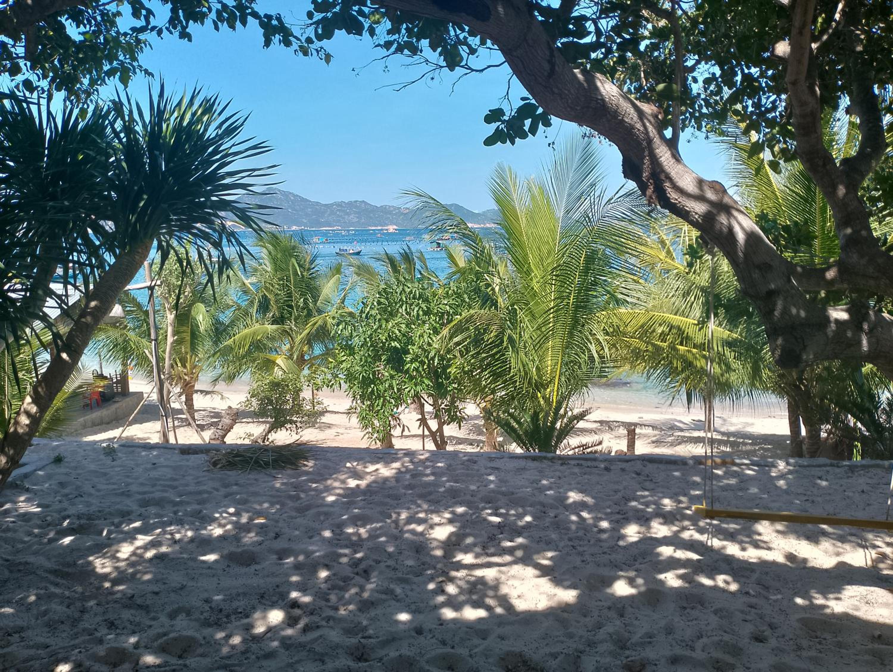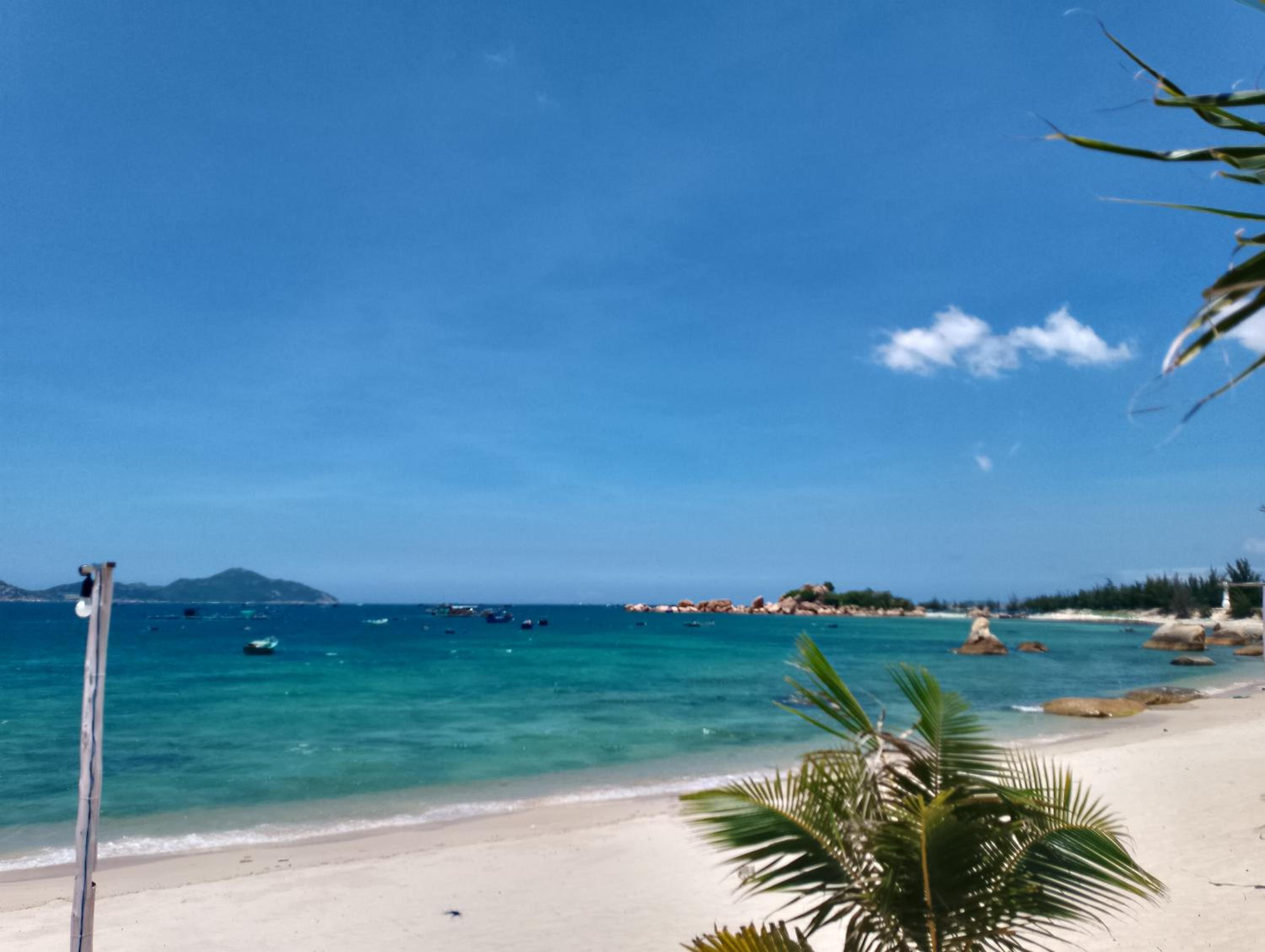 Biển đẹp, phòng nghỉ sát biển, có thuyền thúng cho trẻ em chơi, bão biển có khá nhiều mảnh san hô dạt vào, yên bình.