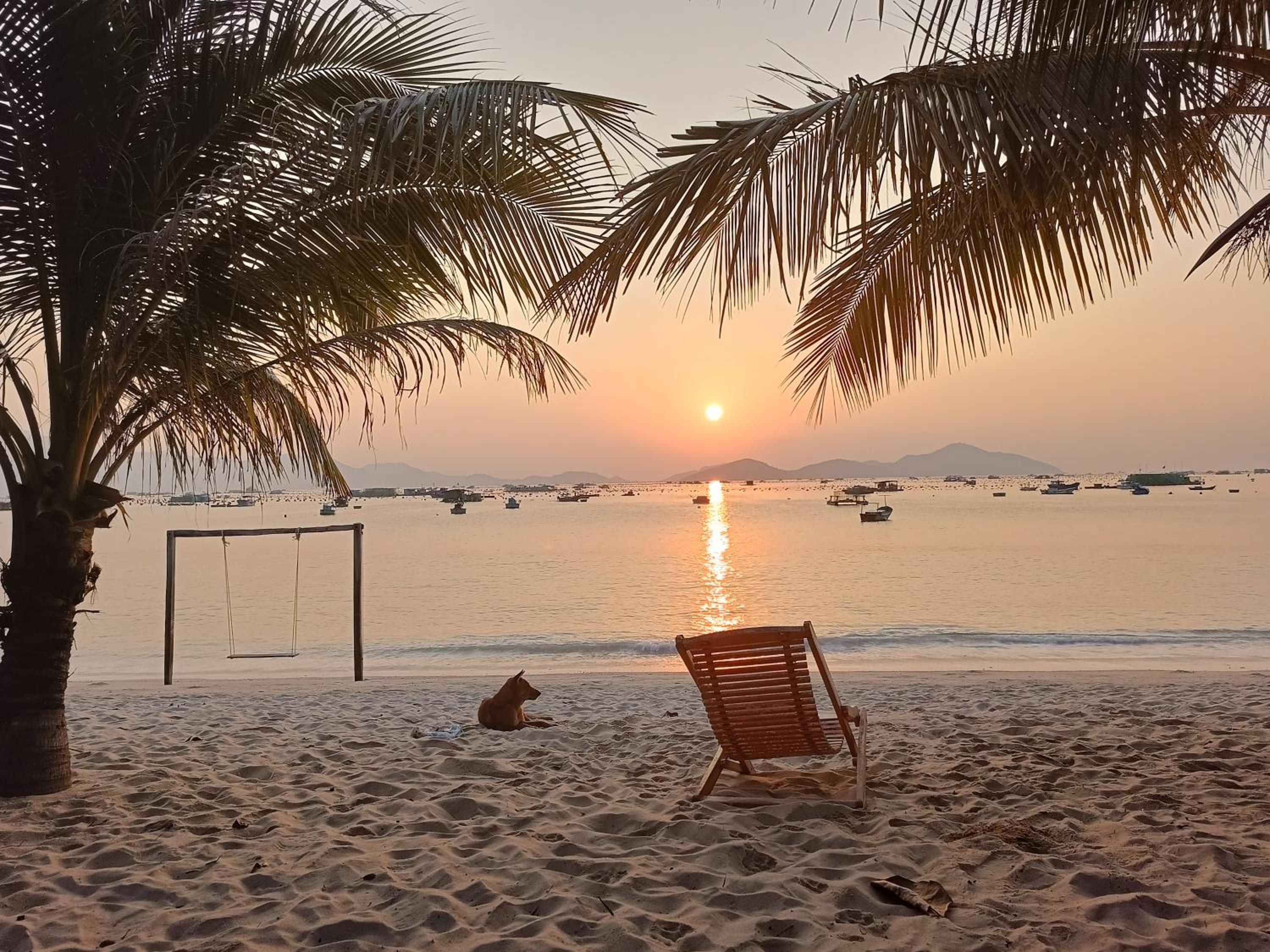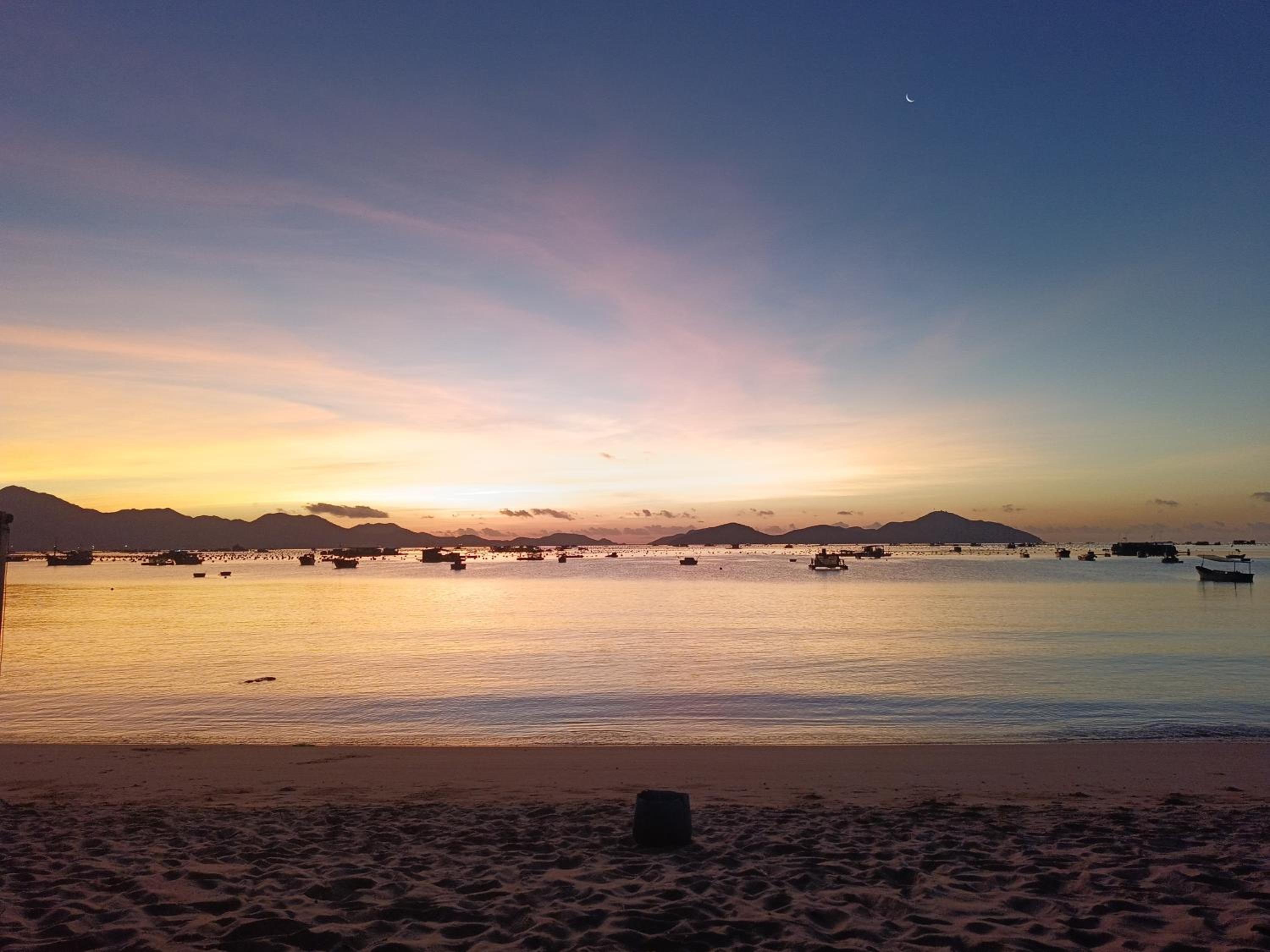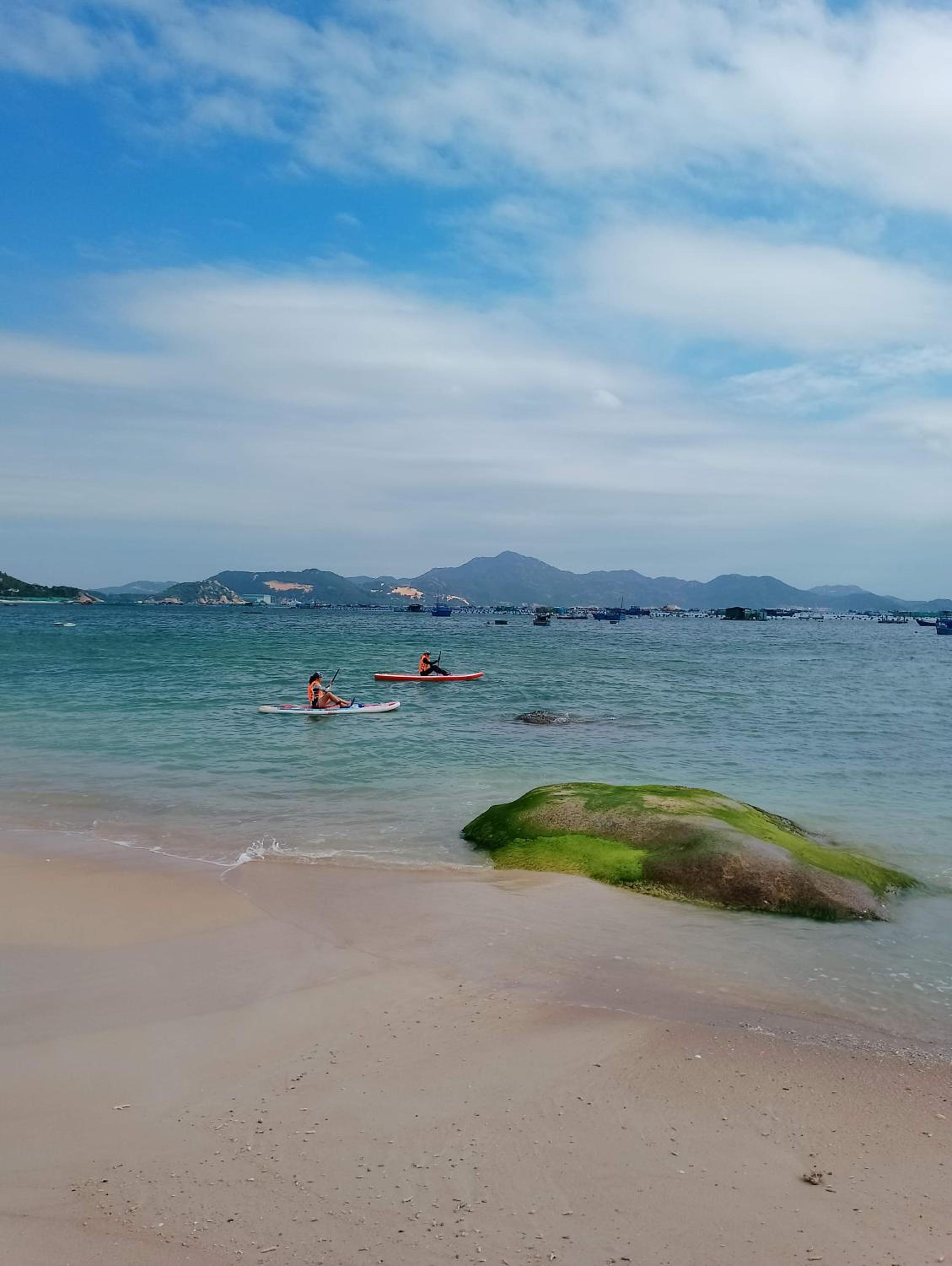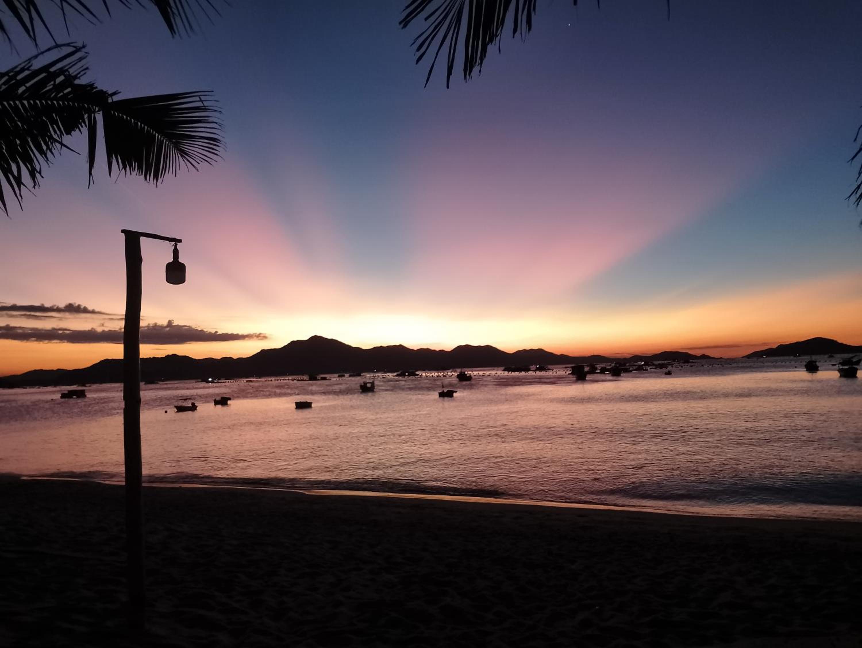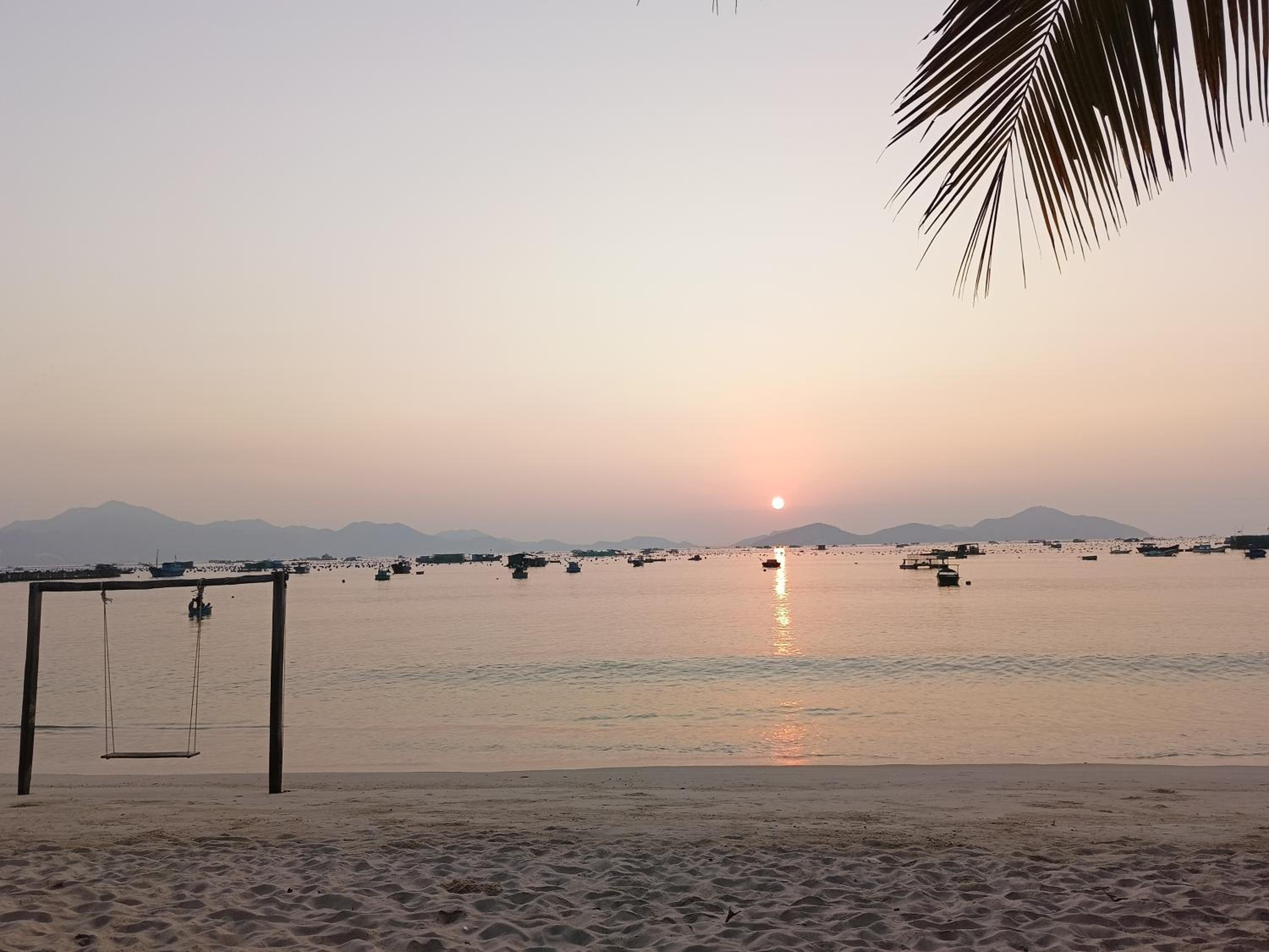 Biển đẹp, phòng nghỉ sát biển, có thuyền thúng cho trẻ em chơi, bão biển có khá nhiều mảnh san hô dạt vào, yên bình.