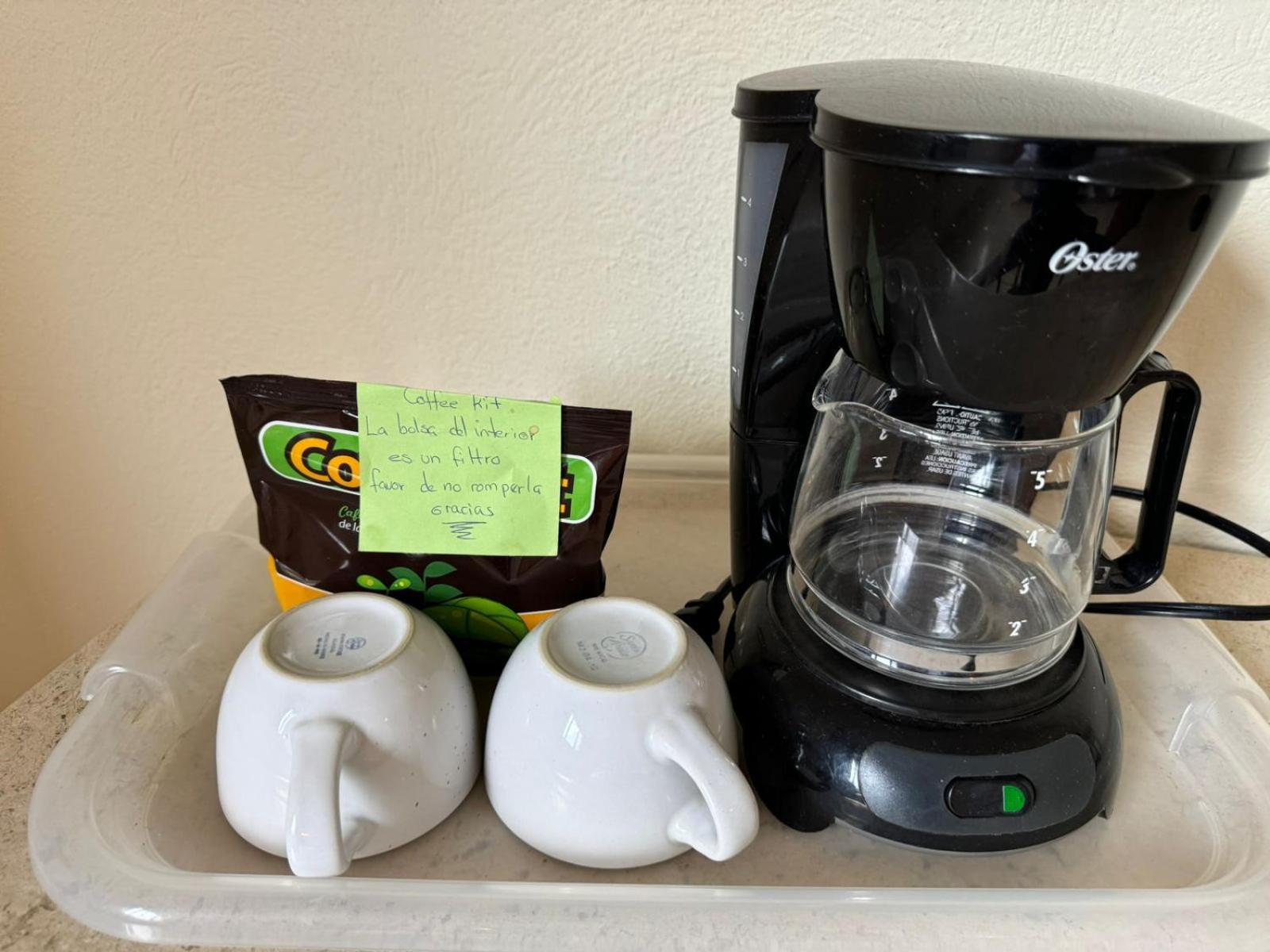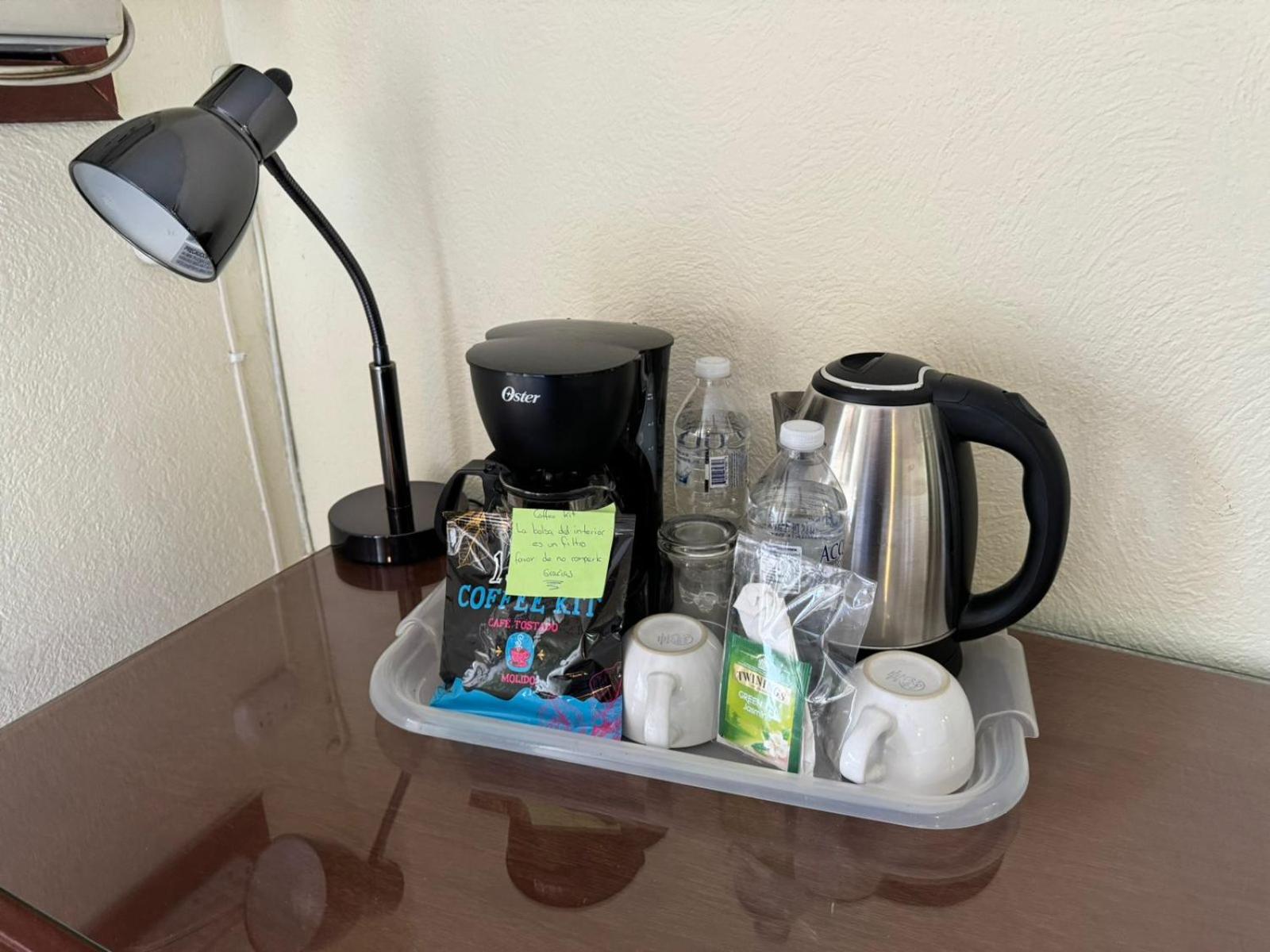 que no habia una botella de agua en la habitacion para el cafe ;)