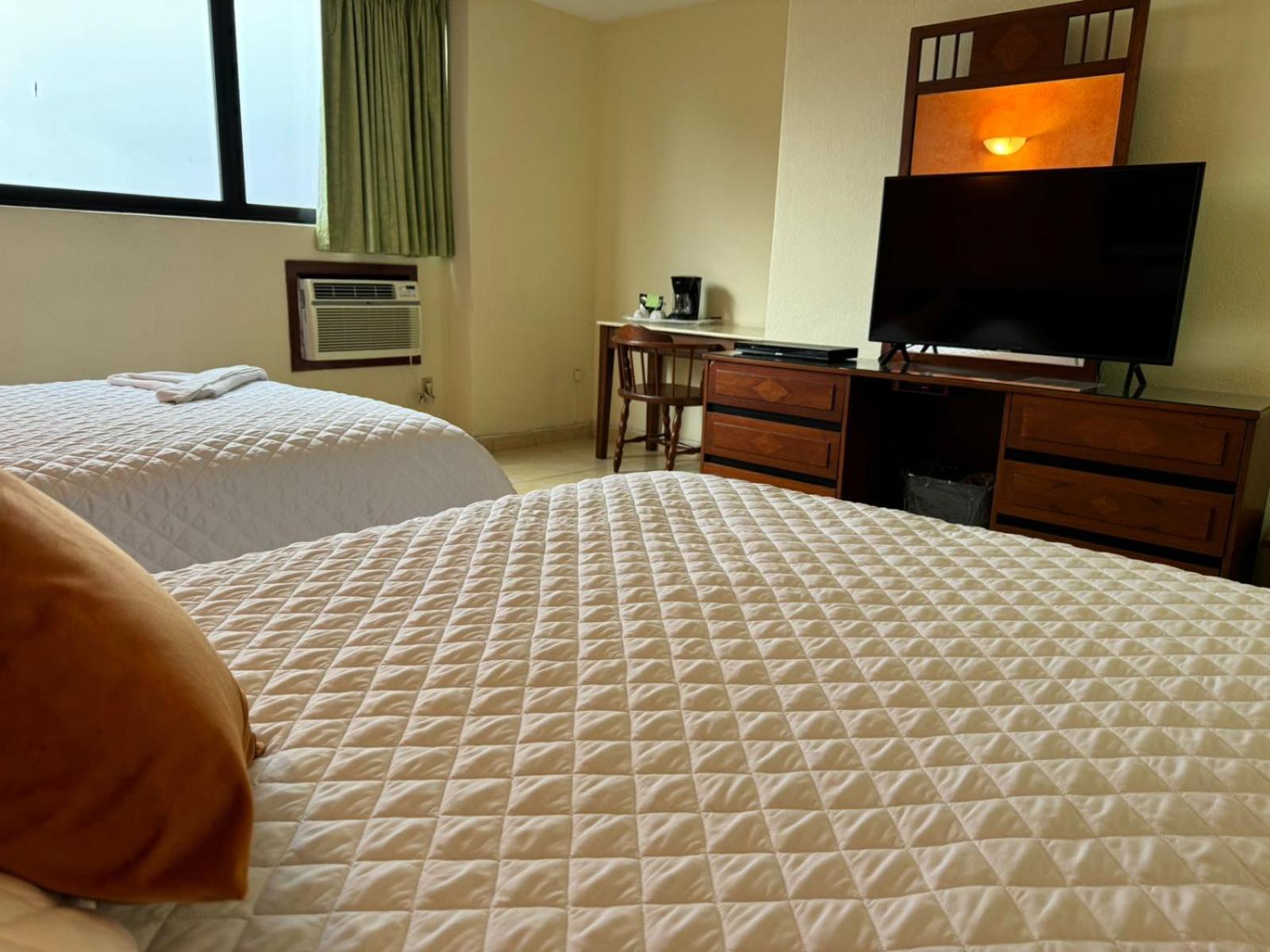 No es un hotel nuevo pero la relación calidad-precio es inmejorable, esta en el centro de la ciudad lo que lo hace tener una muy buena ubicación si vas de paseo, tiene estacionamiento, elevador, wifi estable, las camas son comodas y en general el hotel esta bien mantenido. Estuvimos muy agusto.