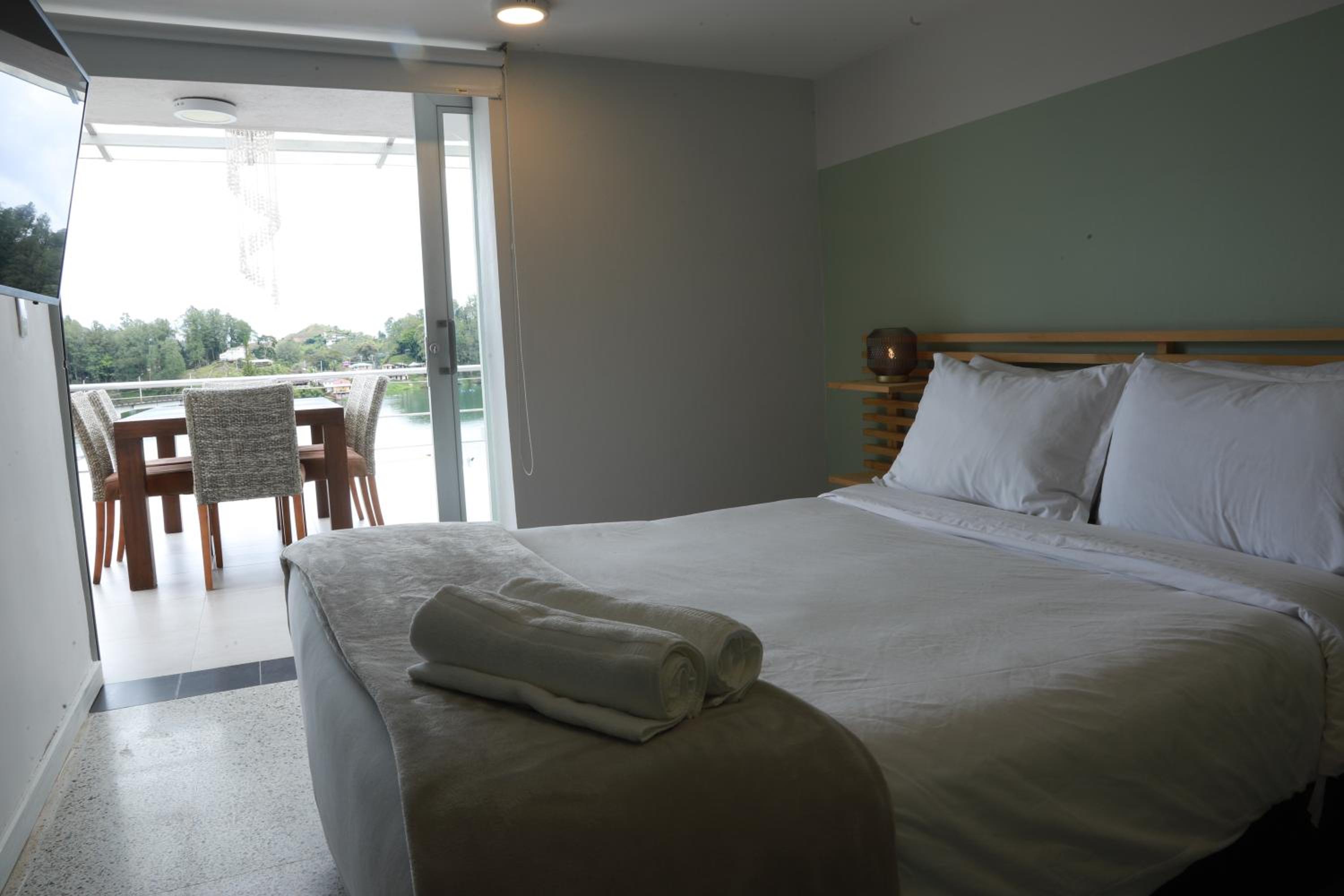 Amazing location within walking distance of El Peñón. The rooms were great and the shower was strong and hot. Daniel was super helpful, and answered questions about Guatape and transportation. Daniel also spoke English, which was helpful because my Spanish skills aren't great. Additionally the jacuzzi was awesome. I didn't have time to try anything but they also offer jet skis, wakeboarding and other activities. I would recommend this place to anyone visiting El Peñón or Guatape.