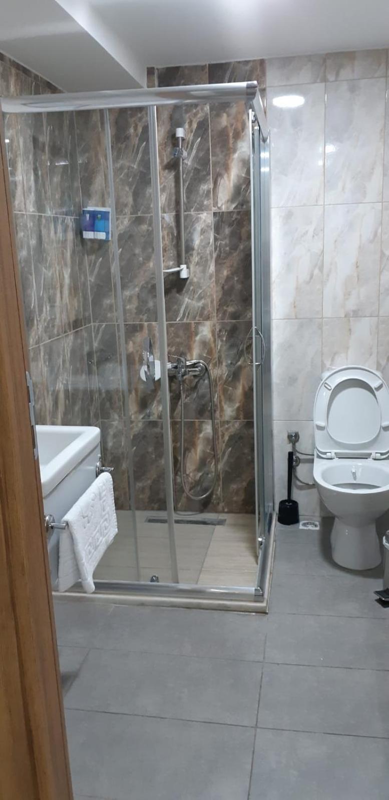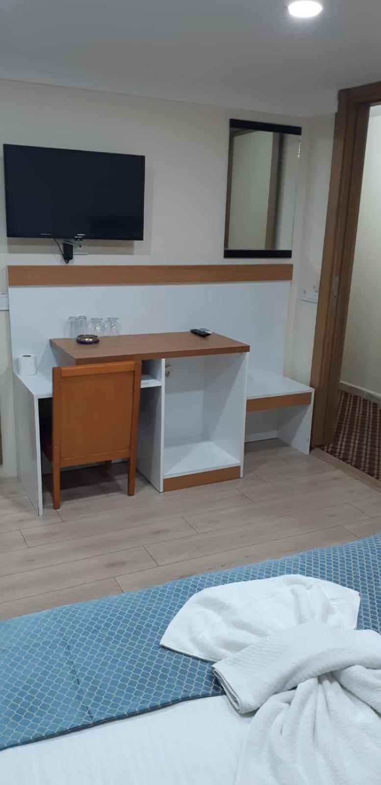 Modern Amenities: Enjoy air-conditioned rooms with private bathrooms and flat-screen TVs at Arya Hotel in Istanbul.