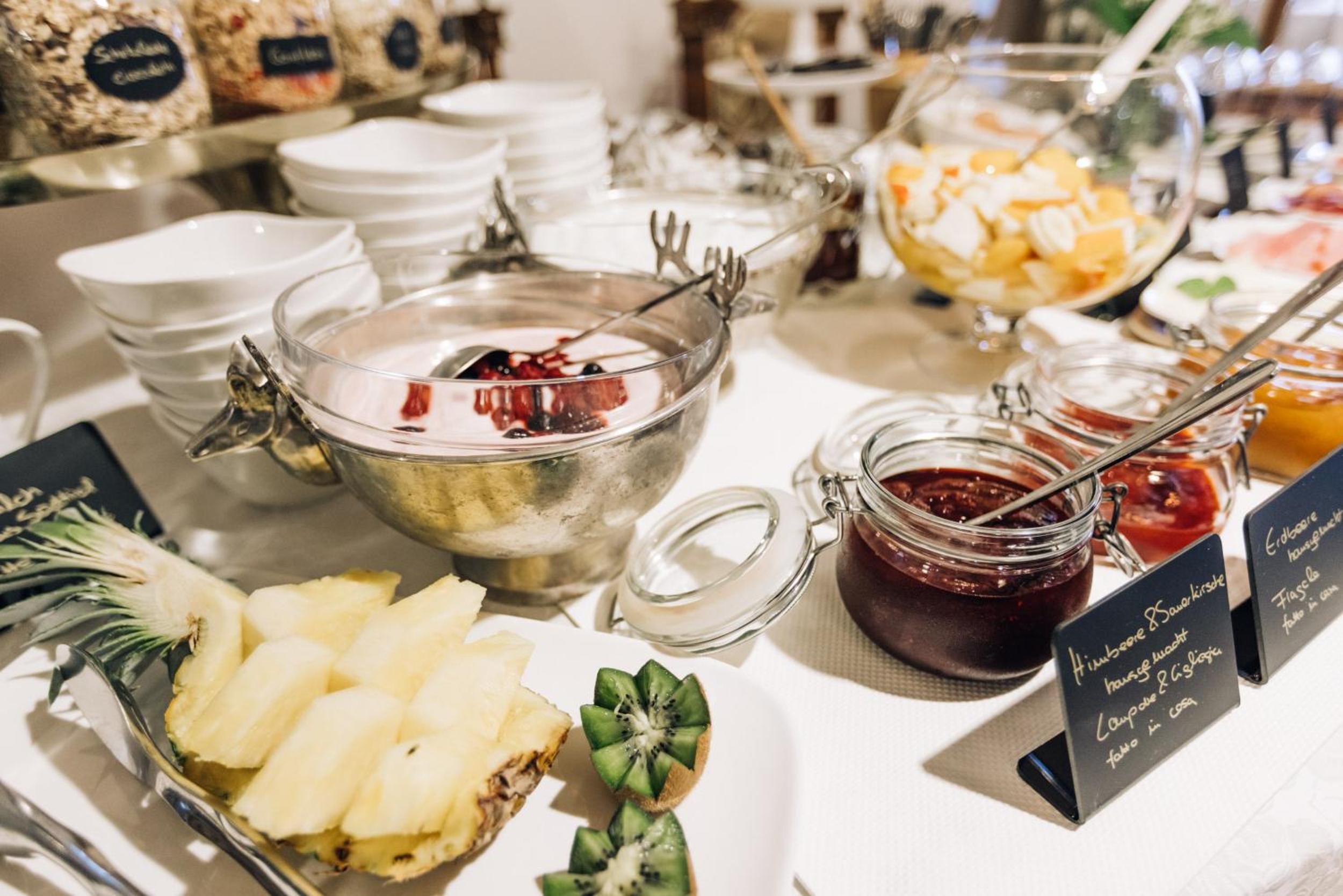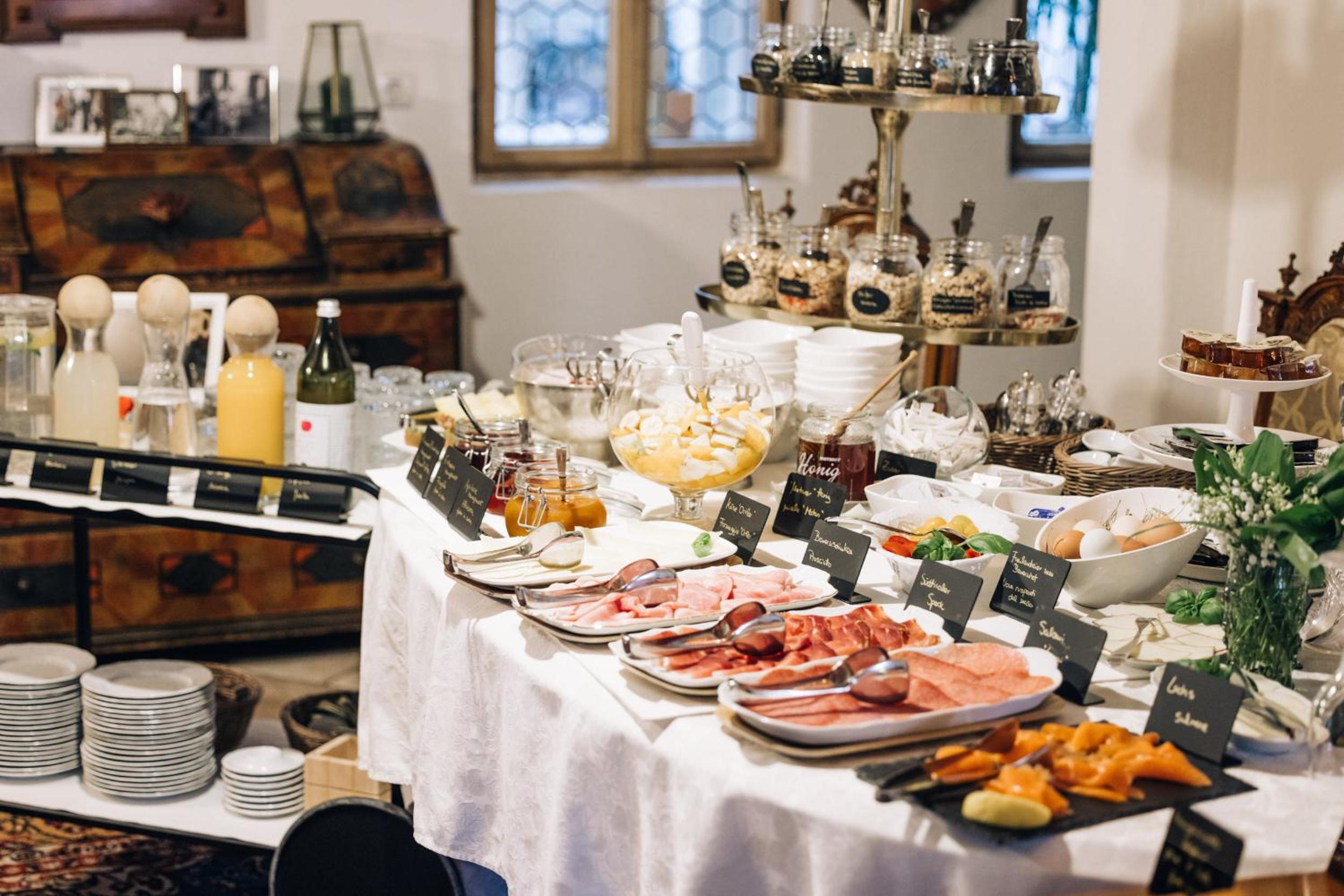 Indulge in freshly squeezed juices, homemade treats, and eggs at our breakfast buffet each morning. Enjoy our garden, sun terrace, and reading area with books on South Tyrol. Book your stay at Amplatz 1523 - B&B and Suites now to experience a delightful blend of history and comfort.