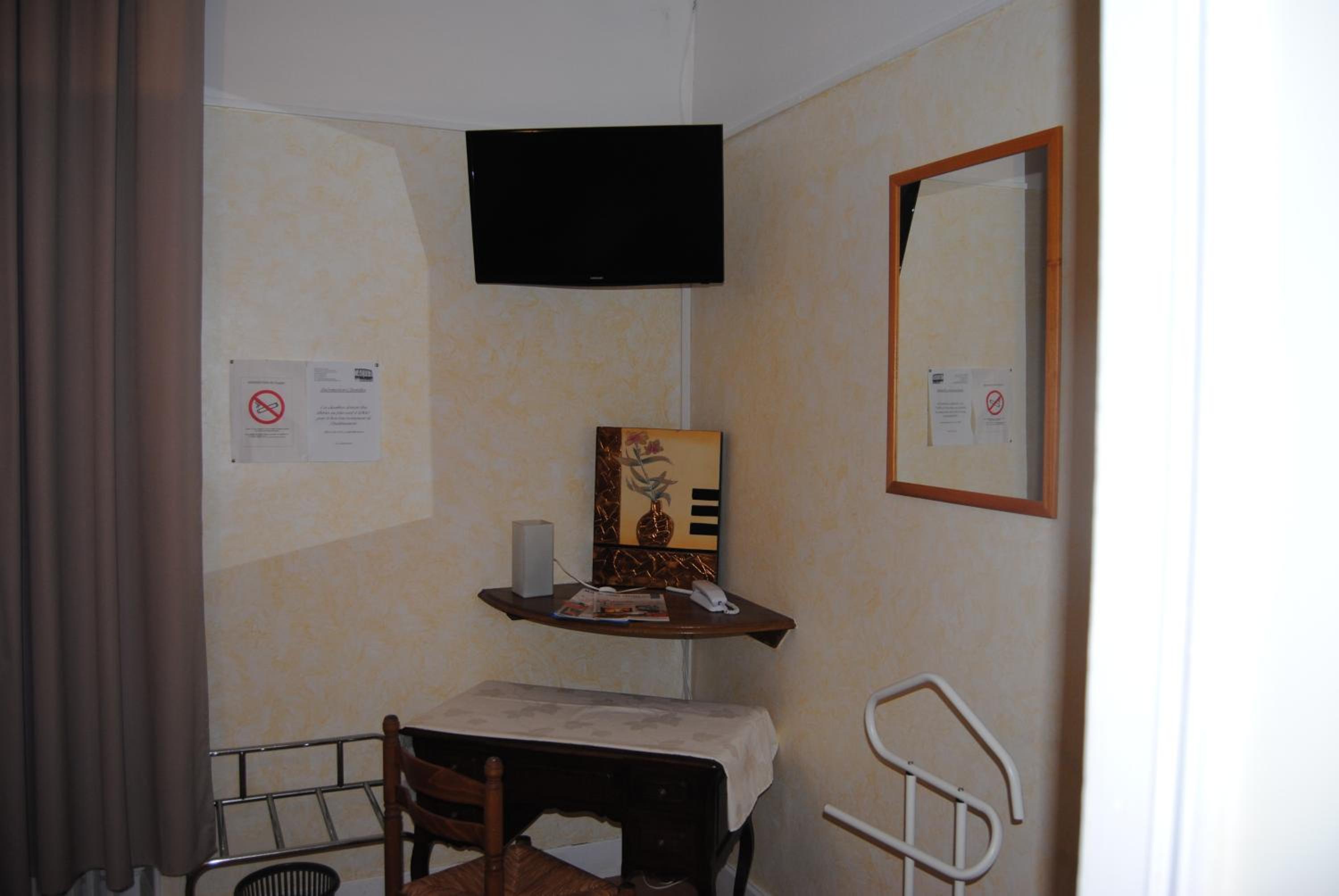 Pas de chauffage avant fin octobre , on nous déclare ...et ce jour , il faisait froid et très humide . Je voyage beaucoup et c'est vraiment une première !!!!! Jamais vu ca ;( et la TV , ben elle marche pas car il pleut ;( c'est un gag ? le lendemain , toujours pas de tv , il faisait beau pourtant lol Un hotel à l 'abandon , très vieillissant , insonorisation zero