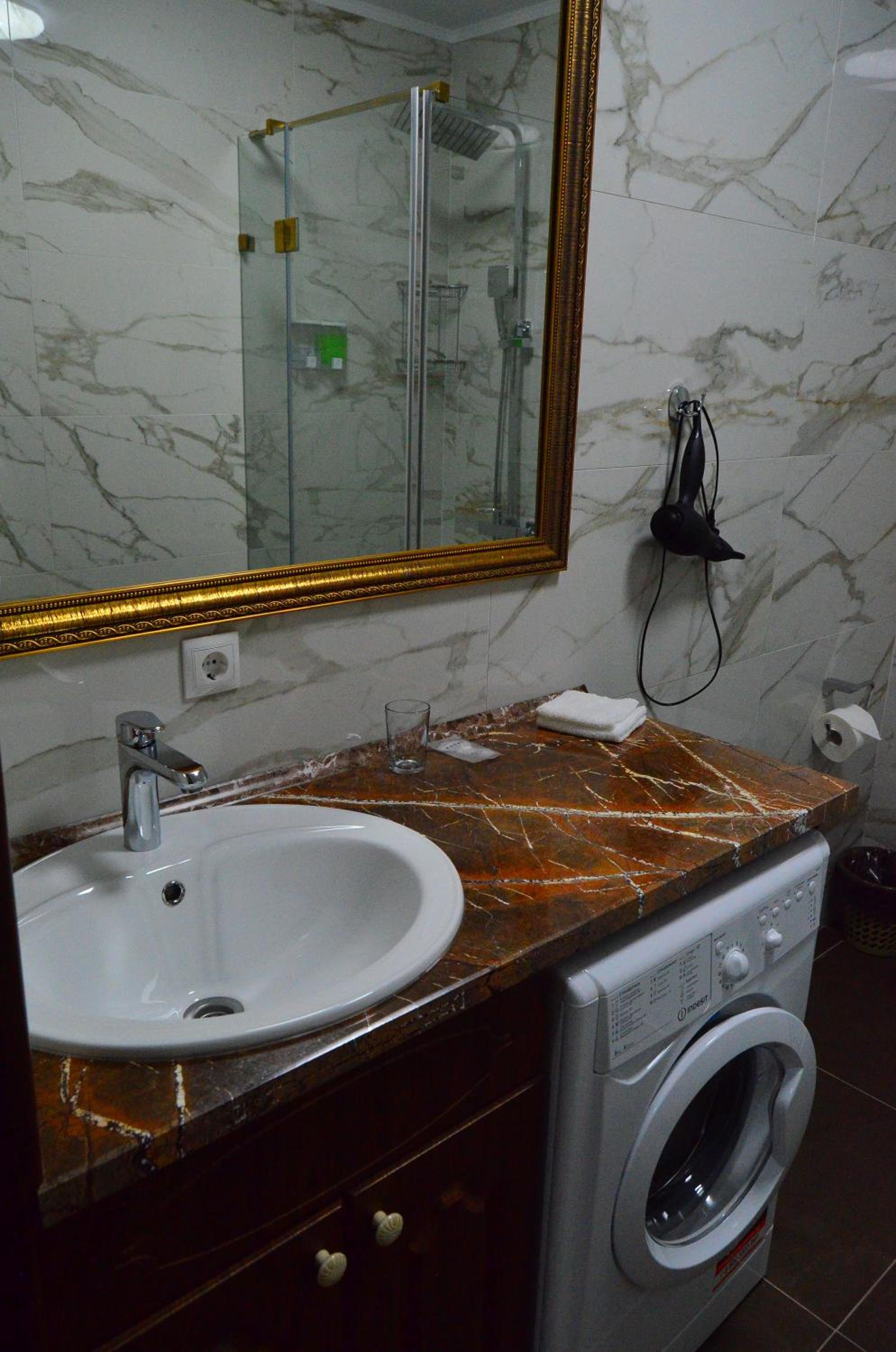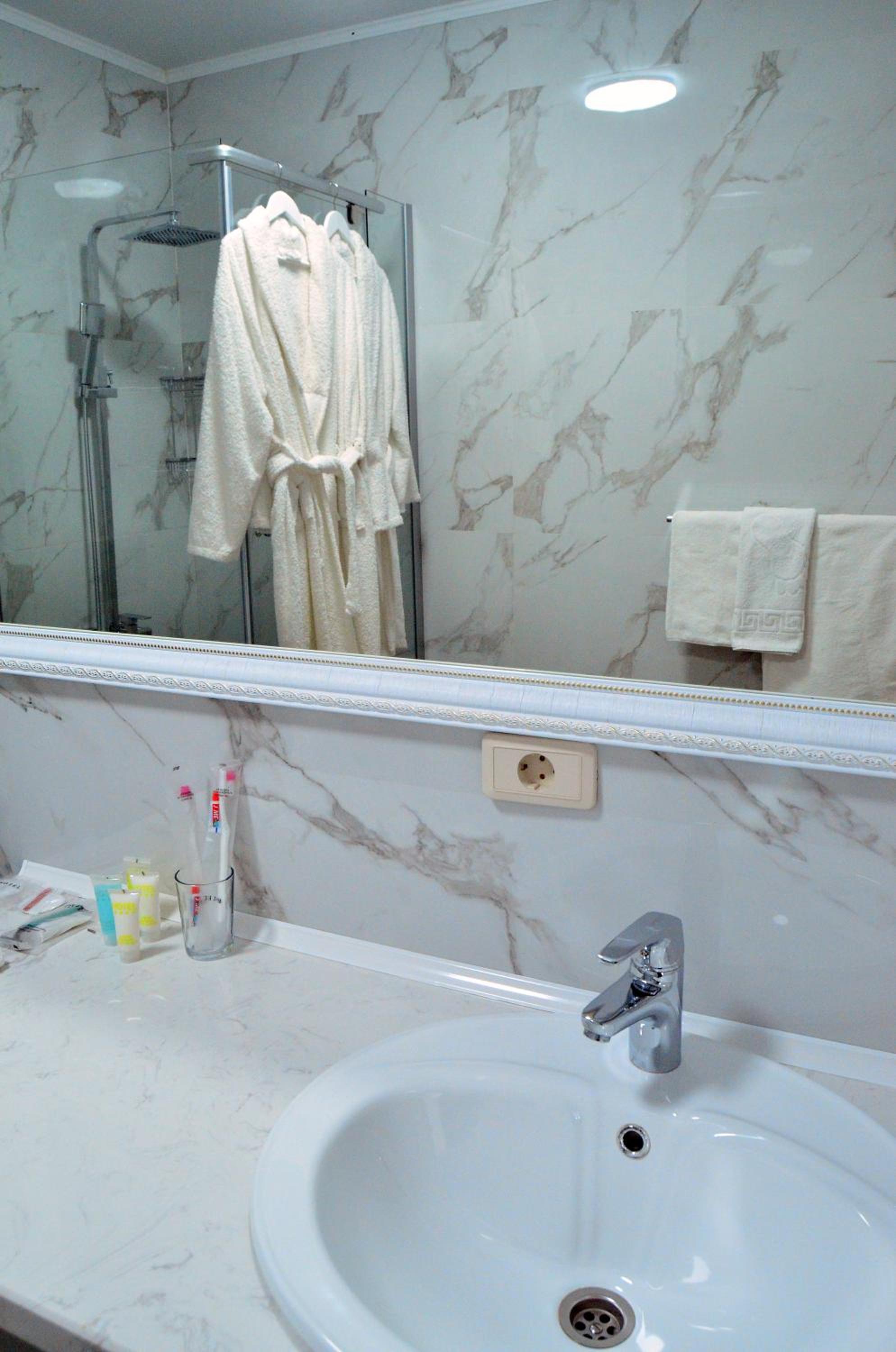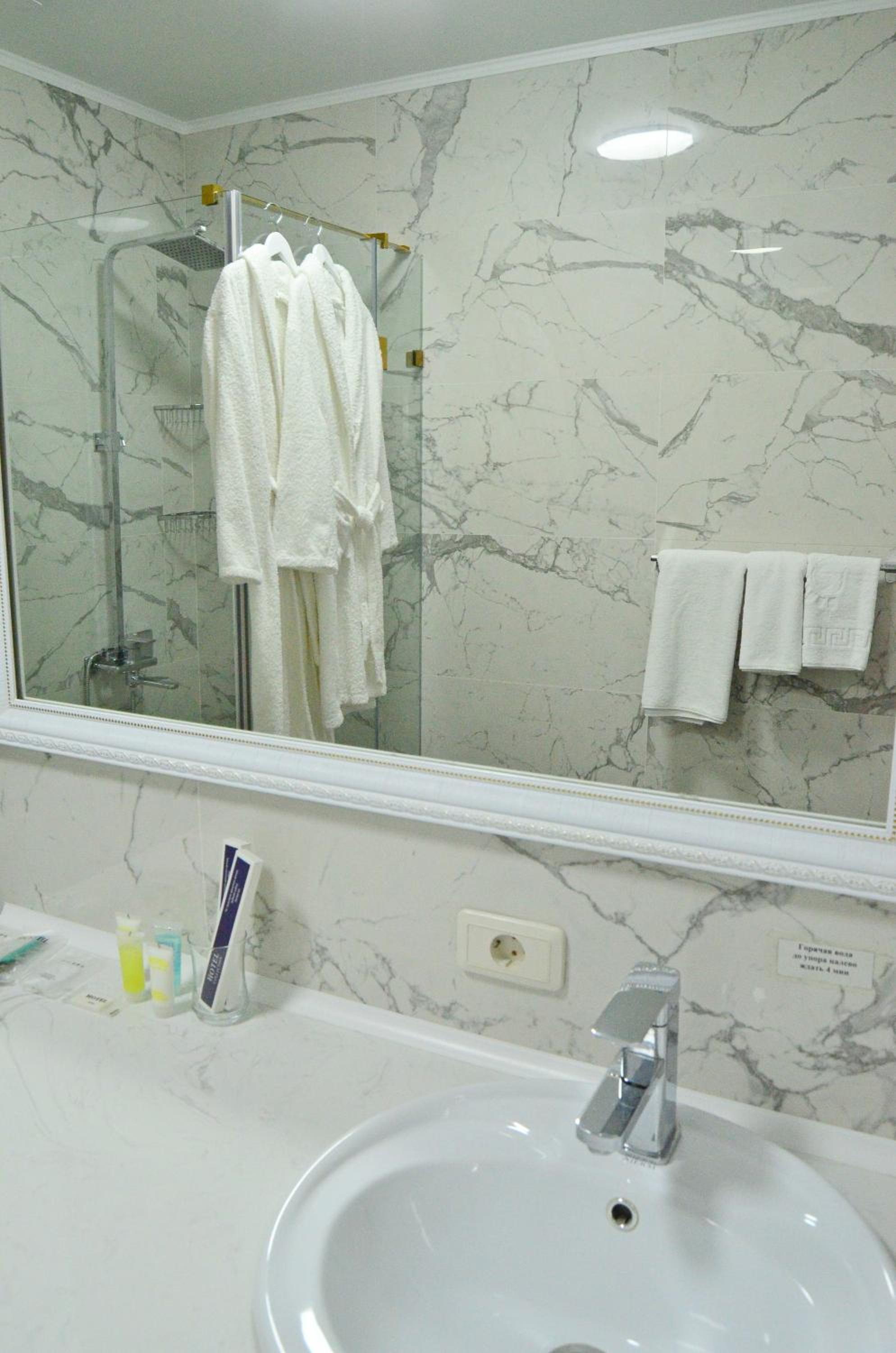 Не было тапочек и с душевой кабины текла лужа на пол, тк нет уплотнения под дверцей