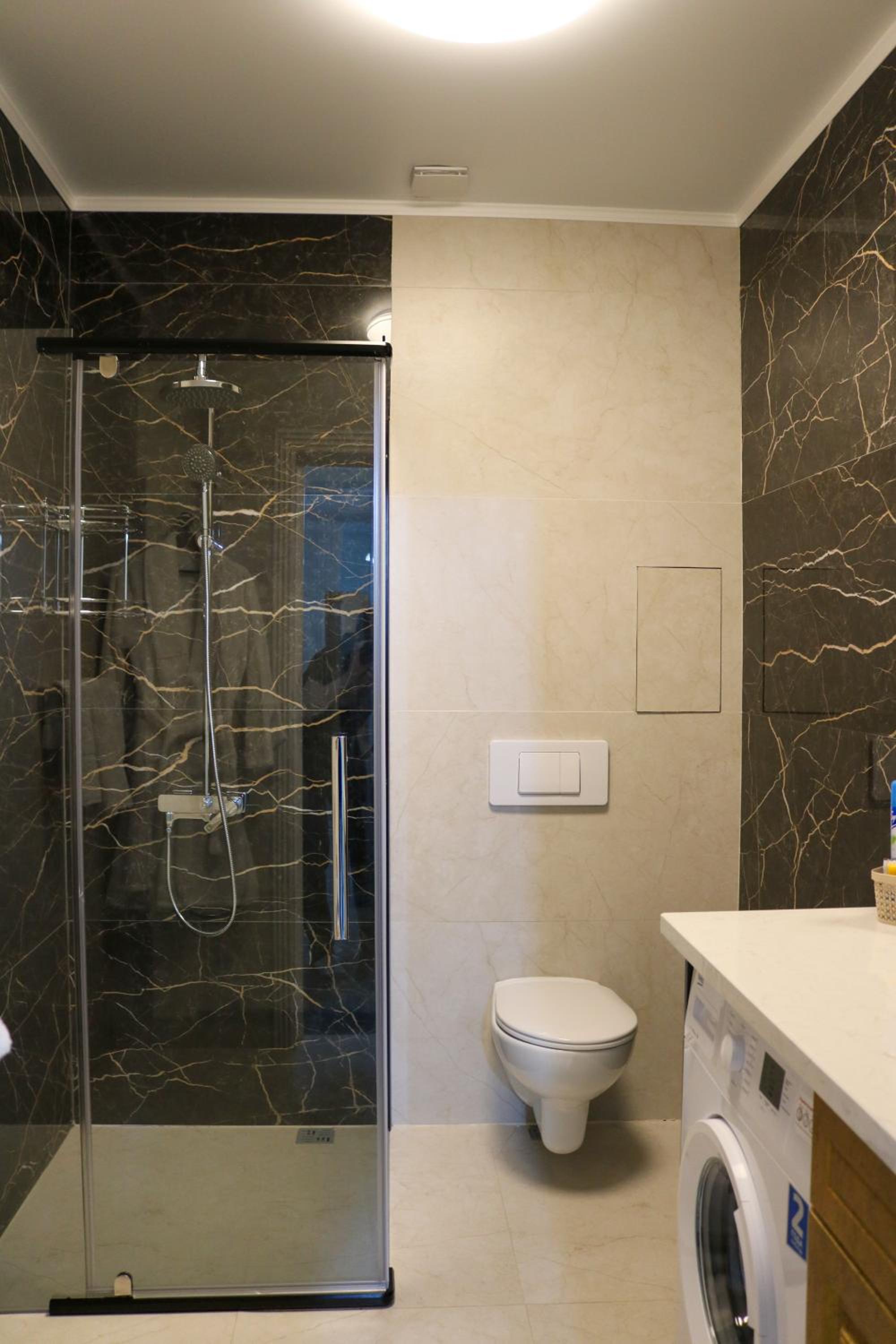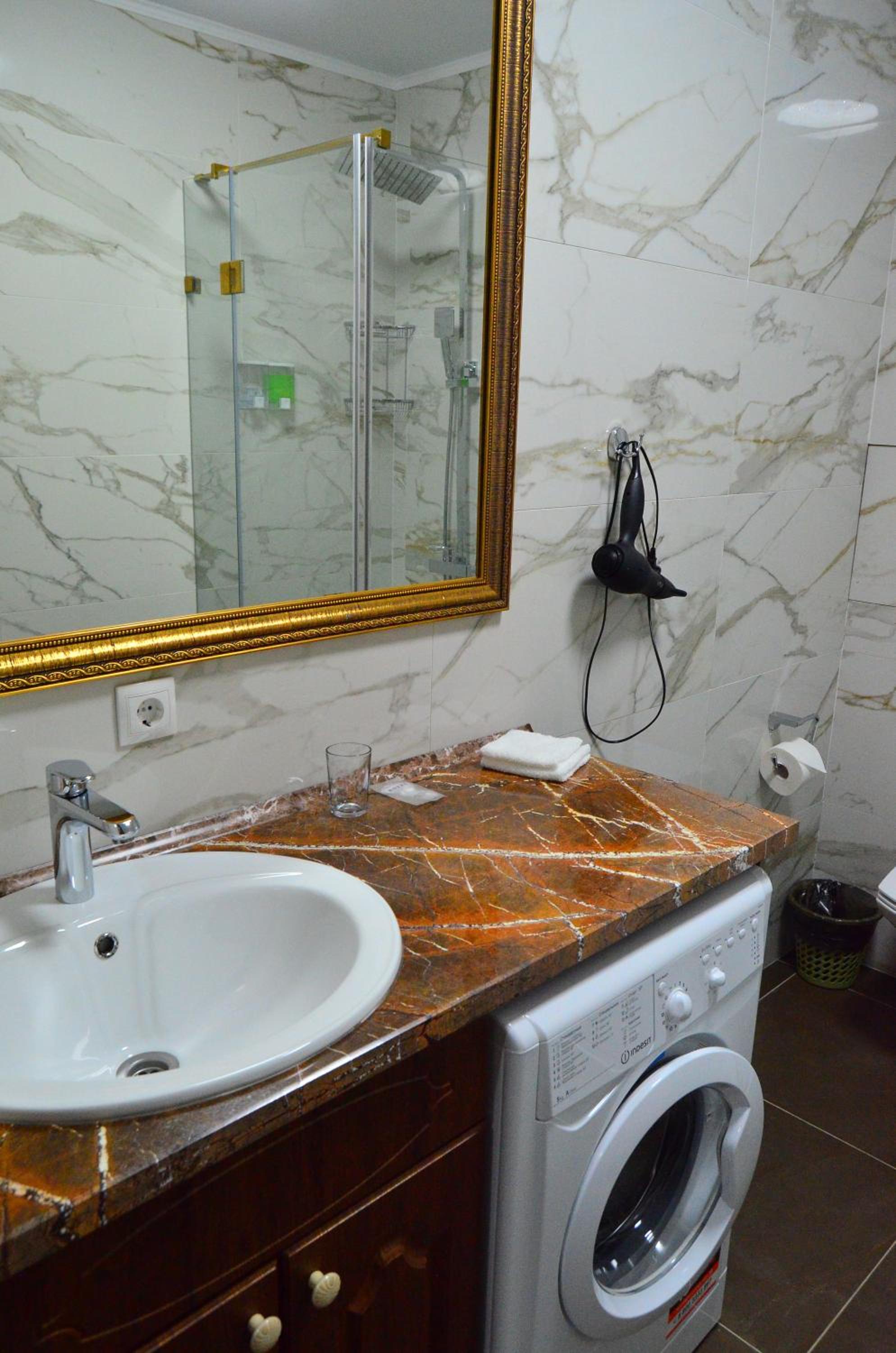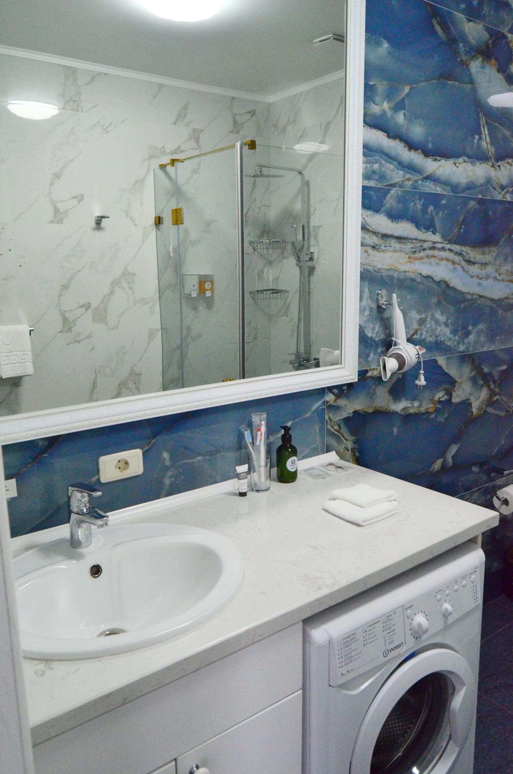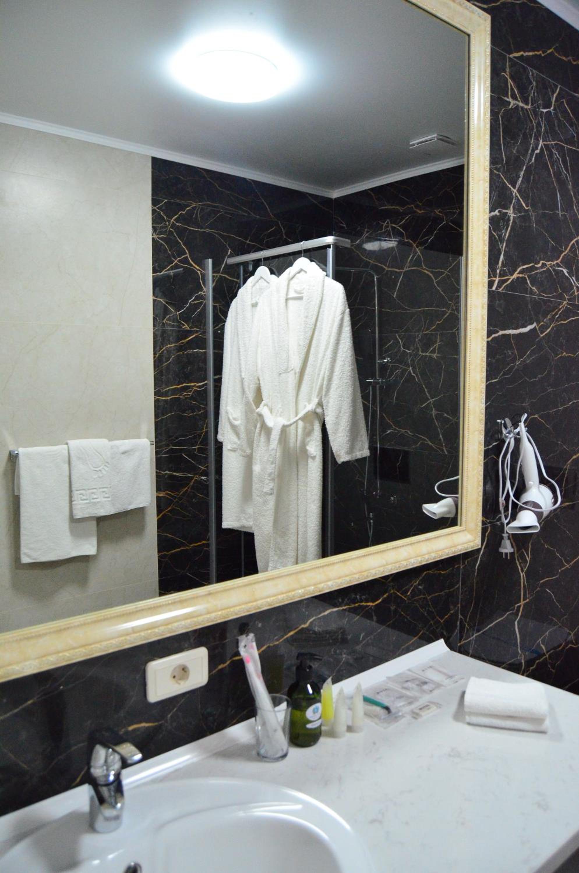 Не было тапочек и с душевой кабины текла лужа на пол, тк нет уплотнения под дверцей