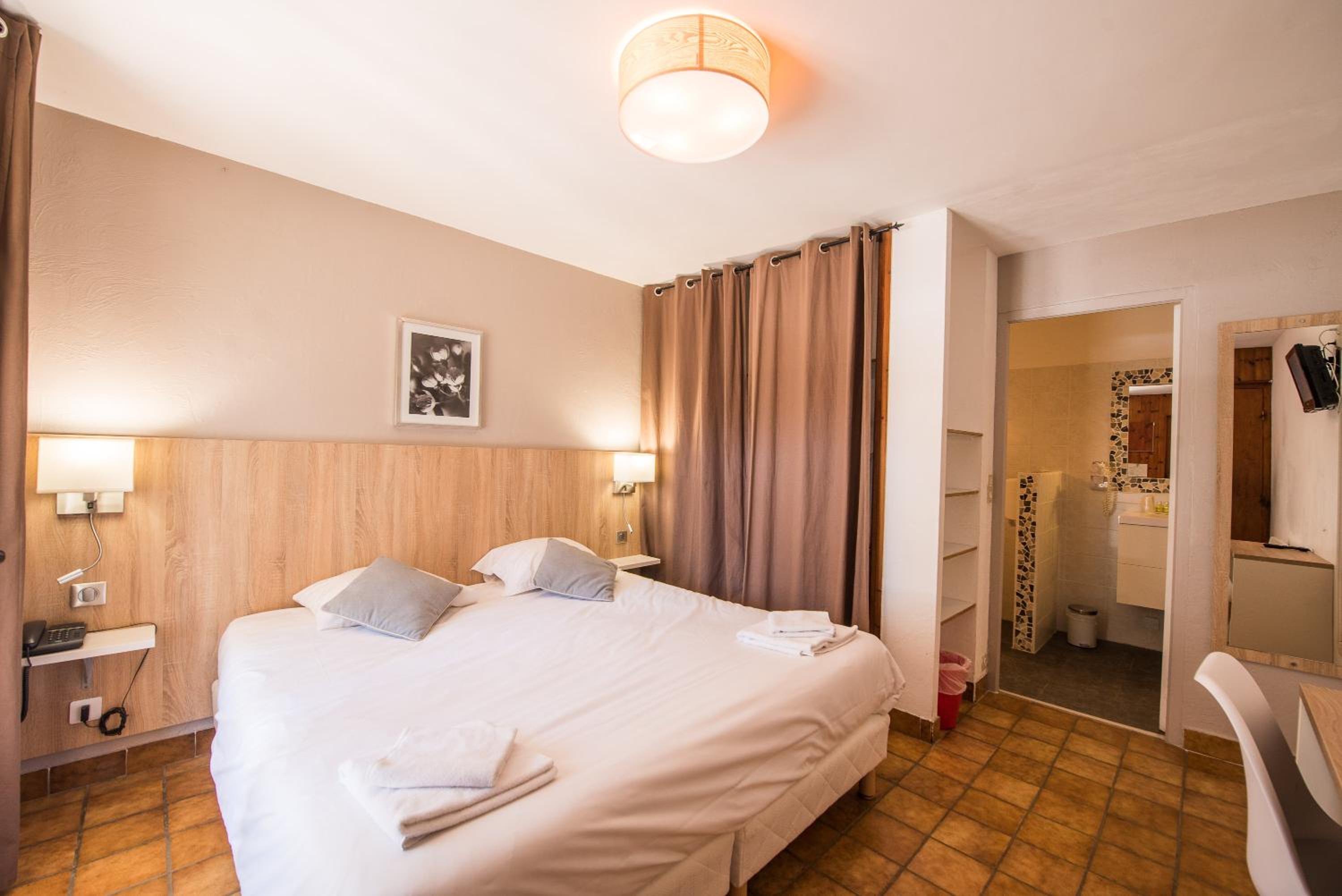 La décoration des chambres est fade et les travaux du rafistolage Il manque de prise, les tables de nuit (tablettes) ne tiennent pas , le sèche serviette guerre plus quand on prend la douche il y en a autant dedans que dehors la baignoire le lustre est tenu par les fils électriques avec le sucre apparent.