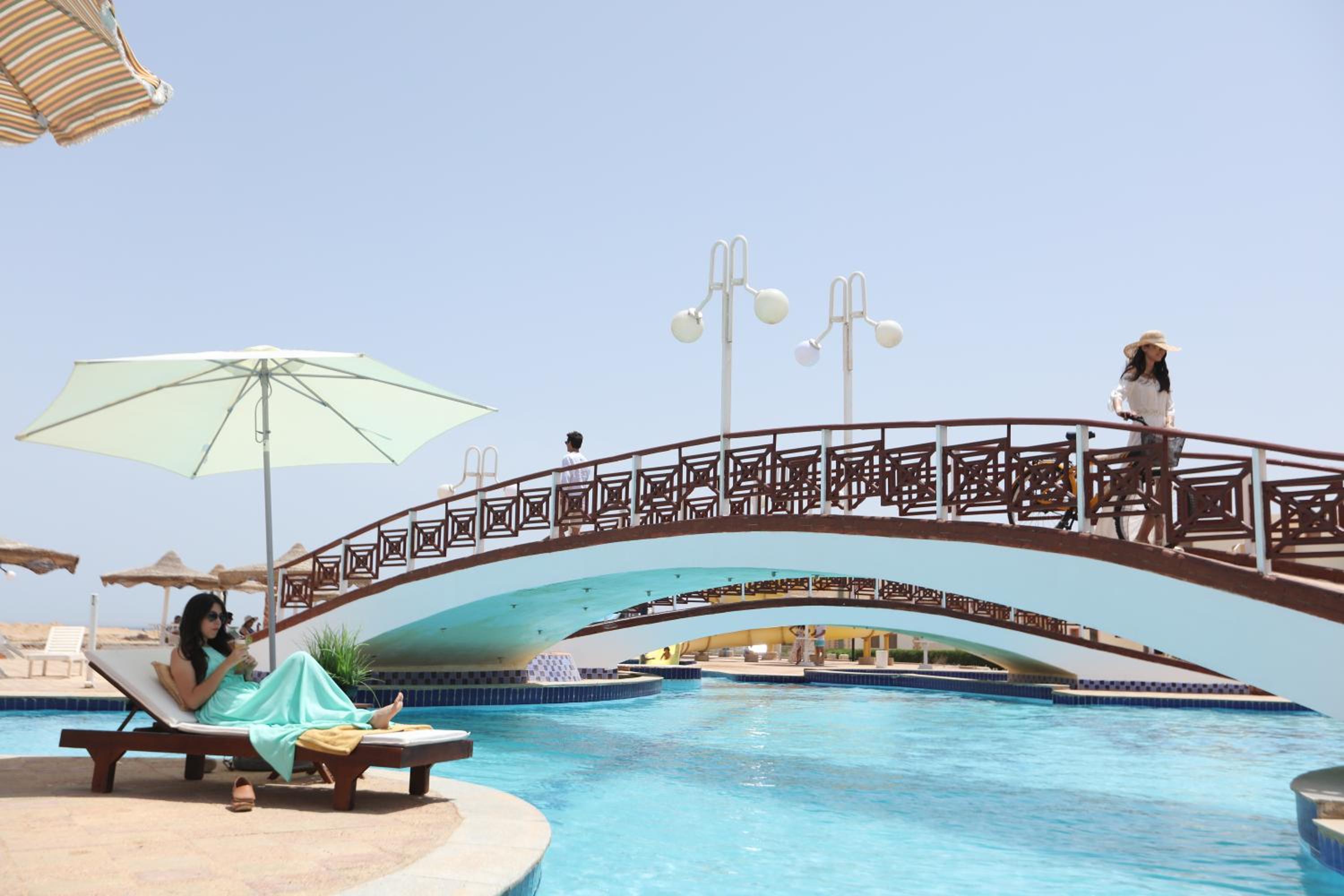 The hotel rooms are somehow far from the beachfront, about 350m to reach the beach, no chaise lounges on the beach or even swimming pool areas, all what is available is the annoying blue plastic chairs, no beach activities like jet ski, banana boats, etc.. this should be added, I believe some better introduction by the hotel receptionist is required for the accessible areas in the resort and the activities available, or a quick reference handbook to be available in rooms to help guests