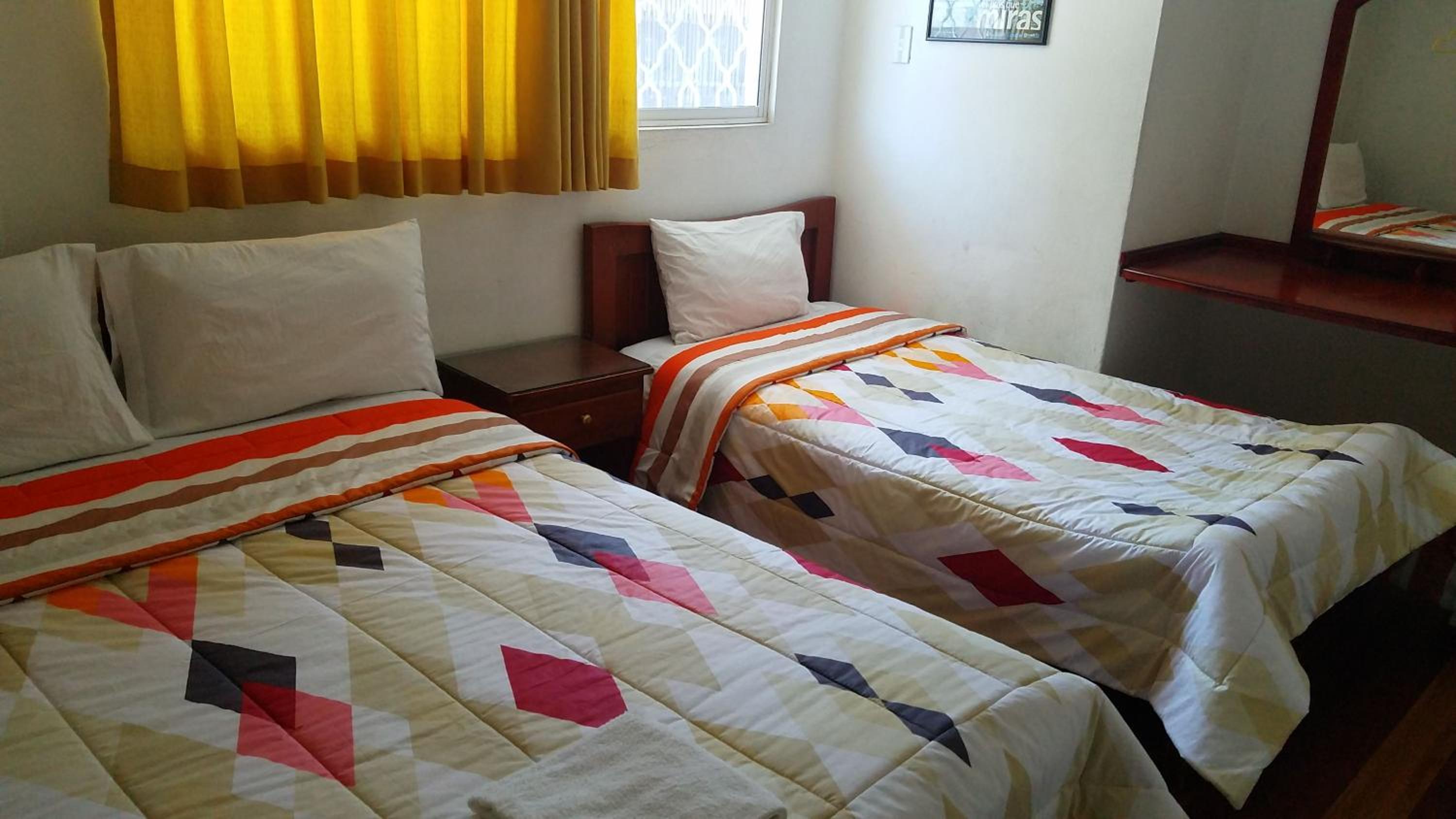 The hotel was 5 minutes from the bus station, 2 blocks from breakfast and almuerzo restaurants, 2 blocks from bank ATM'S and 2 blocks from the main street into the historical area. We found the full sized bed to be comfortable and the shower had good pressure . They had water, beer and snacks available to buy.