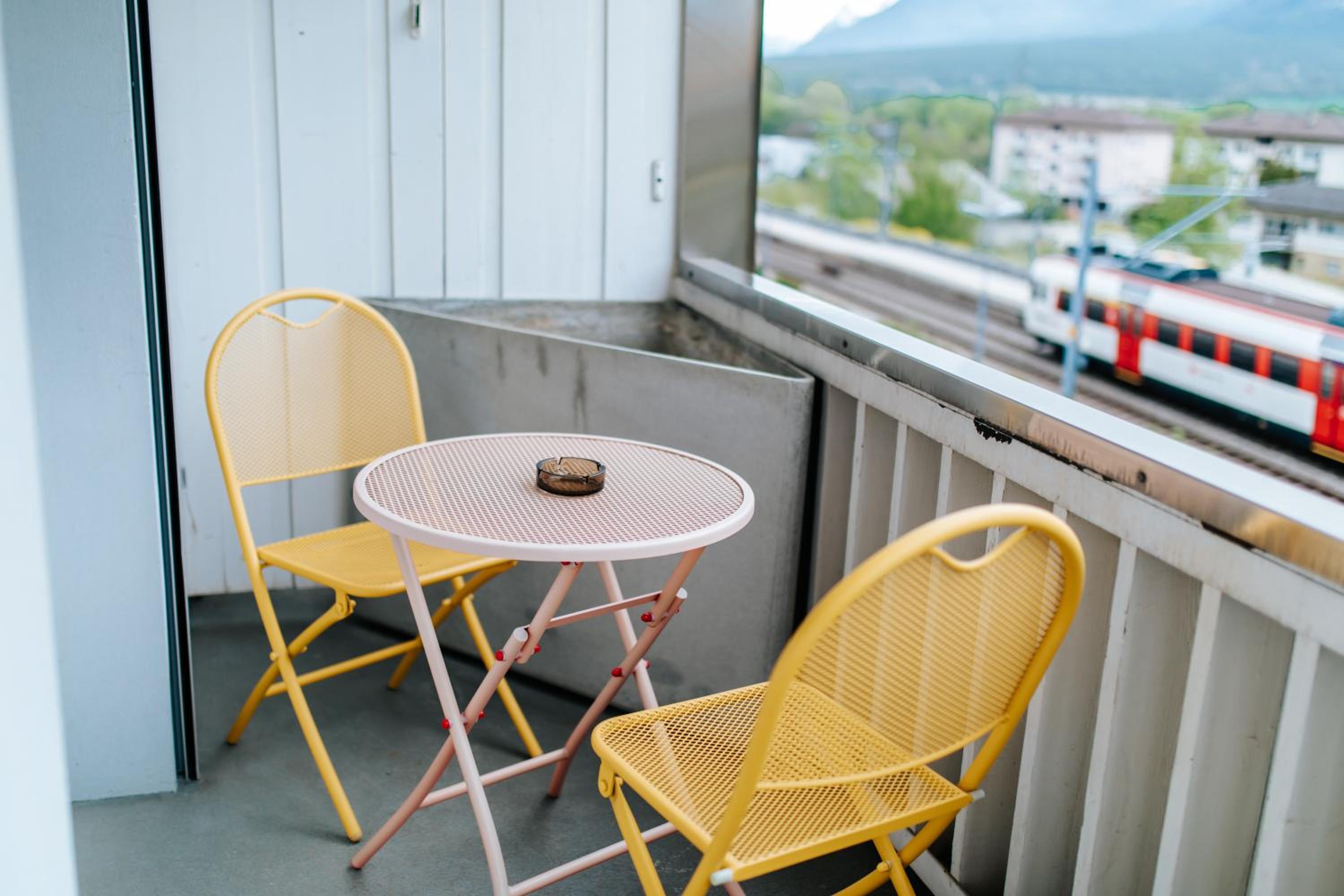 It is very close to the train station but the main road from Brig to Sion is tunneled, so overall fairly quite. On the other side of the railway there are wonderful trails along the Rhône. Close to the village (but with only a very basic supermarket).