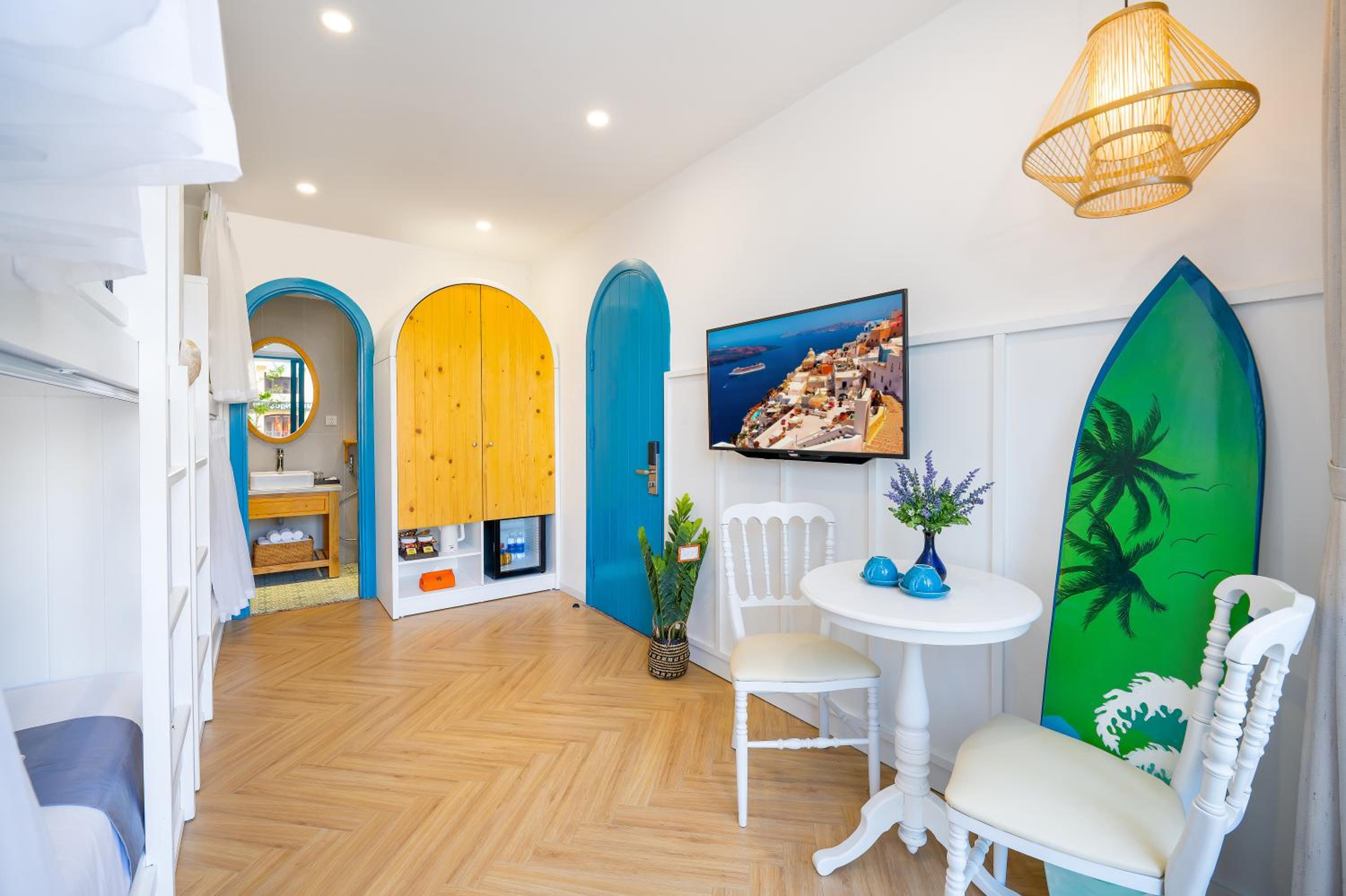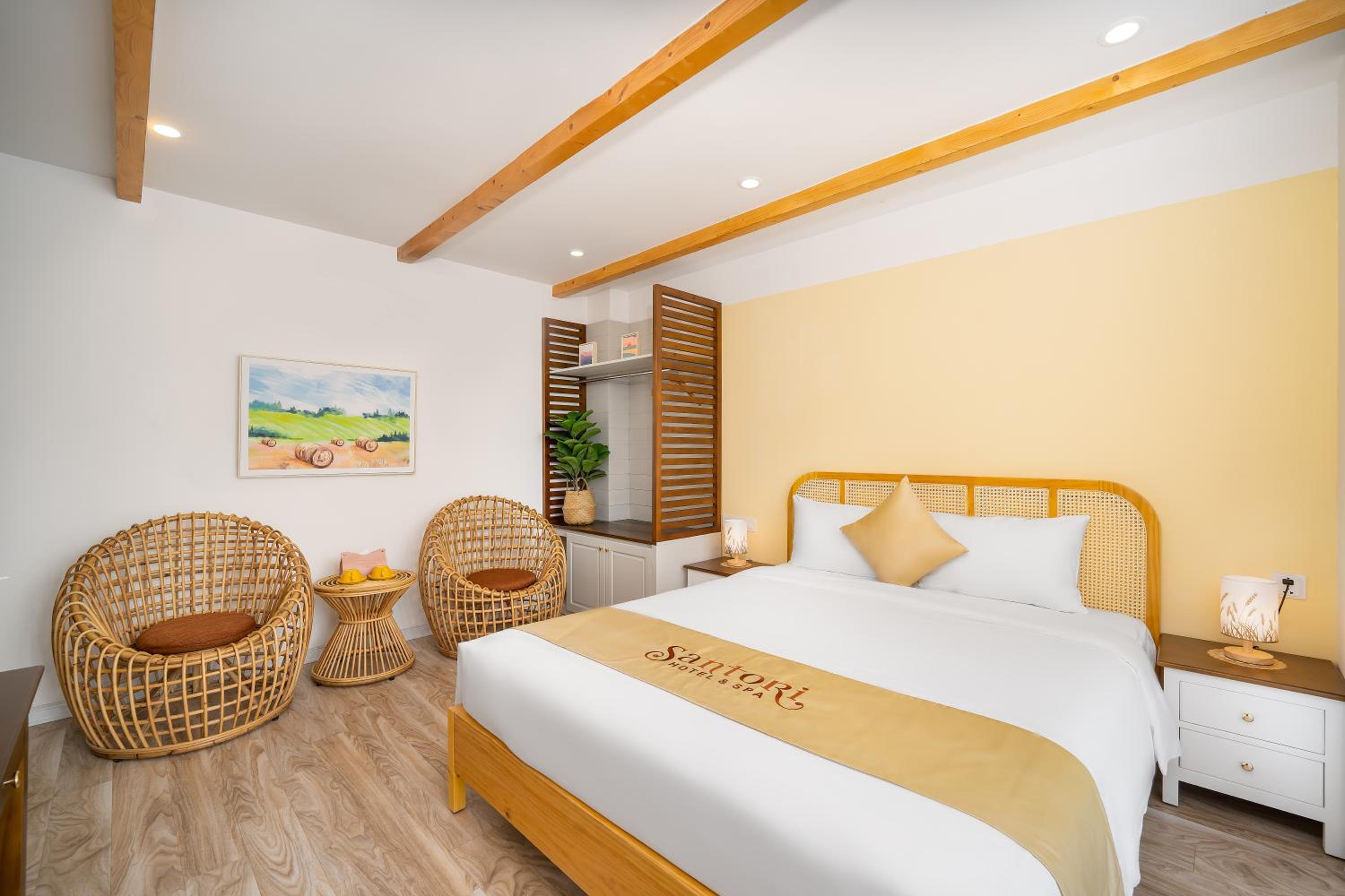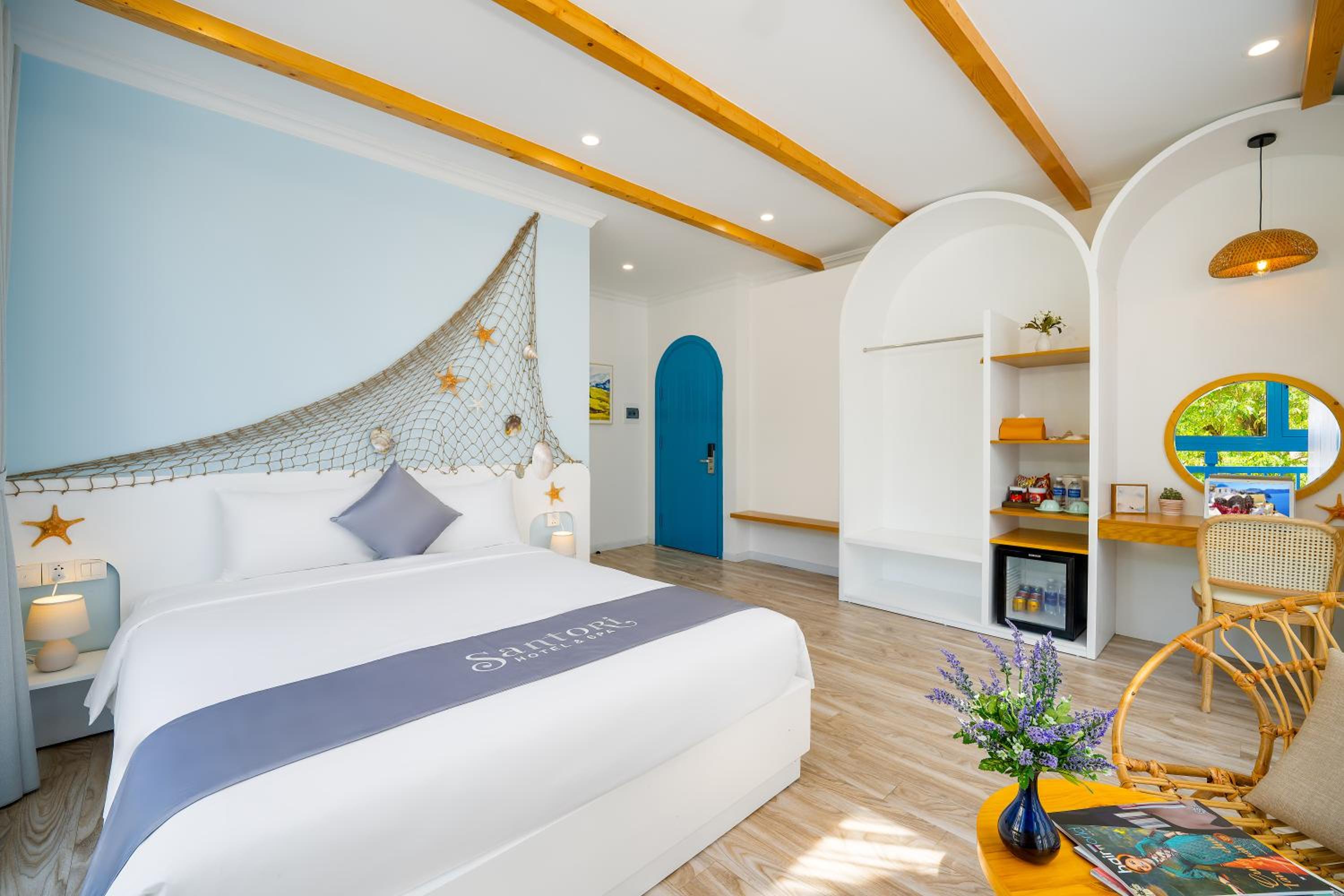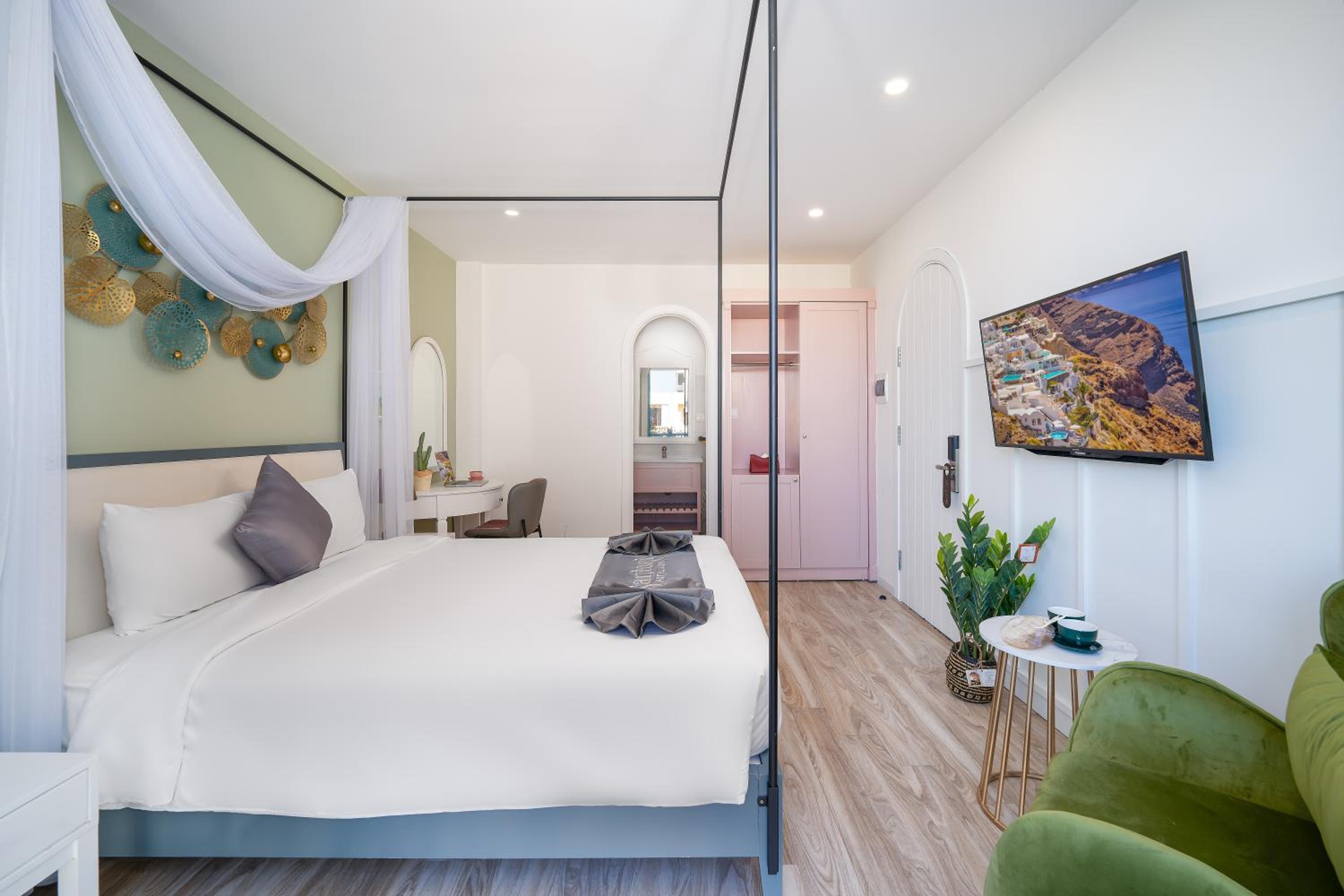 Experience comfort and style at Santori Hotel And Spa, located just 2.1 km from the beautiful My Khe Beach. Indulge in our well-equipped rooms featuring modern amenities like air conditioning, flat-screen TVs, and free WiFi. Some rooms even offer stunning city views from a private balcony.