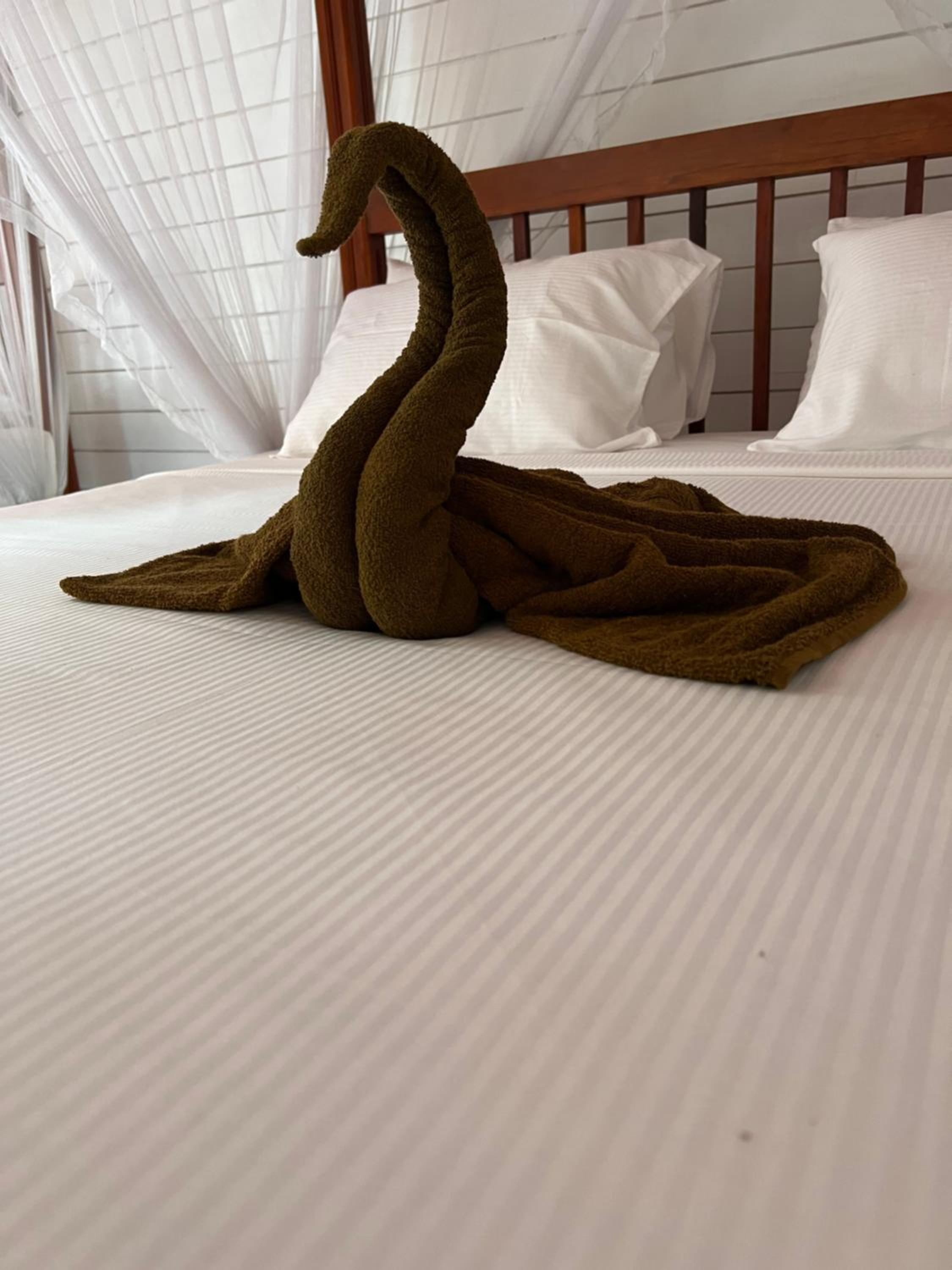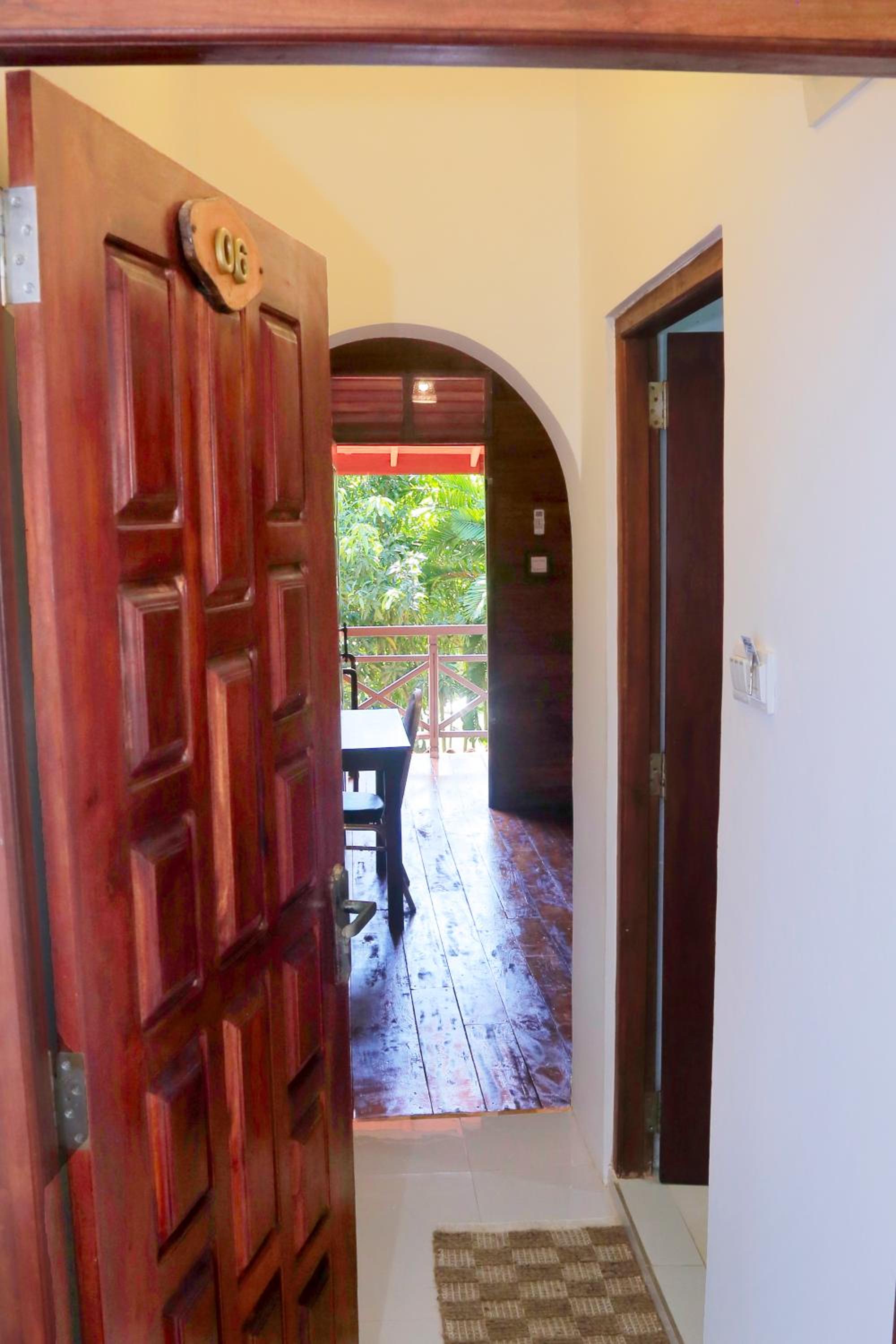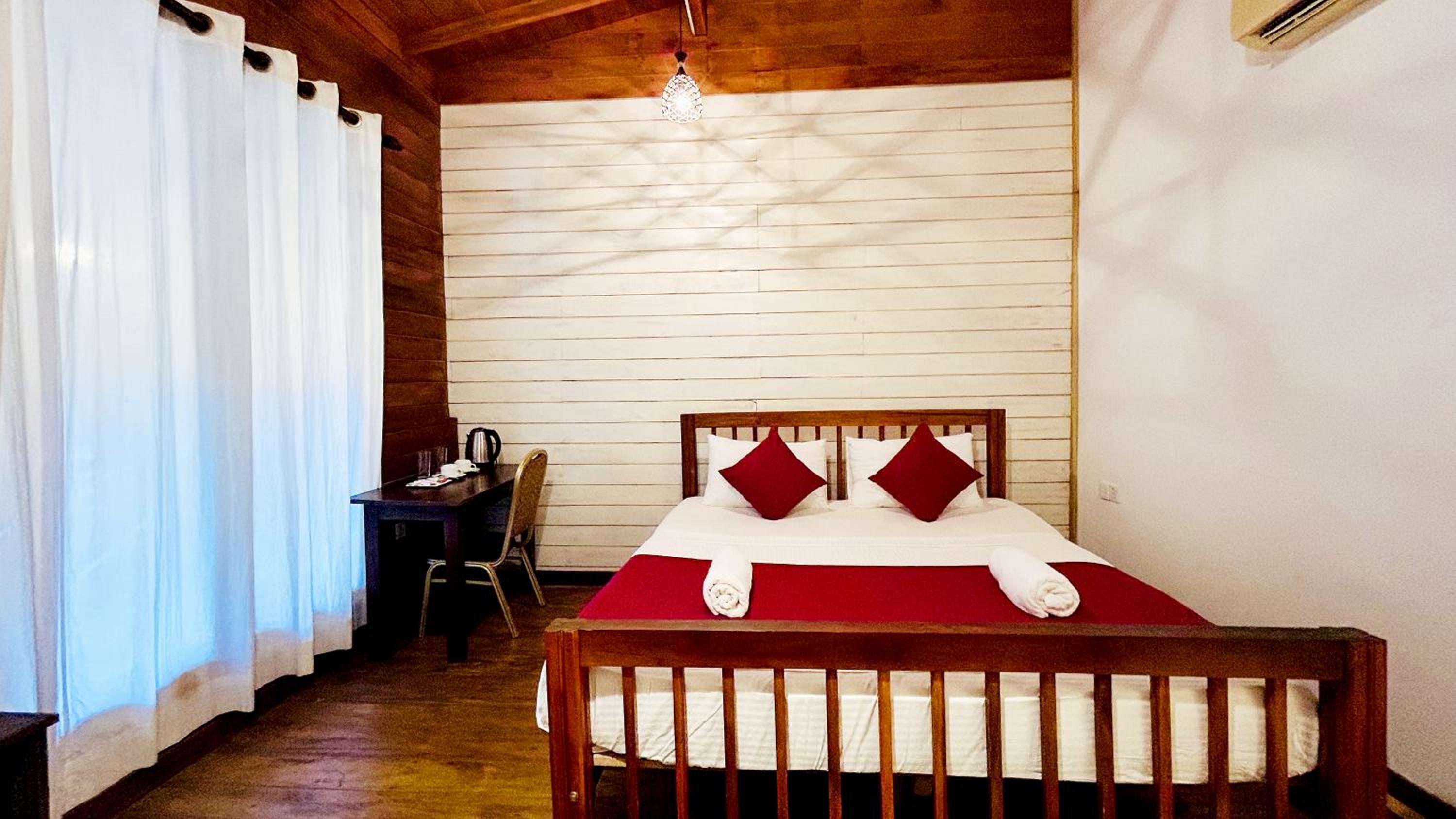 Room was of good size and the lodge is in a convenient location, set back away from the main road but close to the beach (a few hundred meters away). Breakfast was plentiful and served in the adjacent hotel restaurant. Staff were friendly and helpful. We had an upper room with a balcony where we watched monkeys in the trees in the accommodation grounds.