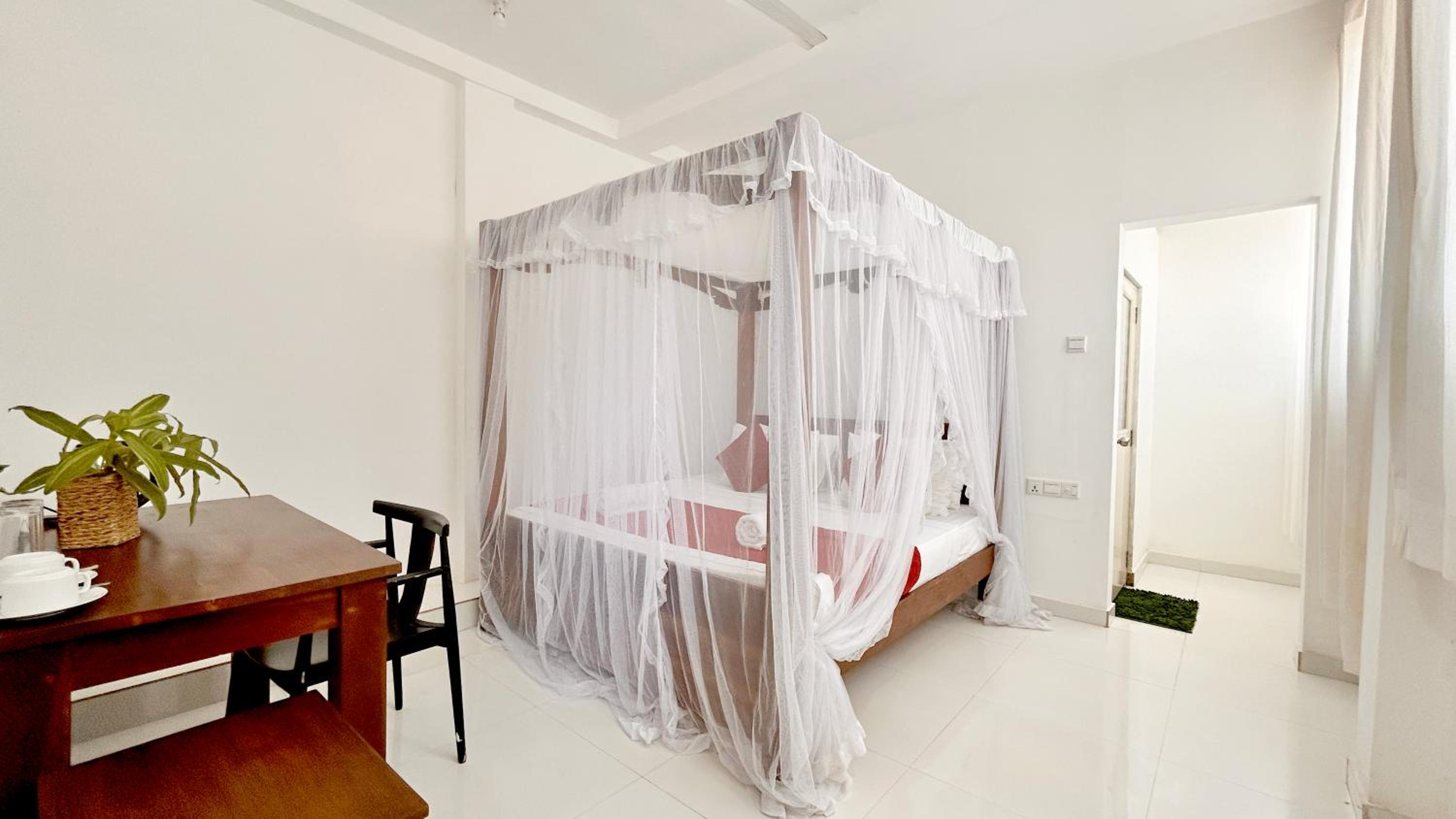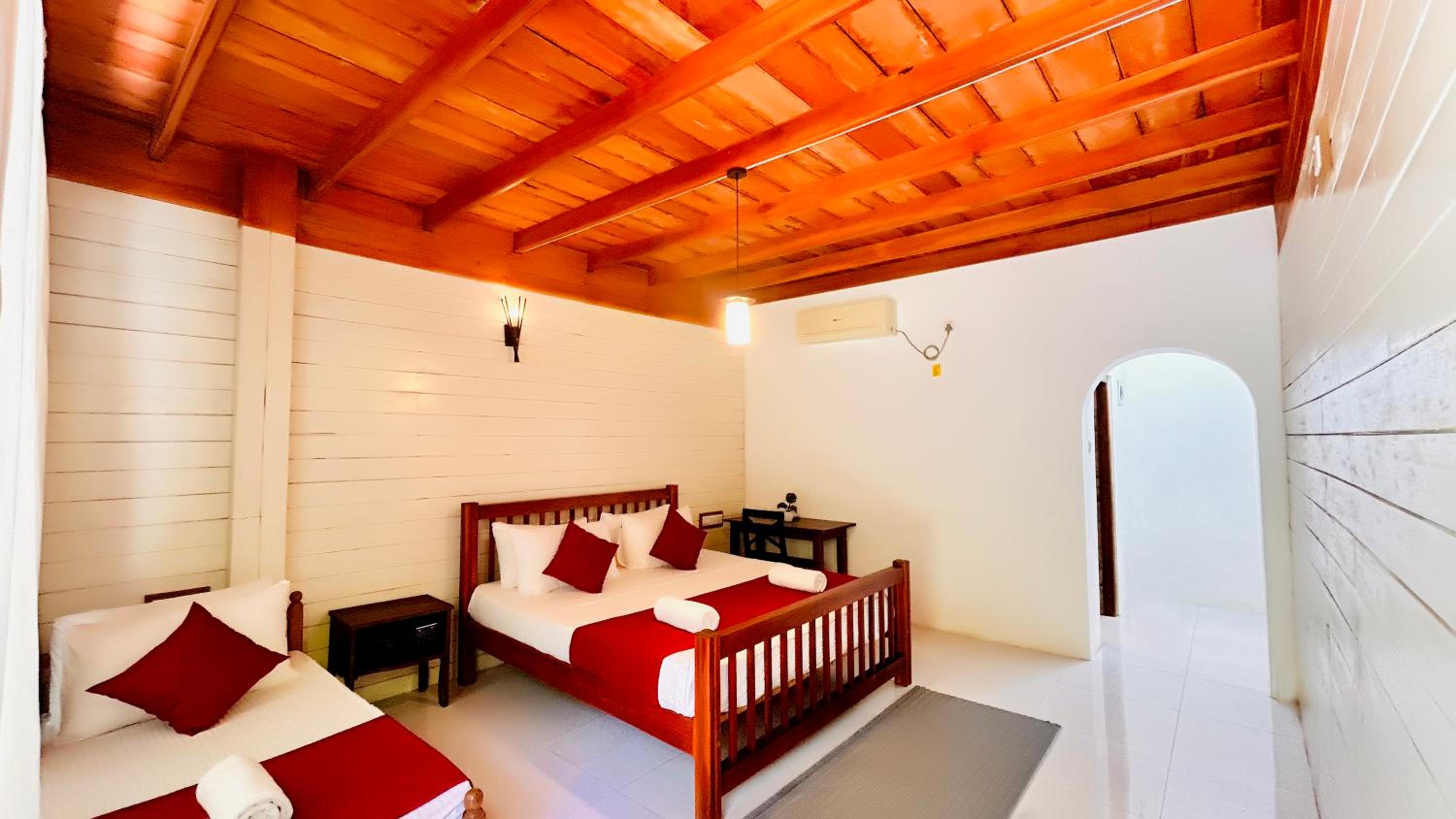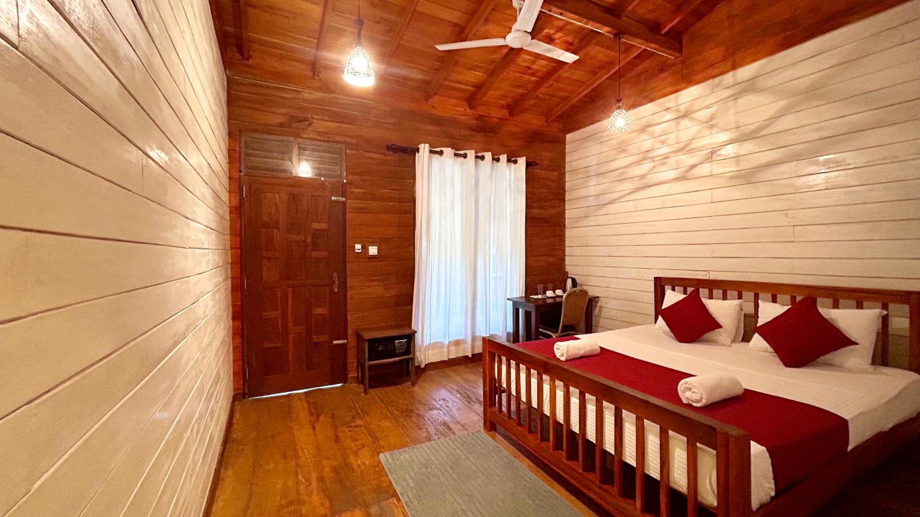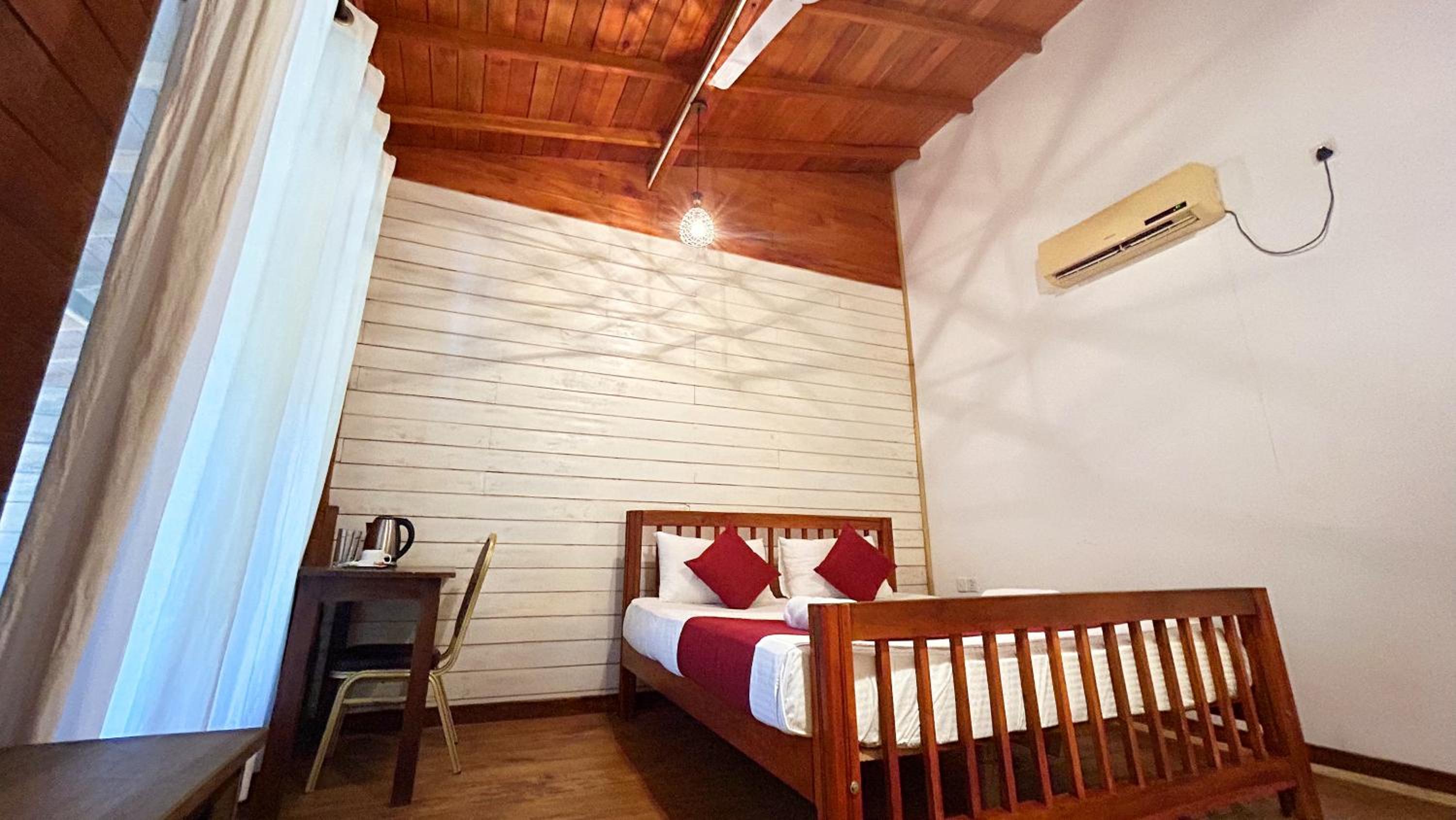 Not super clean, like been brushed a bit but still holes in the mozzie net and dust under the bed. Bathroom was the horror show with a cockroach crawling out the sinkhole, but cockroaches are common in LK. Nothing wood a part the bed.