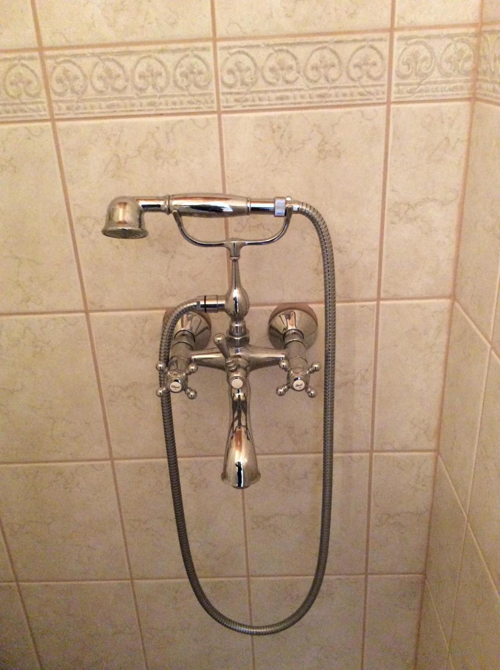 The shower is small and uncomfortable