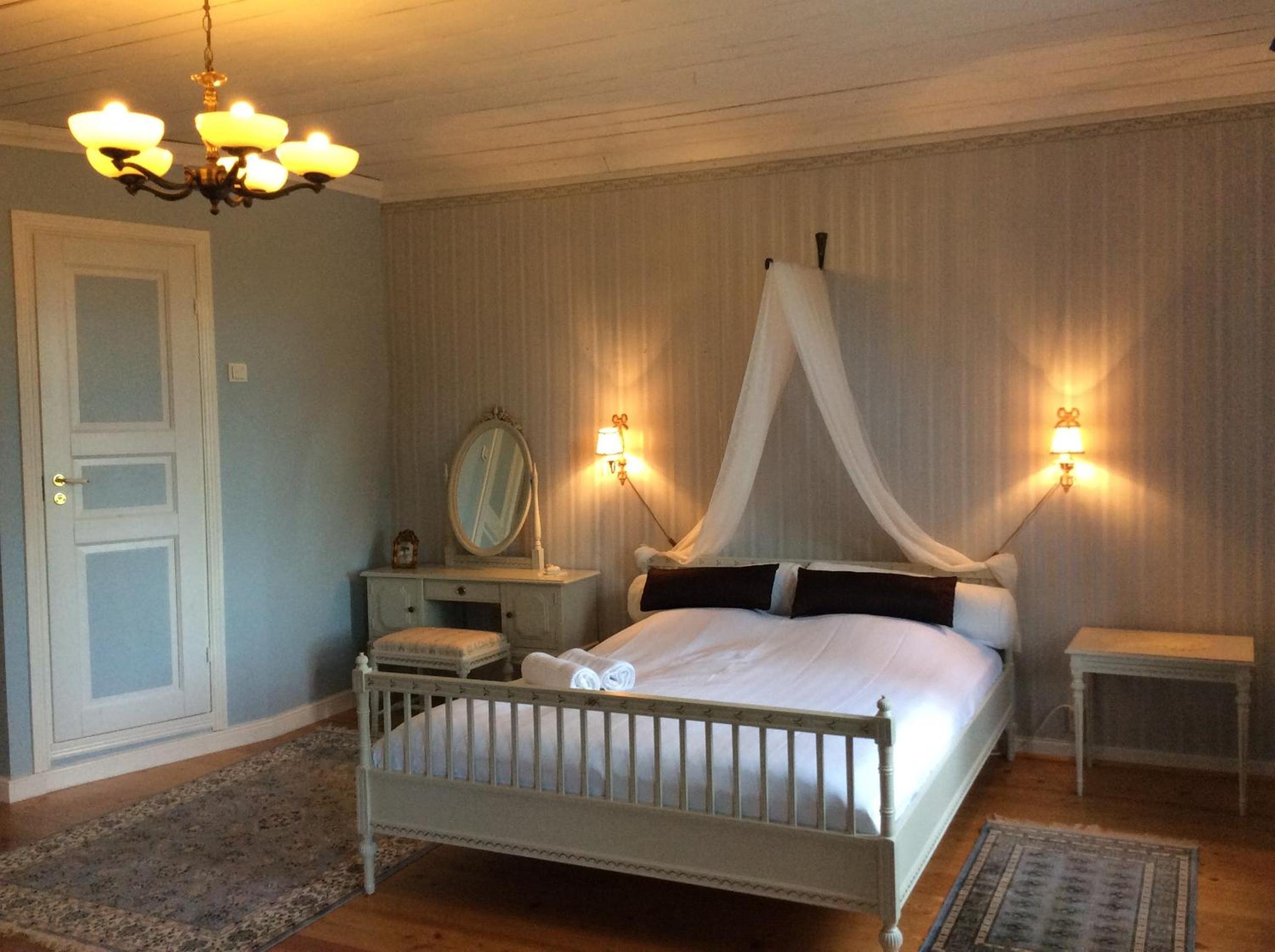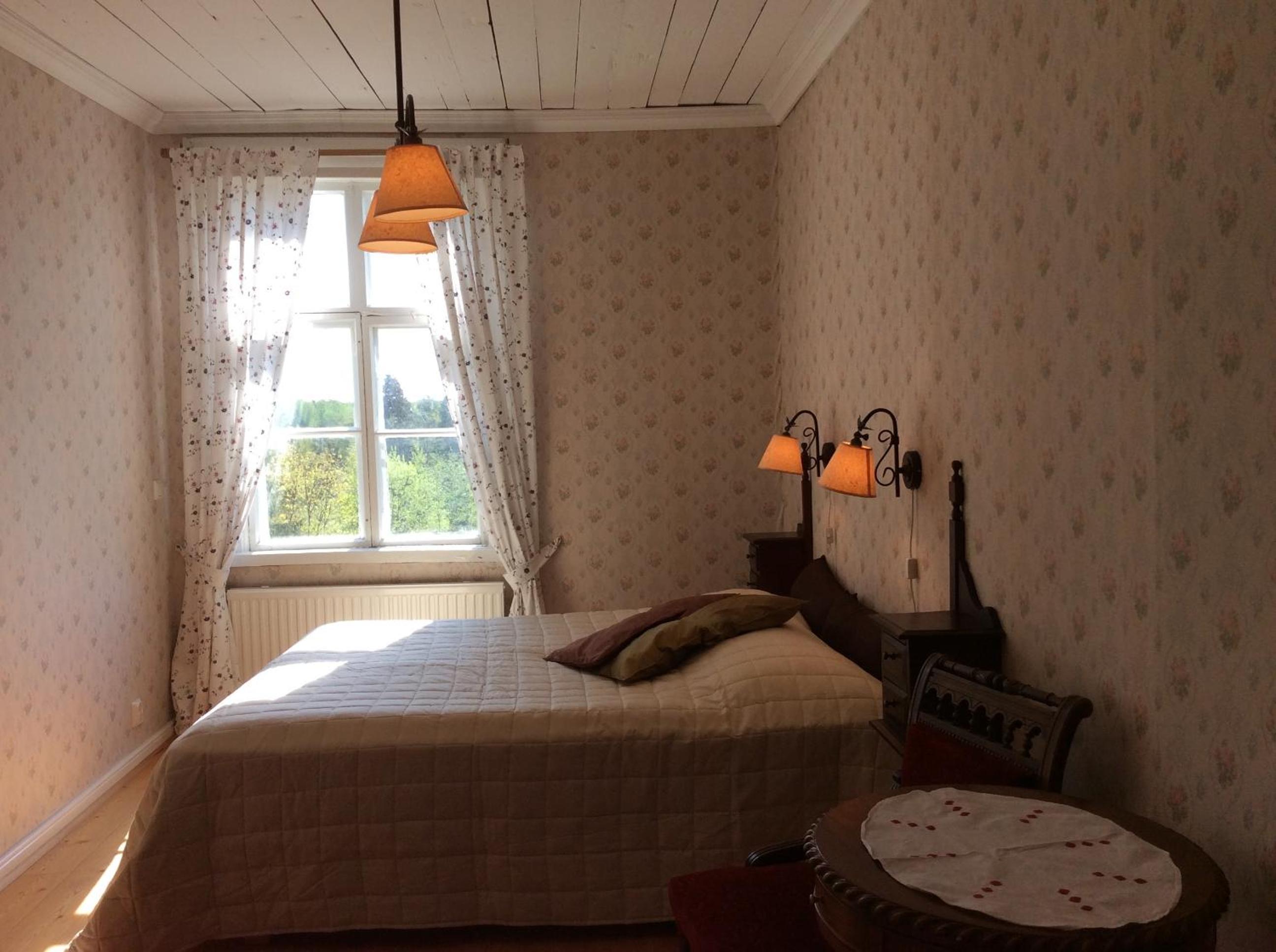 The manor was historic and beautiful, located on a hill with lovely views of the grounds all the way to the lake. There are 5 rooms upstairs, with one having a private bathroom. The rest sharing facilities was not problematic during our stay at all. The sauna with sitting room and showers was great, and the manor offered quality products (shampoo, conditioner, shower gel and hand wash) to use.