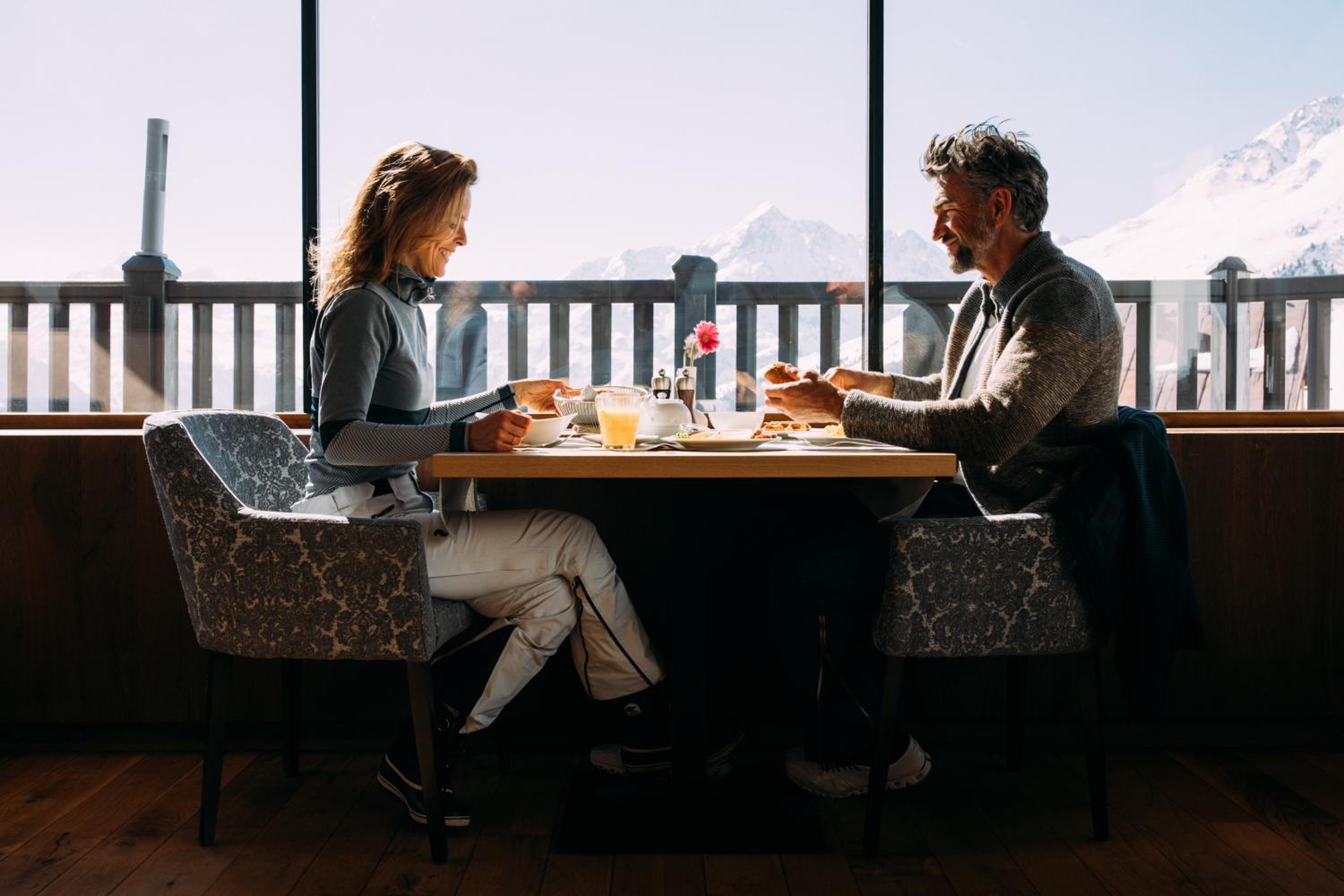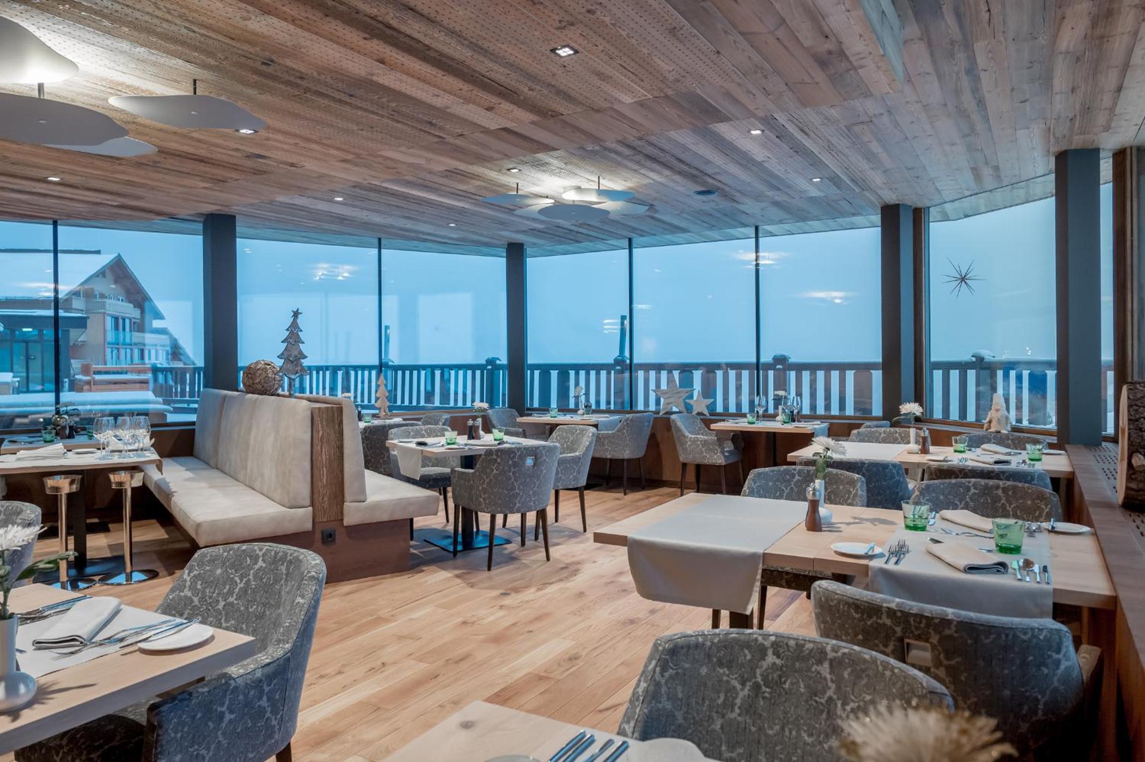 Experience exquisite dining with half board including breakfast, afternoon snack, and dinner. The hotel's restaurant boasts a sun terrace and a dining room with breathtaking panoramic mountain views, creating a delightful dining experience.