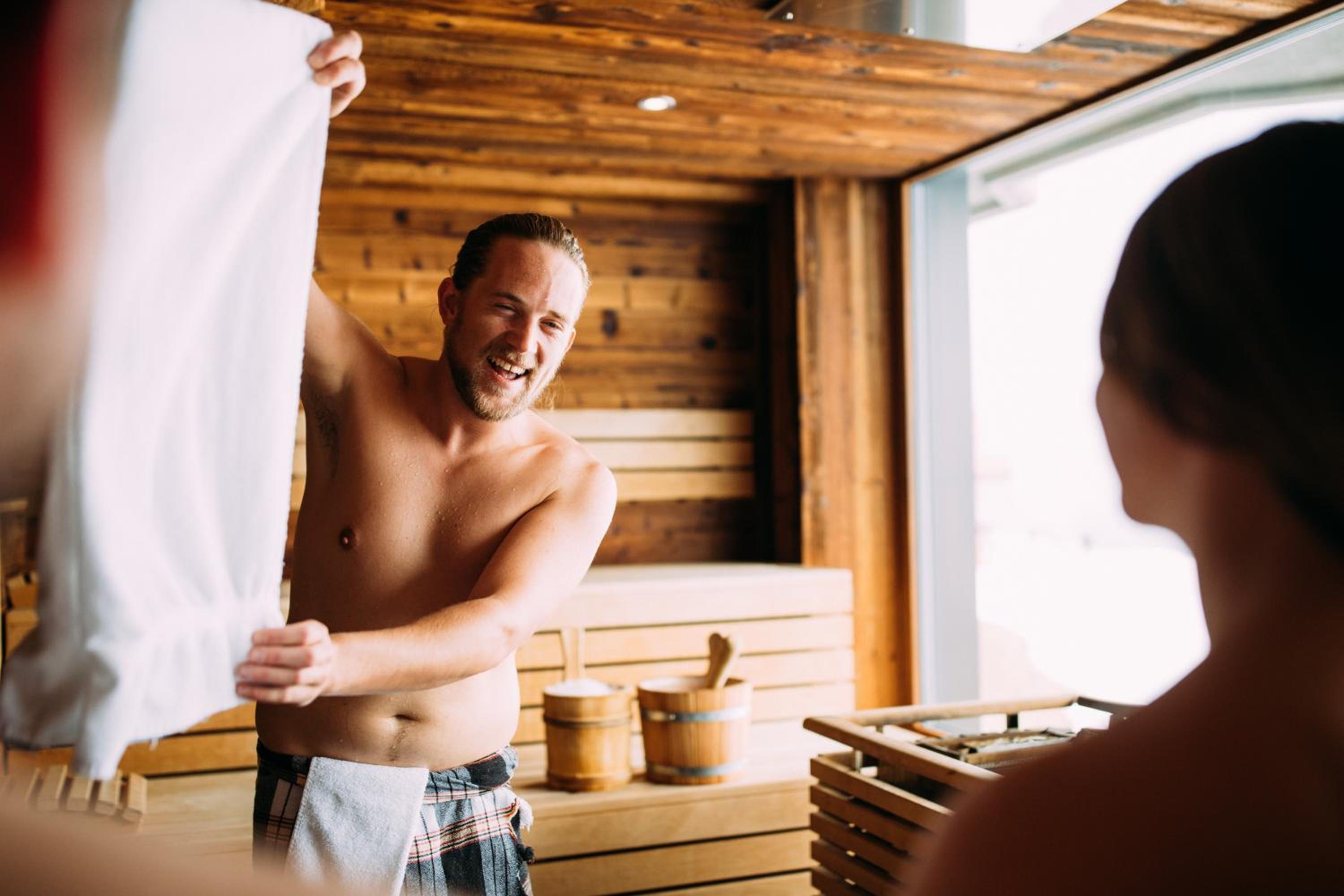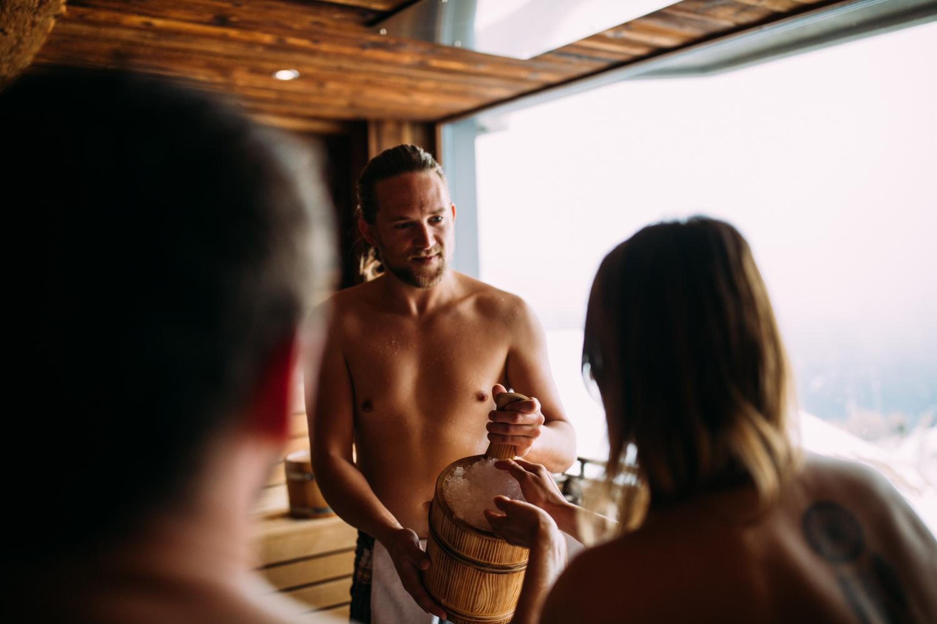 Please note that wellness area is divided into a naked-only area and an area where clothing is permitted. The infinity pool is located in the naked area.