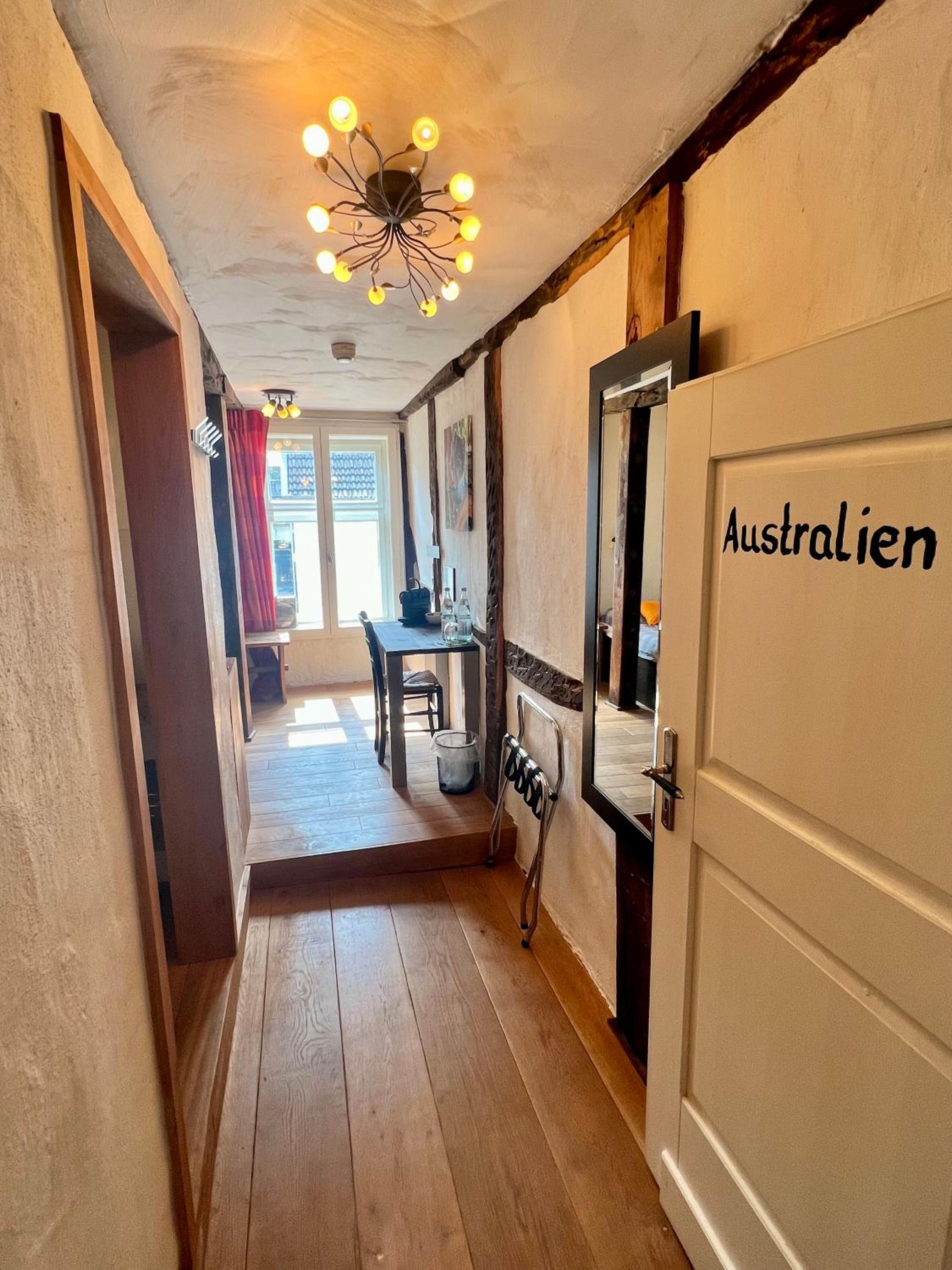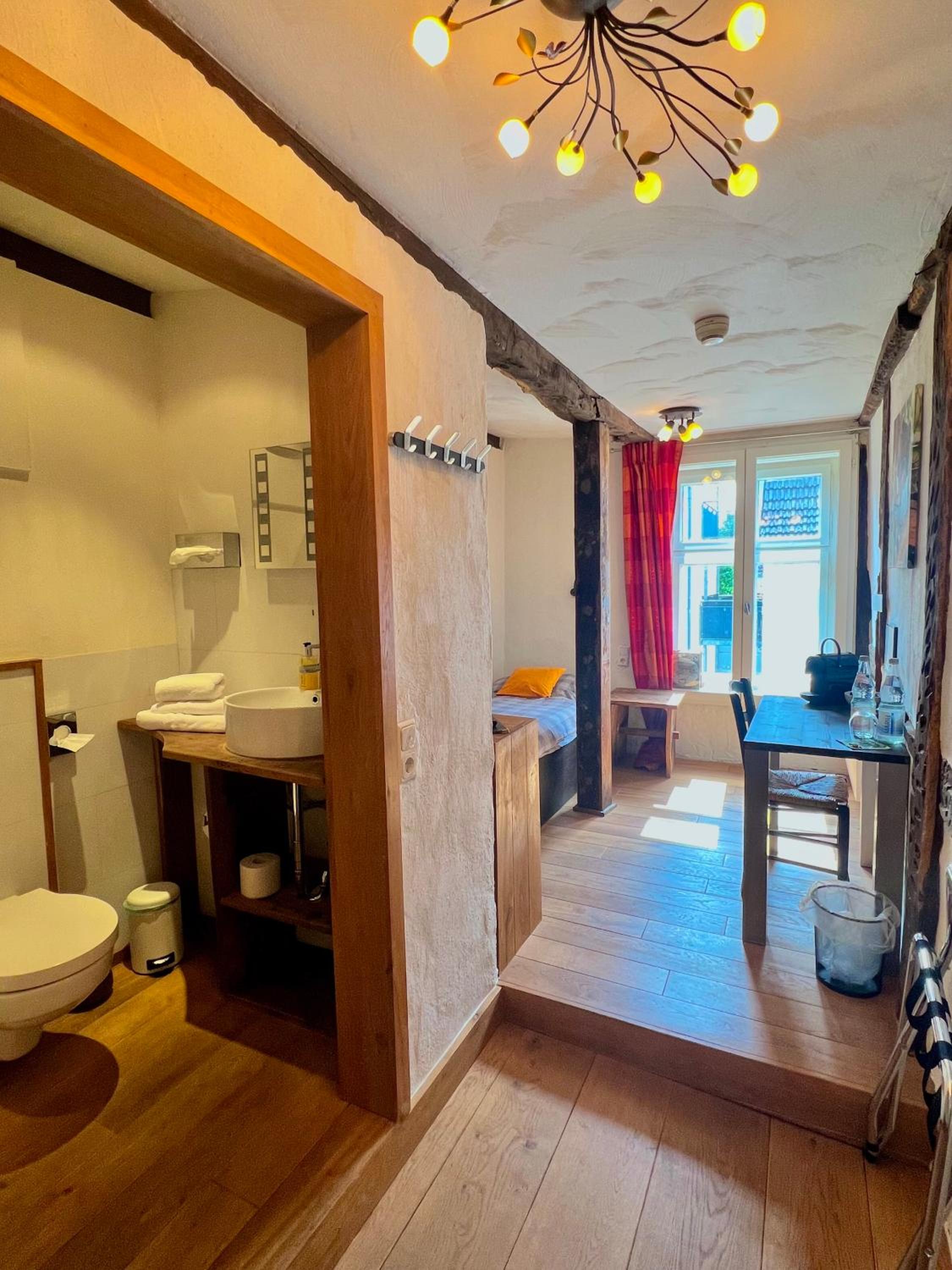 Die Lage des Hotels ist sehr gut. Ein altes Fachwerkhaus, welches super schön renoviert wurde. Sehr sauber und ordentlich. Für die Gäste gibt es die Möglichkeit, einen Kühlschrank mit einem eigenen Fach pro Zimmer und einer kleinen Teeküche zu benutzen.