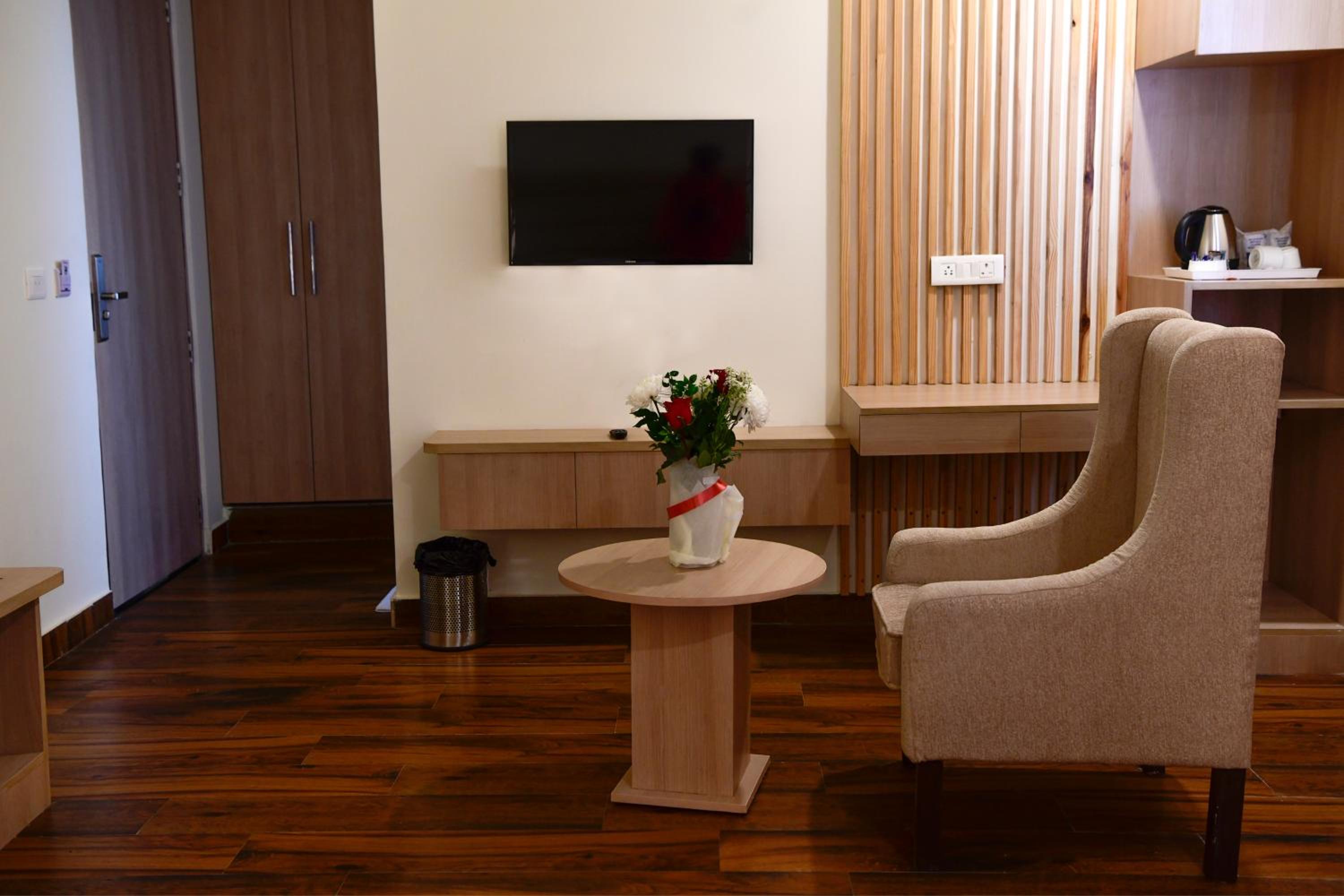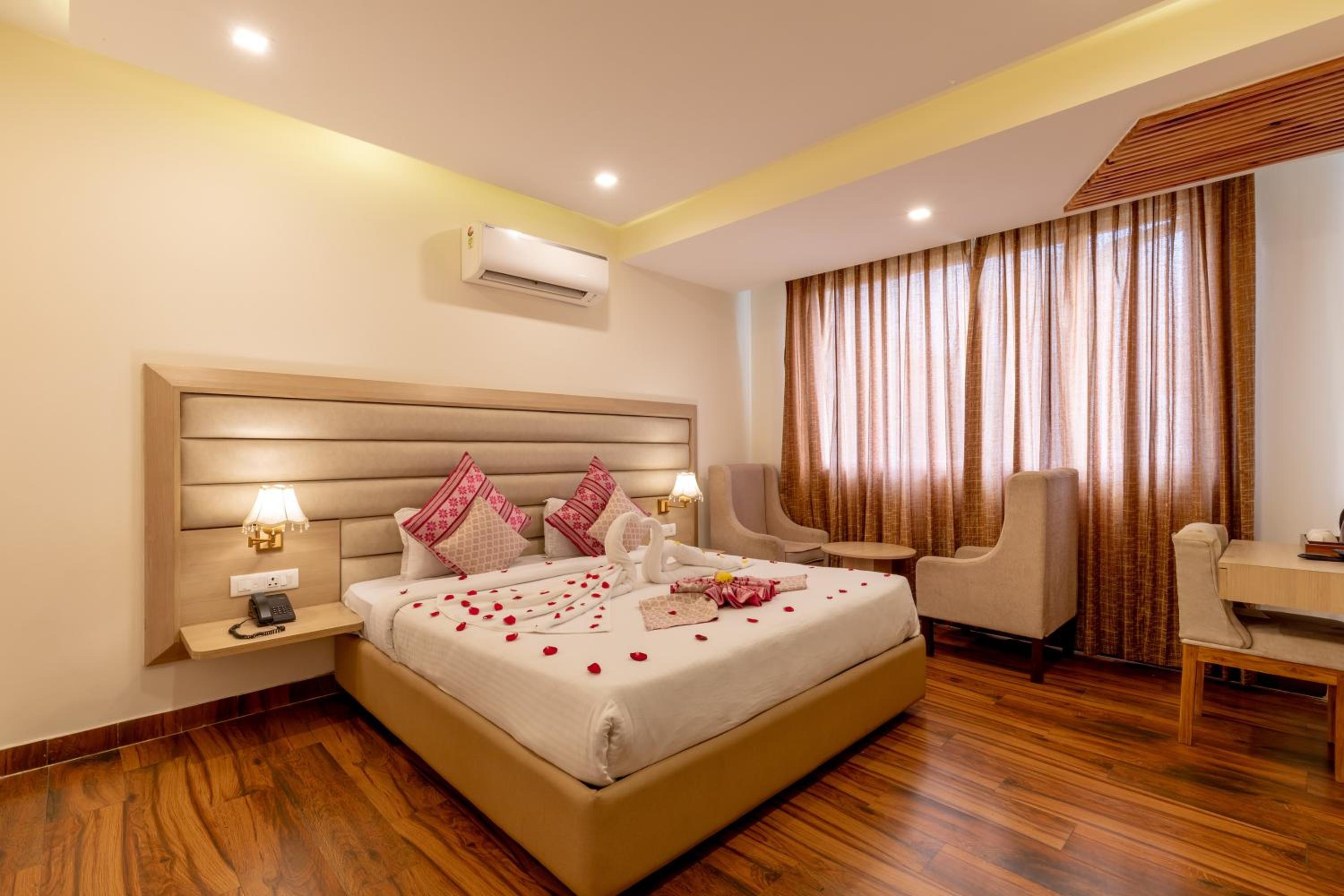 Luxurious Accommodation - Hotel White Rock By The Solitaire Hospitality offers elegantly designed rooms equipped with modern amenities such as air conditioning, flat-screen TV, and a minibar, ensuring a comfortable stay for guests.