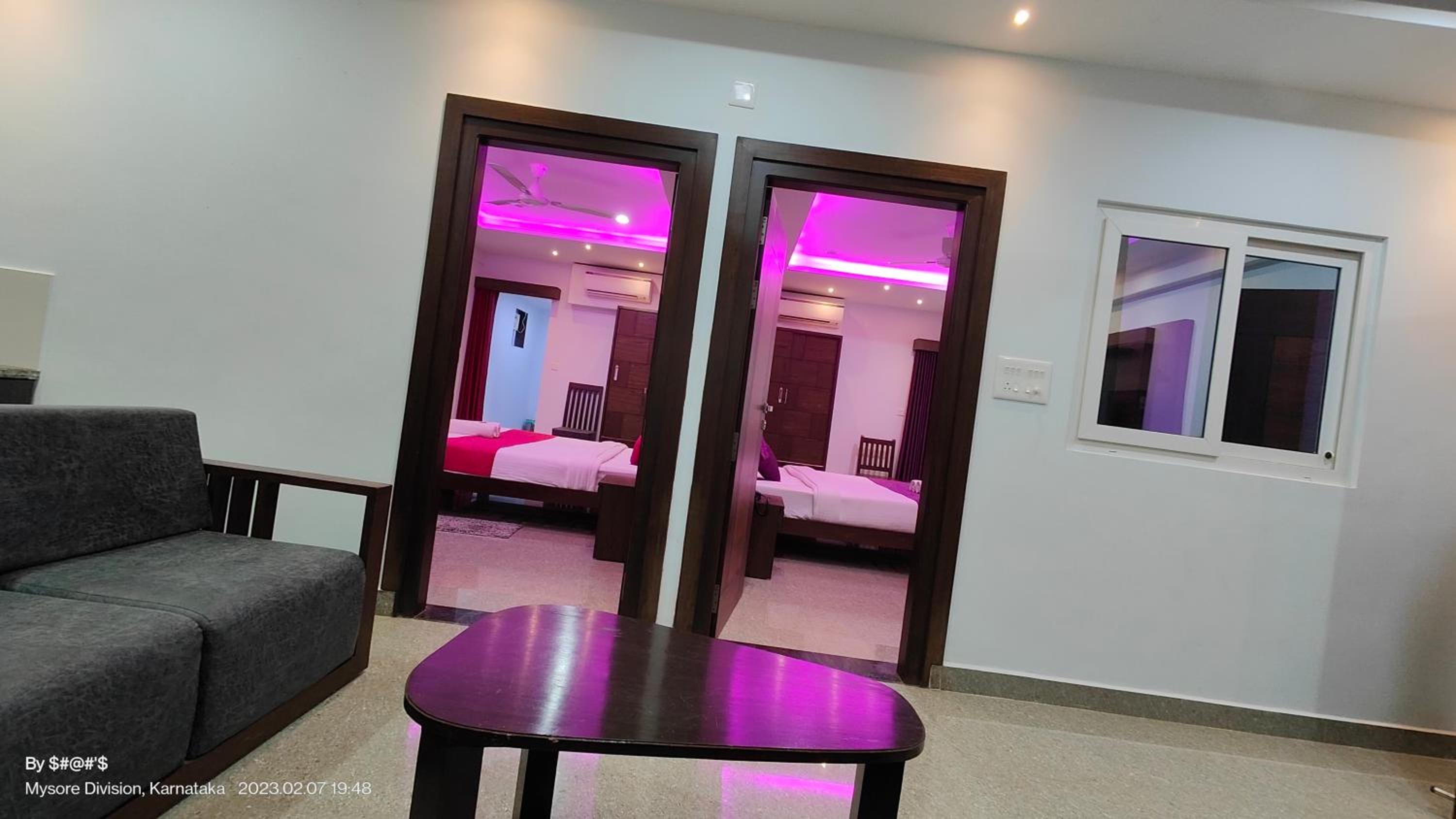 Room size, tea arrangement. Adjacent rooms
