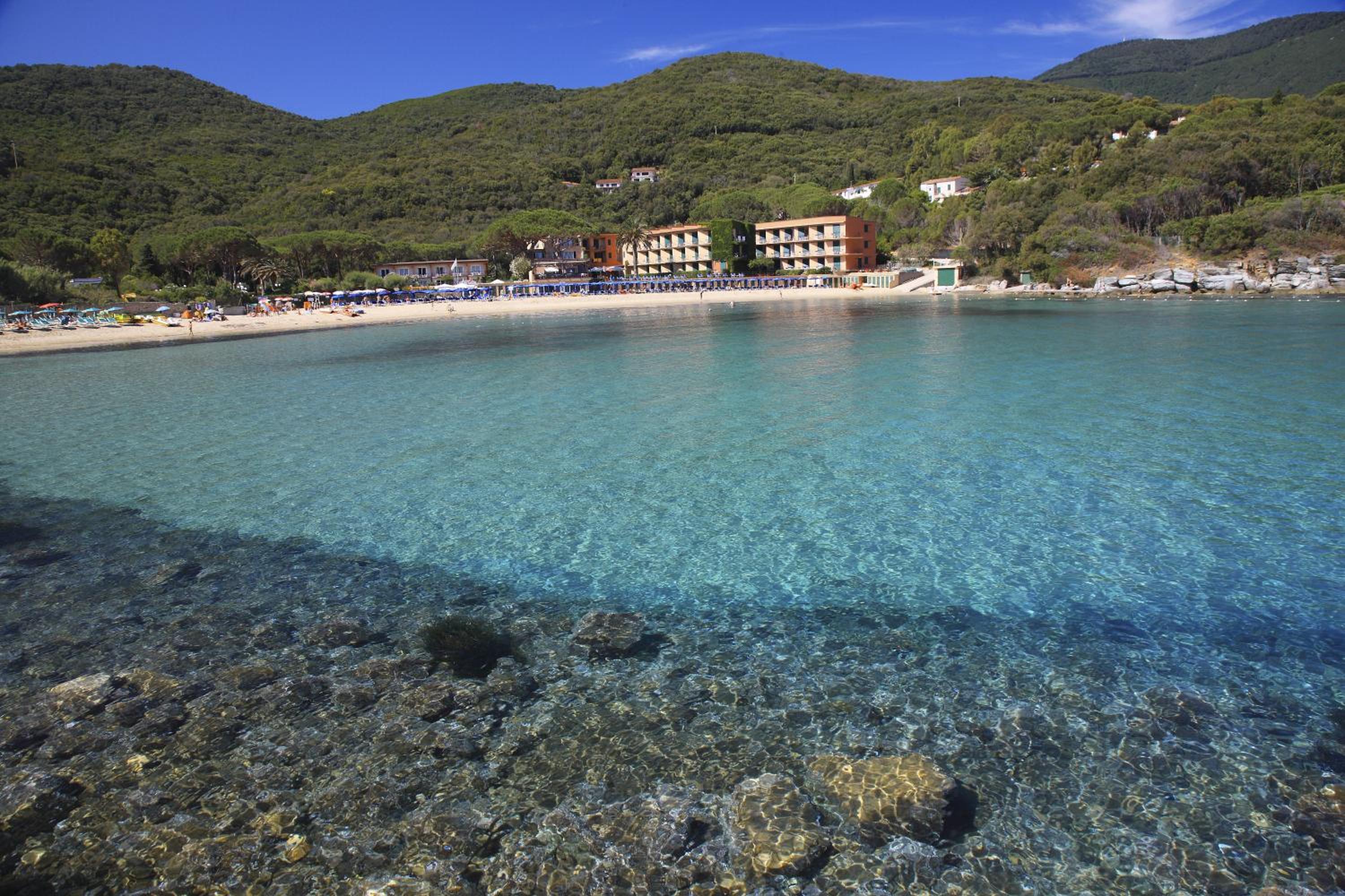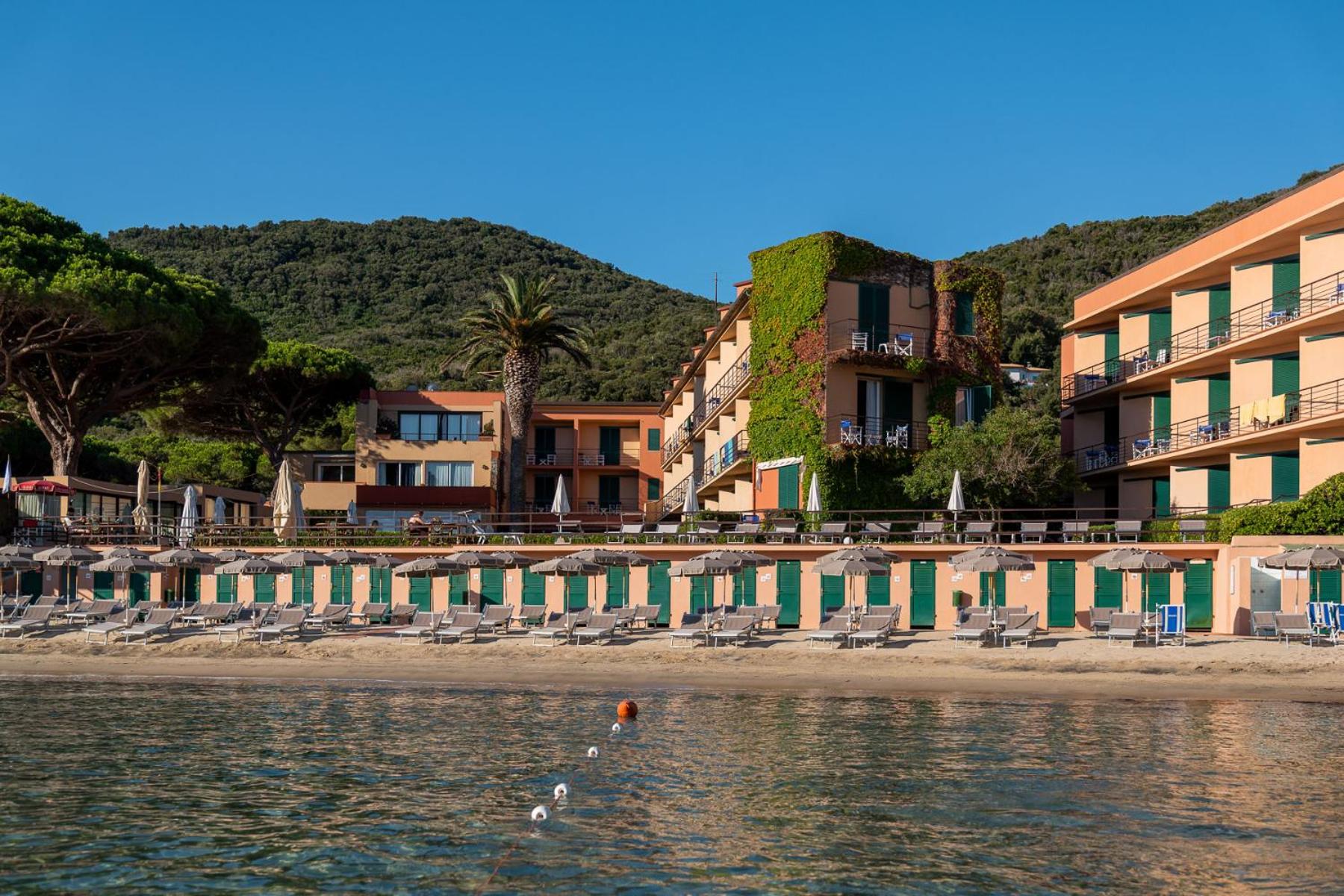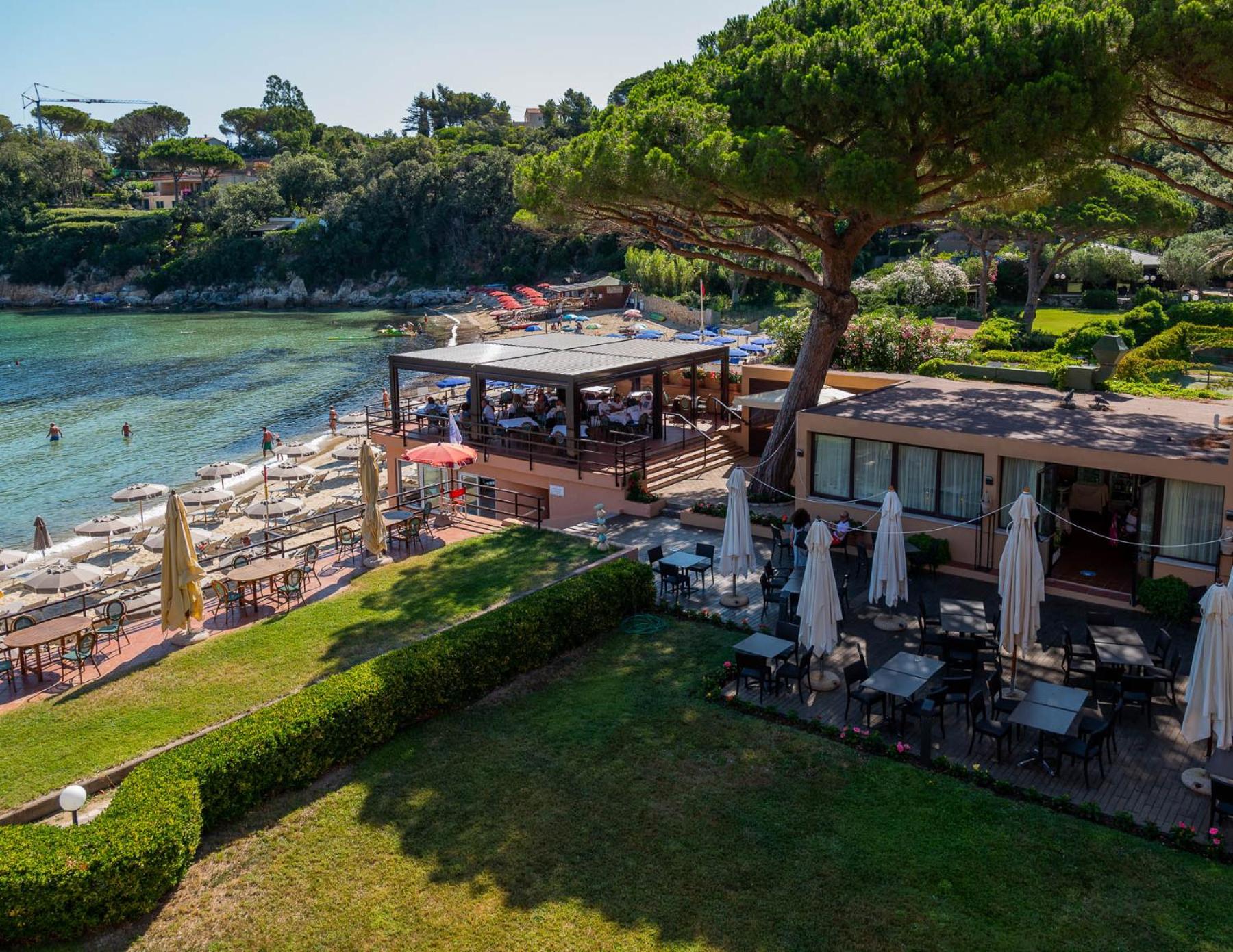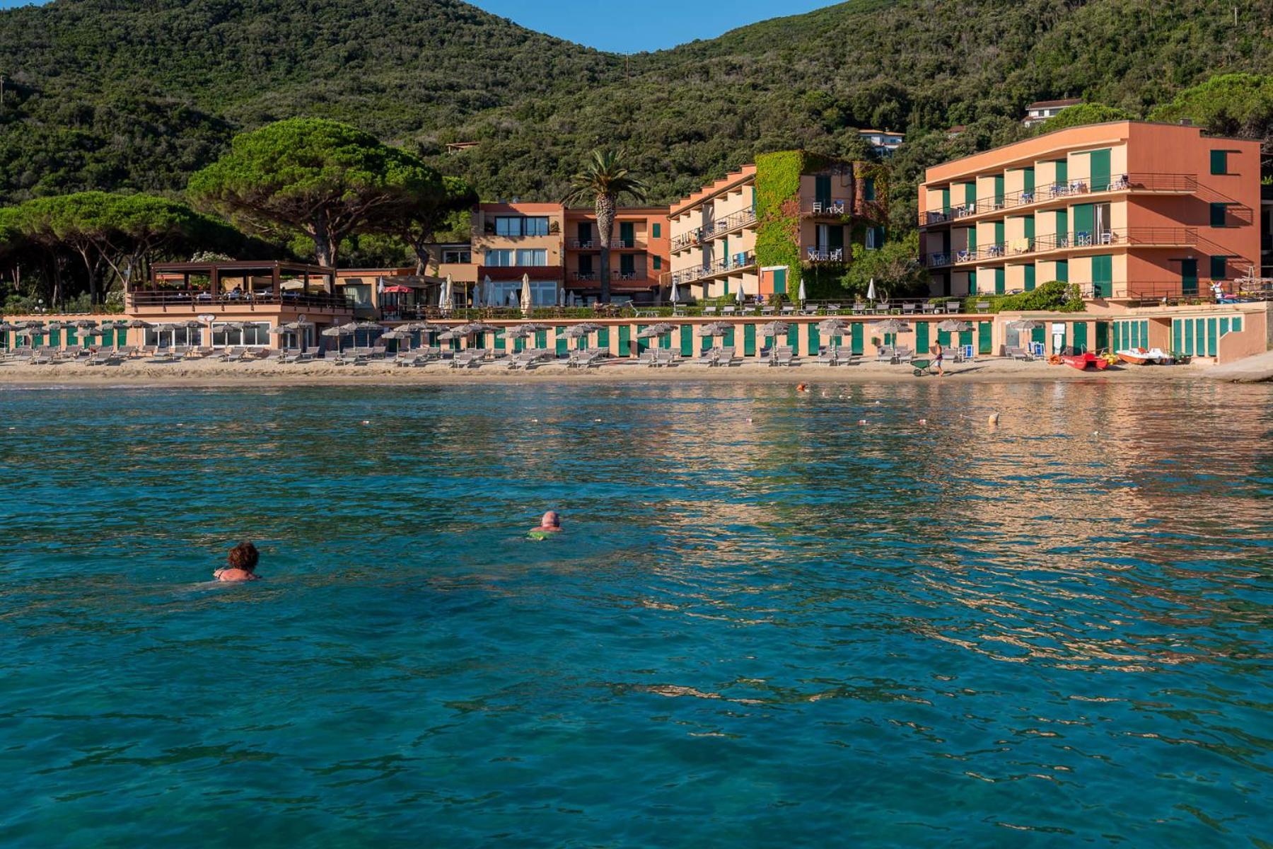 Ottimo hotel, in posizione ideale con accesso diretto alla spiaggia (privata e attrezzata) in una baia piccola e riparata anche in caso di mare mosso.