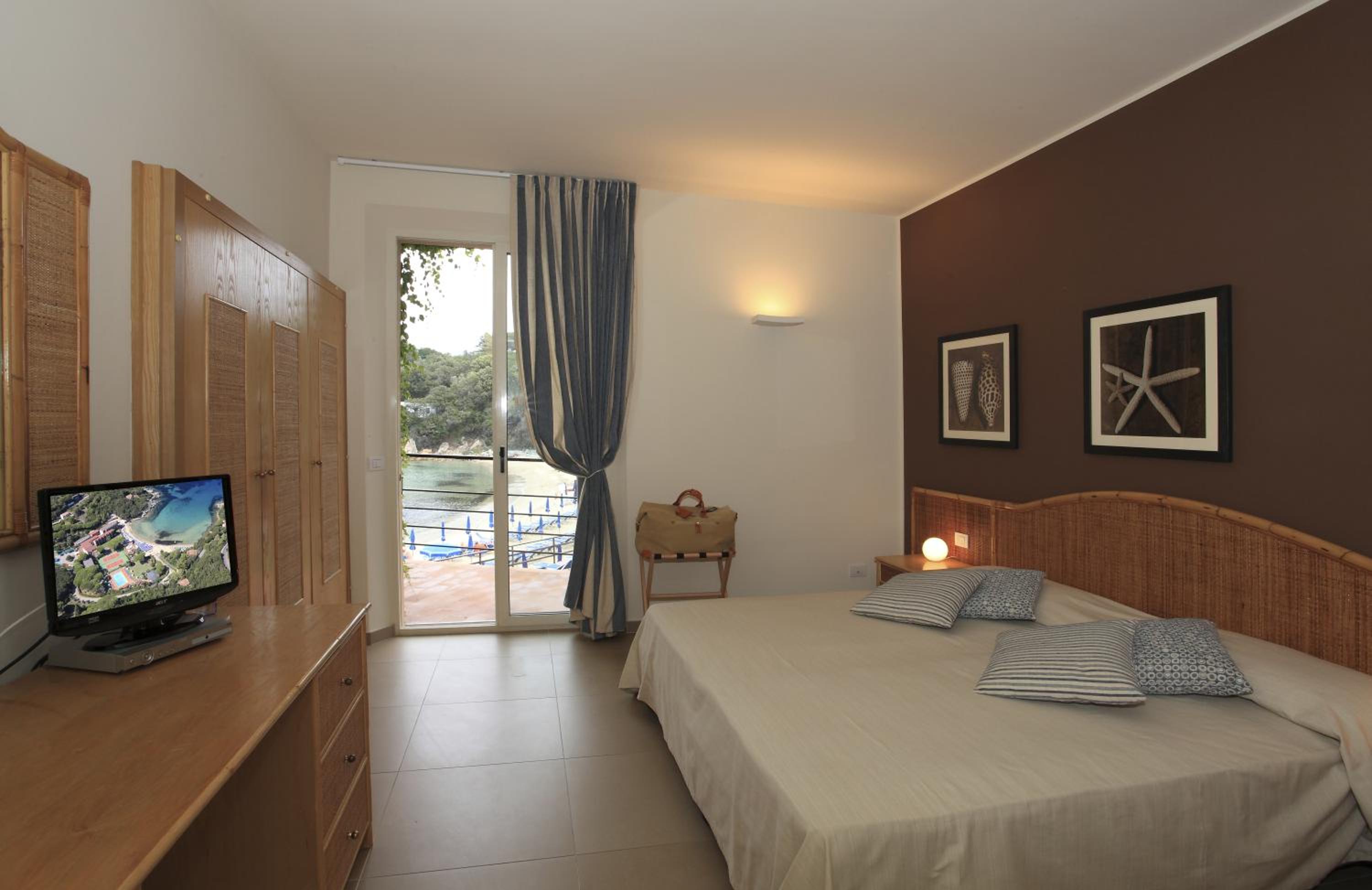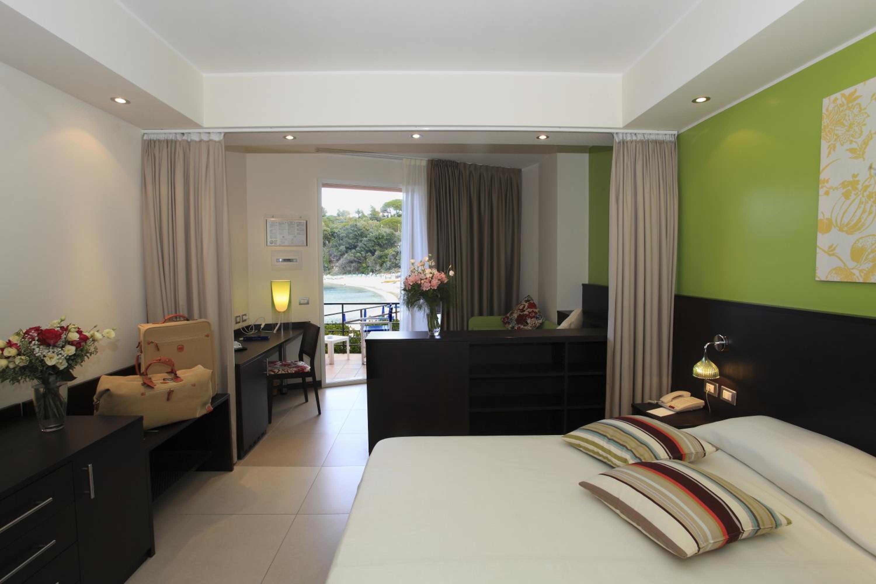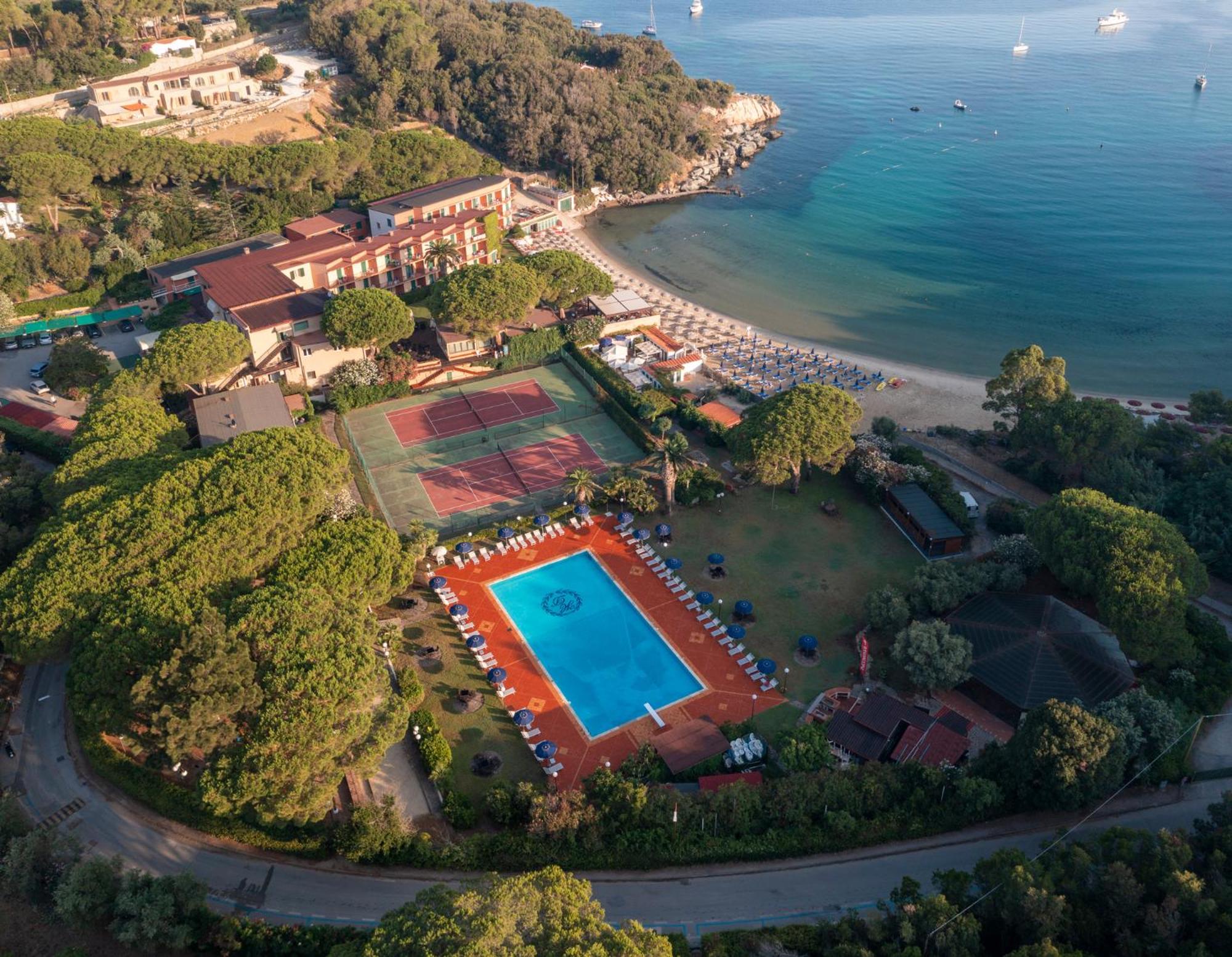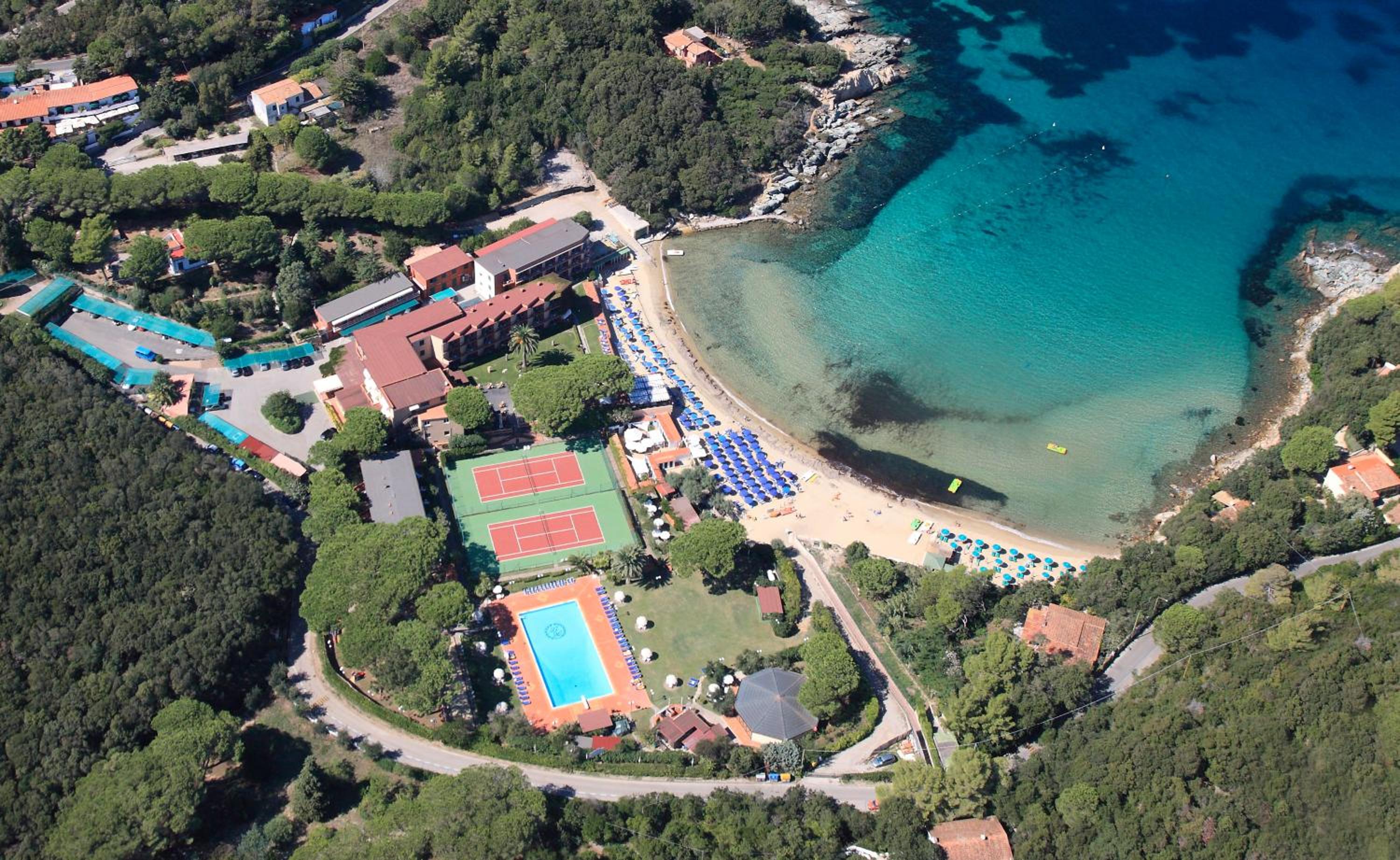 Ottimo hotel, in posizione ideale con accesso diretto alla spiaggia (privata e attrezzata) in una baia piccola e riparata anche in caso di mare mosso.