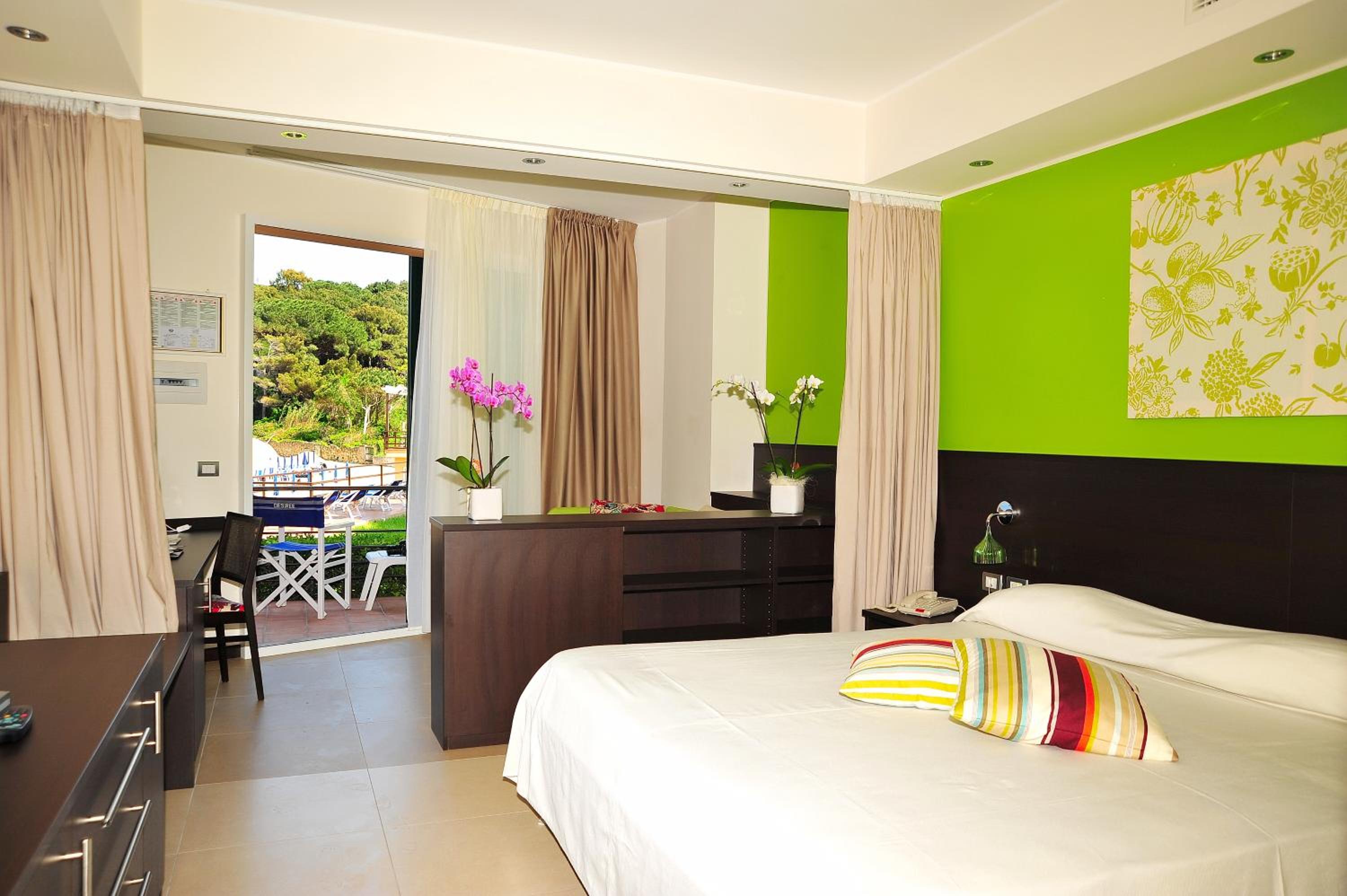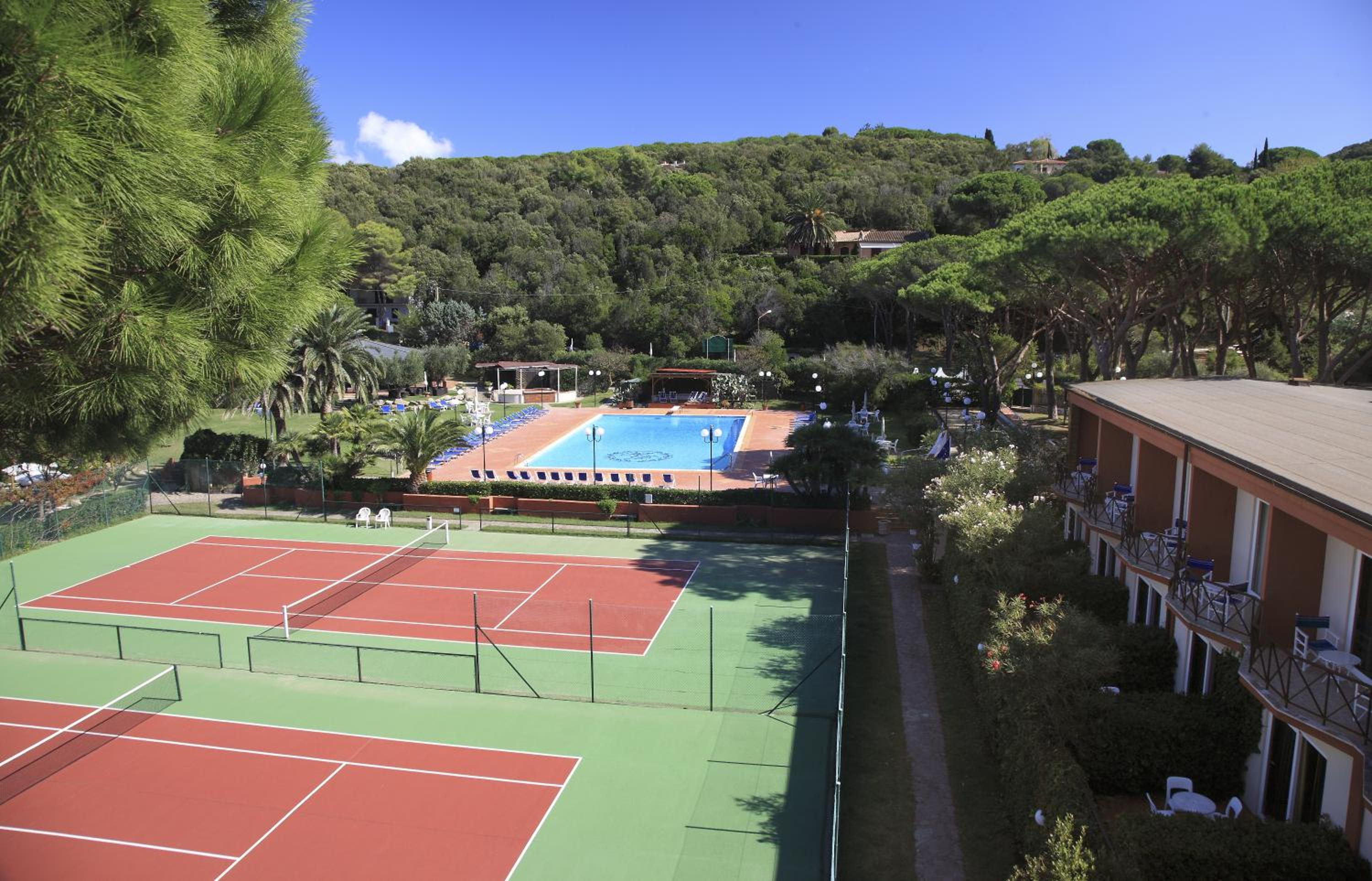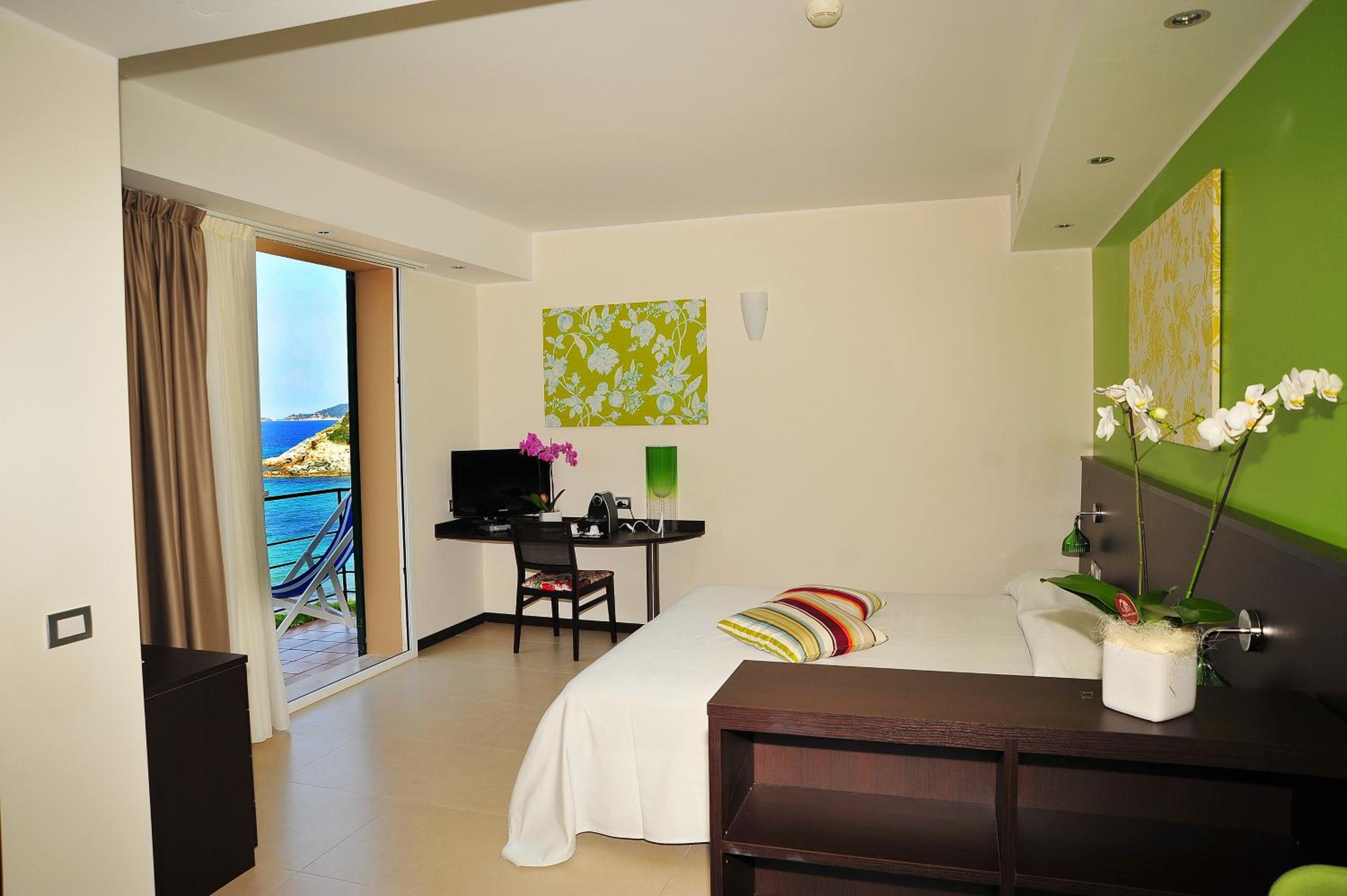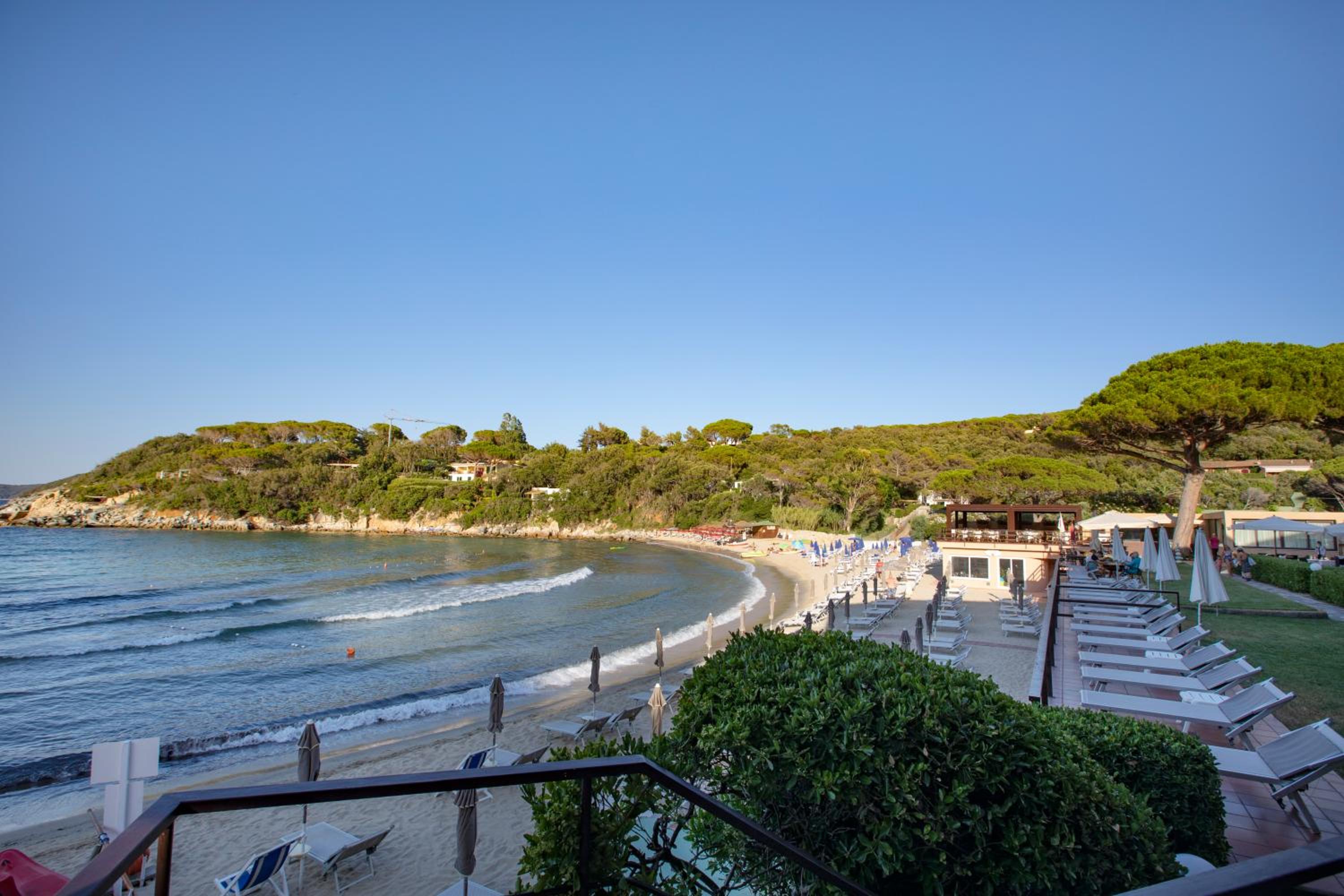 Ottimo hotel, in posizione ideale con accesso diretto alla spiaggia (privata e attrezzata) in una baia piccola e riparata anche in caso di mare mosso.