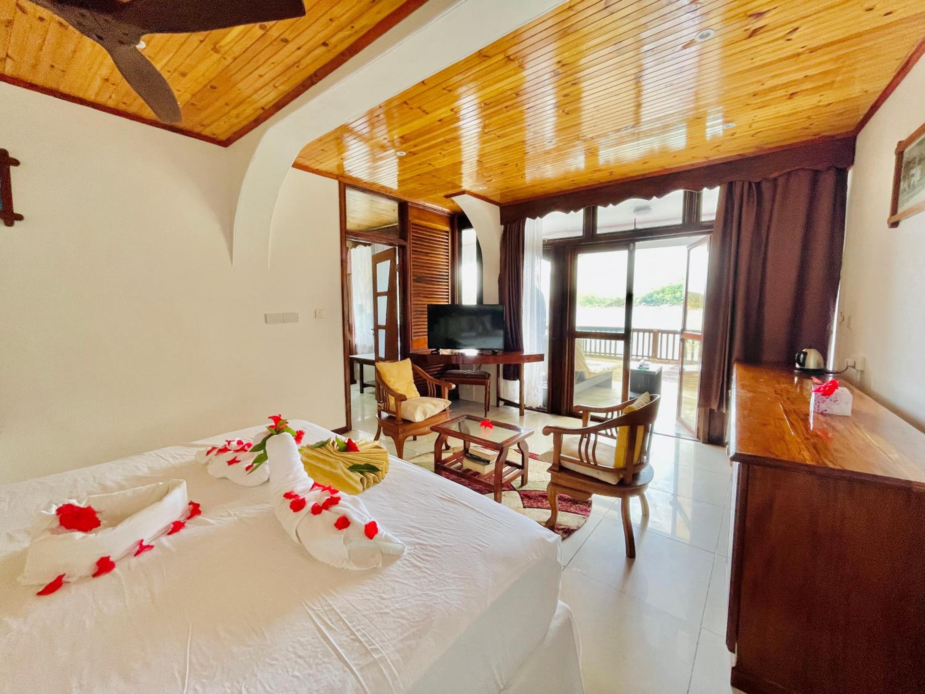 Die Lage mit dem kleinen Strandabschnitt und den Milliarden an Jahren alten Granitfelsen ist traumhaft, der Sand fein und das Wasser kristallklar. Wir bewohnten die Senior Suite und waren begeistert von der Aussicht und der Geräumigkeit der Terrasse.