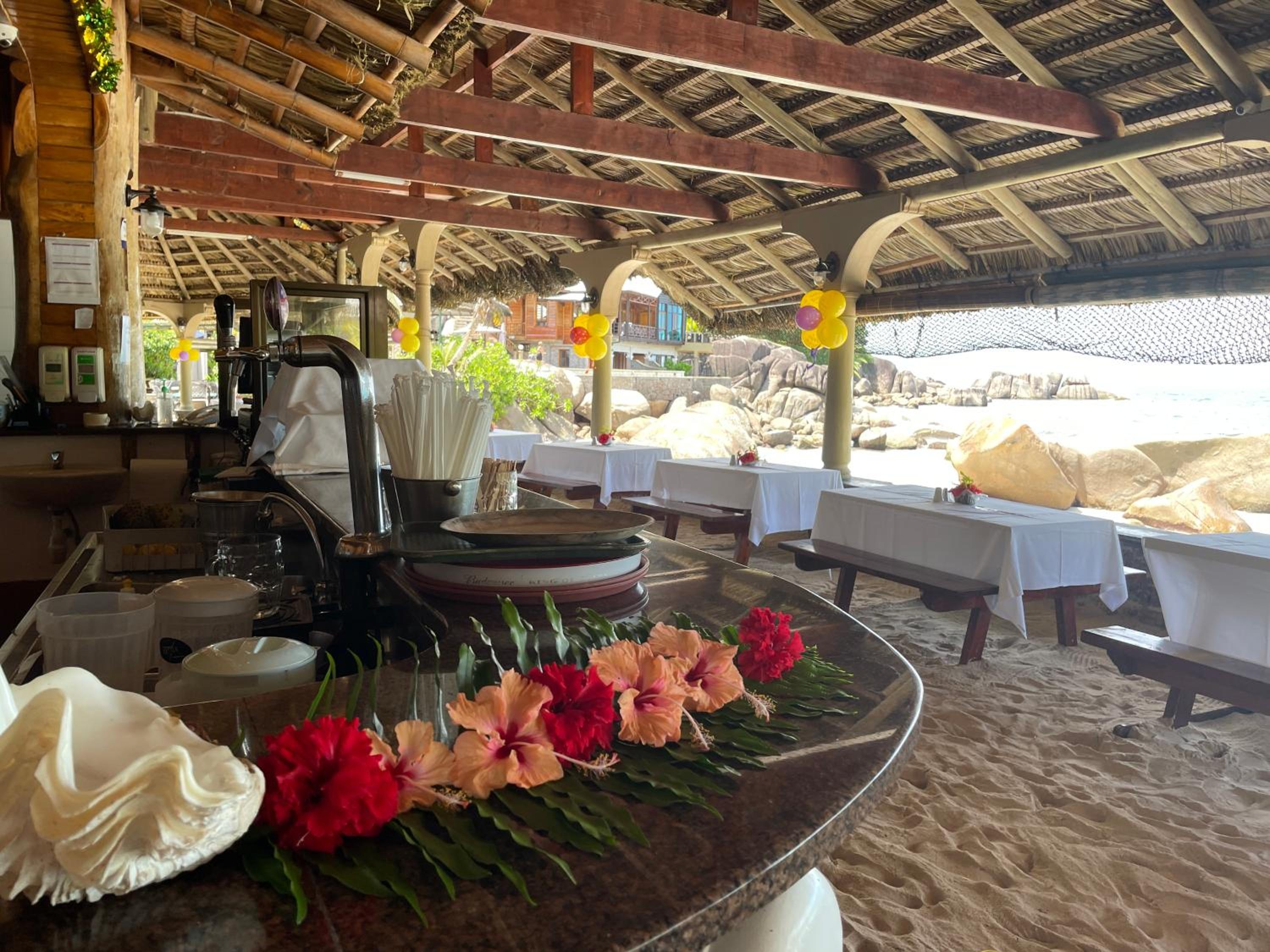 Indulge in a unique dining experience at Chez Batista's rustic restaurant. With sand-covered floors and a thatched roof, guests can enjoy delicious meals while feeling the ocean breeze. The restaurant offers a cozy ambiance that perfectly complements the beachfront location.