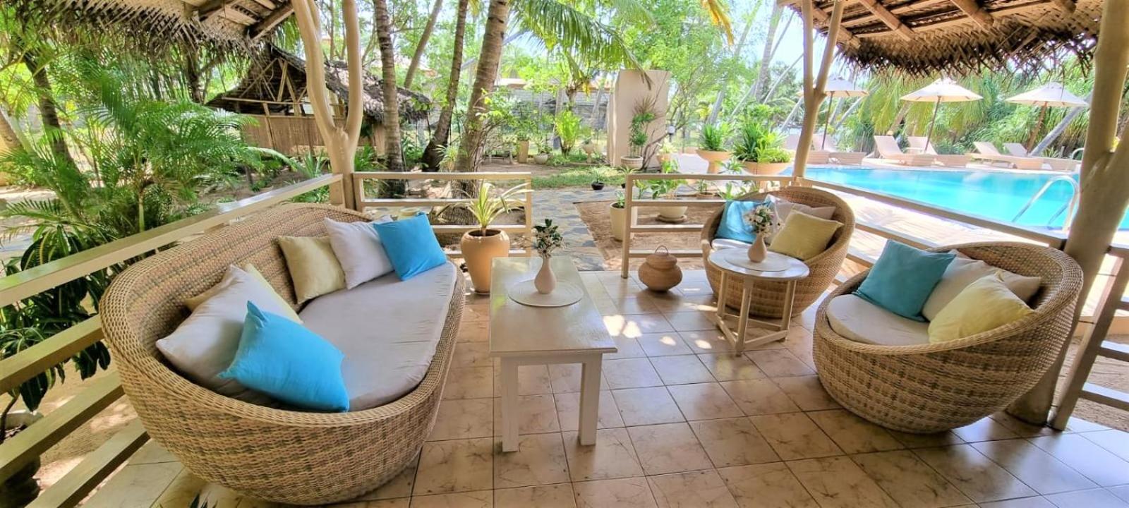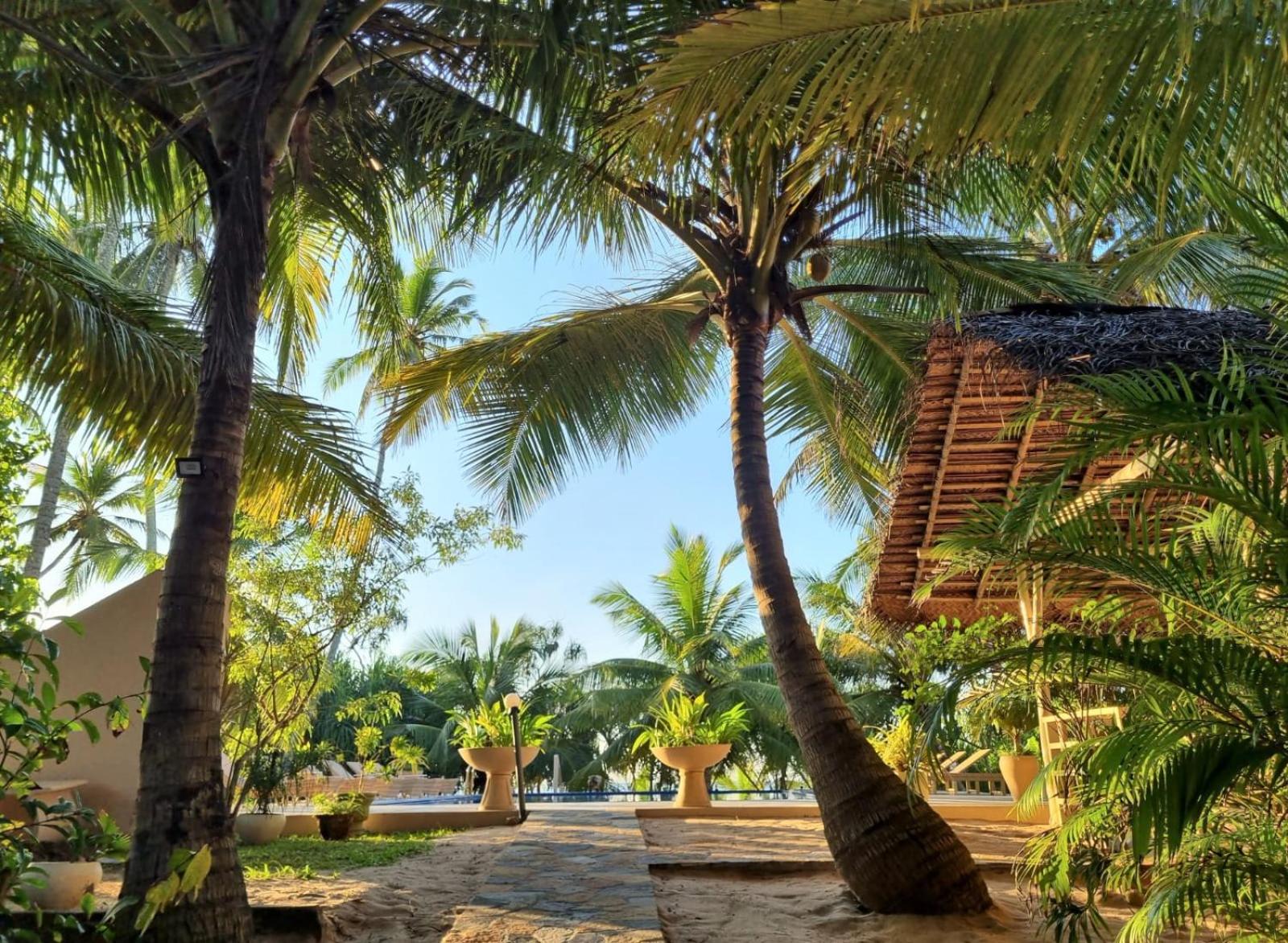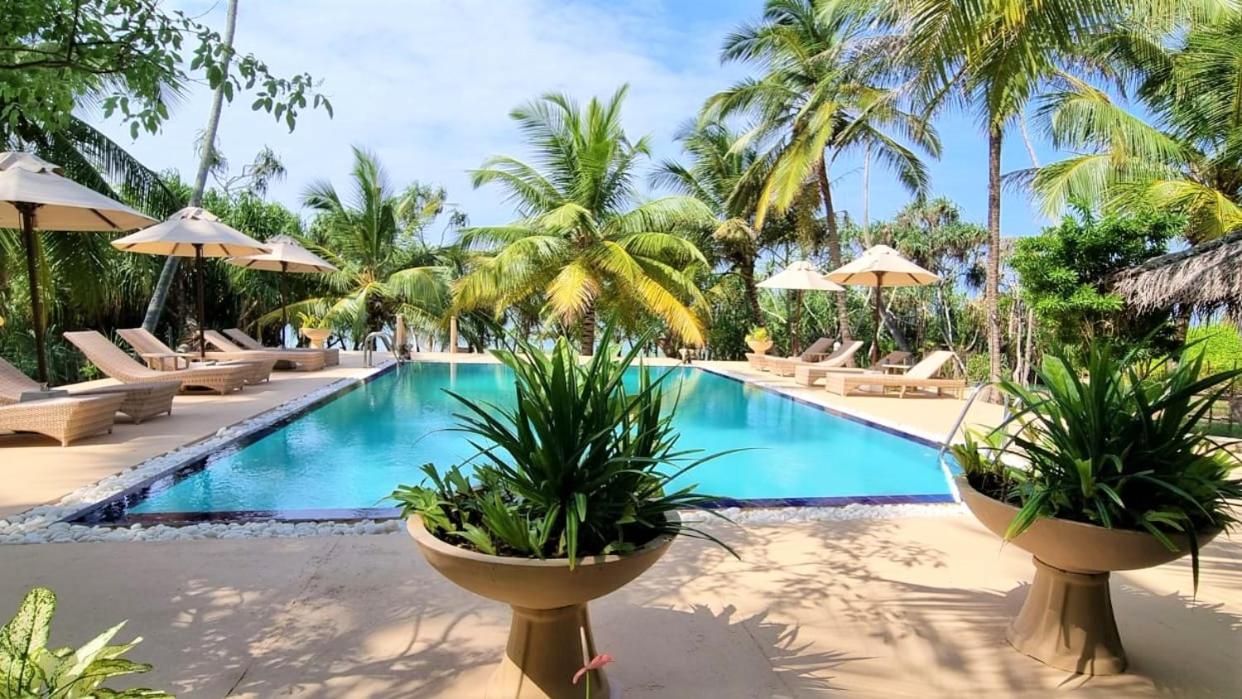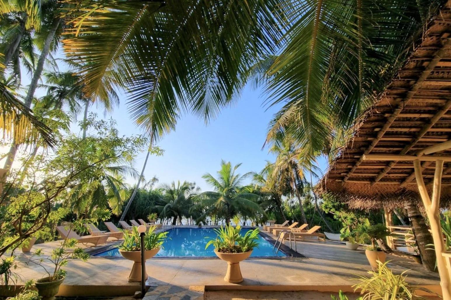 Unwind in Style: Enjoy the outdoor swimming pool, garden, and terrace at Golden Beach Paradise after a day at Wella Odaya Beach.