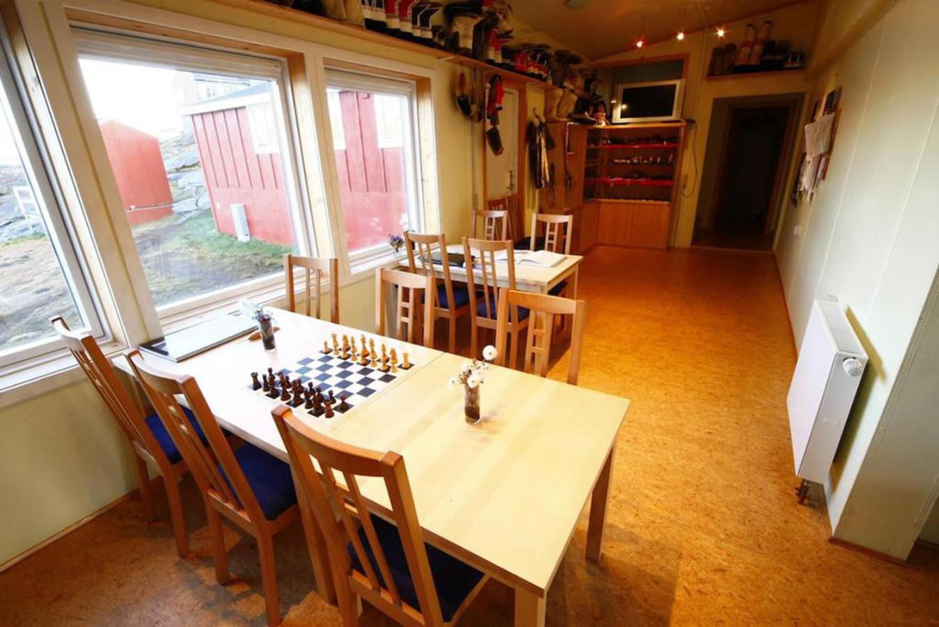 Experience breathtaking views of Kong Oscar Fjord and cozy up by the fireplace at The Red House in Tasiilaq.
