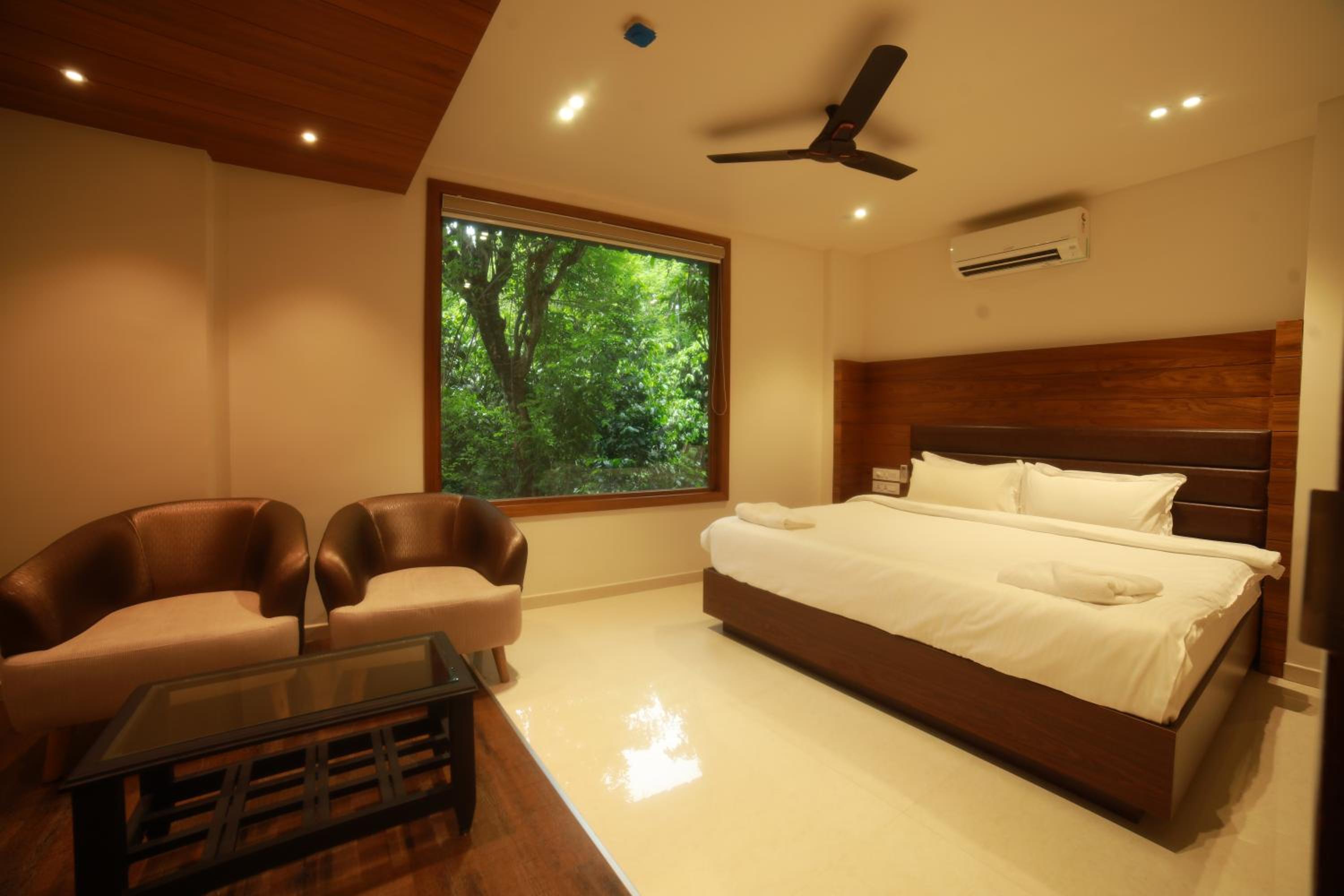 Wild Saga in Thekkady offers 3-star accommodation with modern amenities. Each room is equipped with a flat-screen TV, coffee machine, and free WiFi. Some rooms even feature a private terrace with garden views, ensuring a relaxing stay.