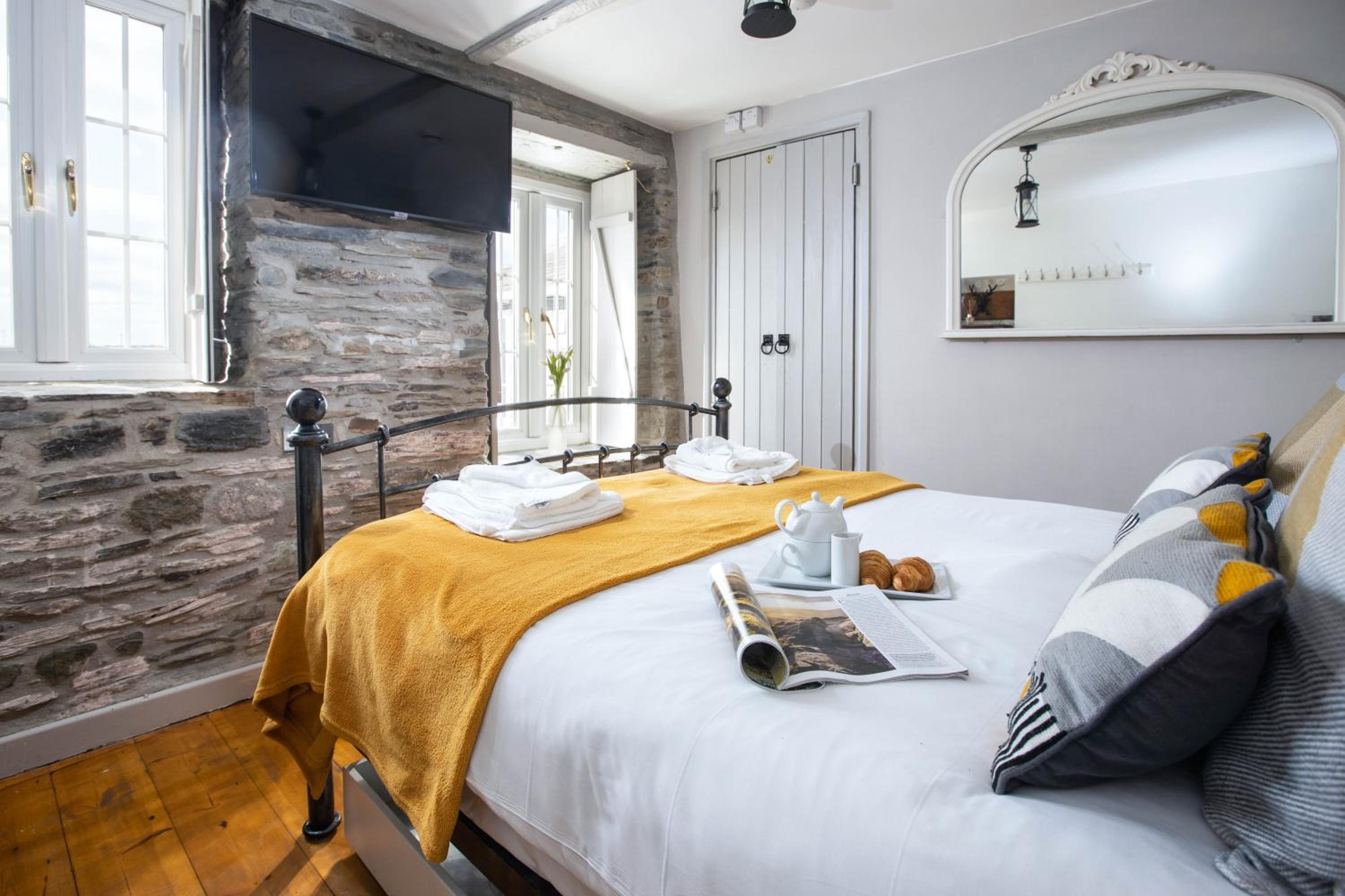 Dinner was fabulous, really delicious with smokes olives and home pickled onions in our starter. The wine list was really decent and a cooked Cornish breakfast is included in the room price. Highly recommend staying here, it's very atmospheric, with creaks and knocks, what you'd expect from a 14th century Inn, but a friendly energy. We stayed in room 2 and it was very friendly and comfortable. Enjoy your stay here!