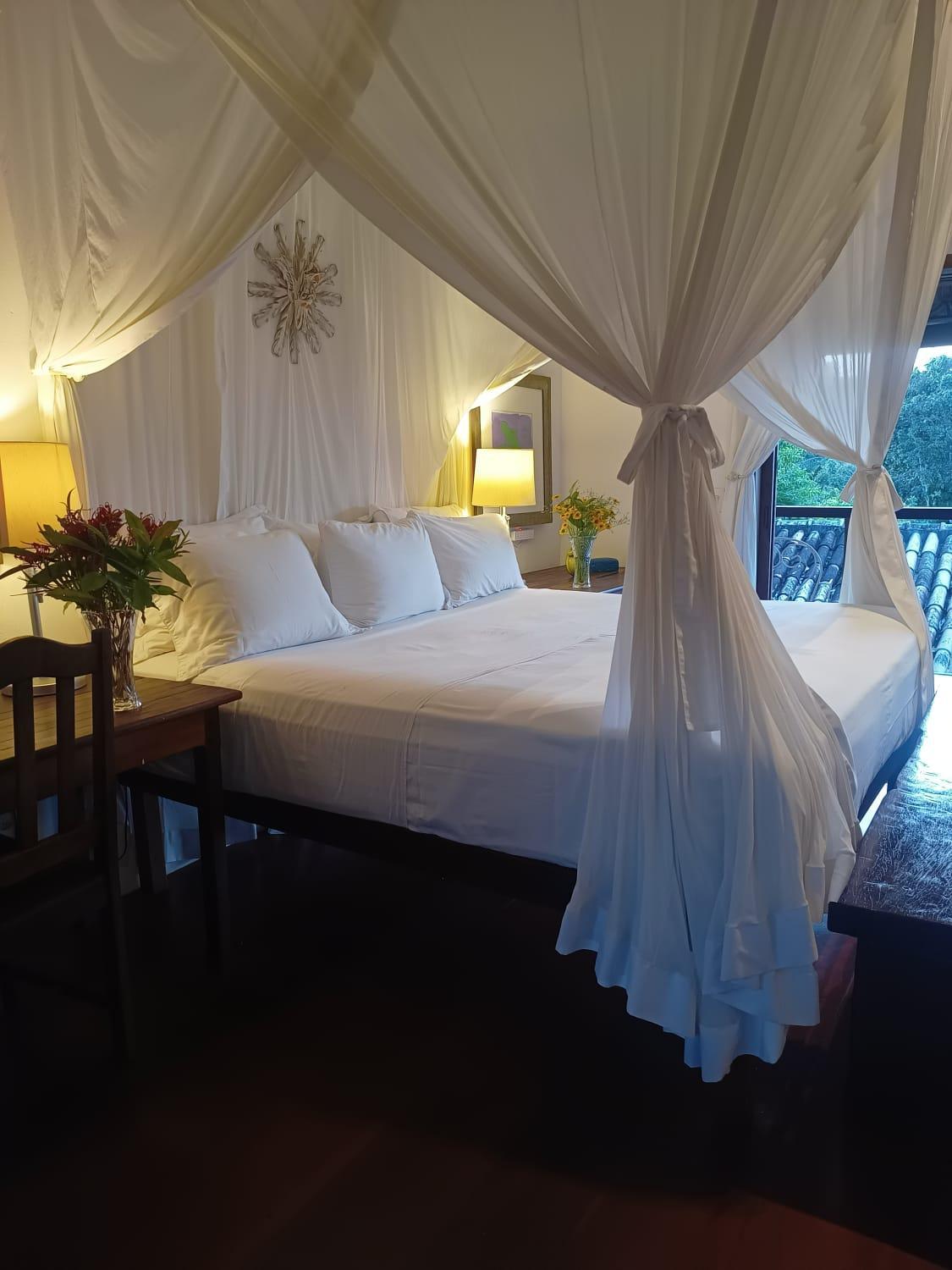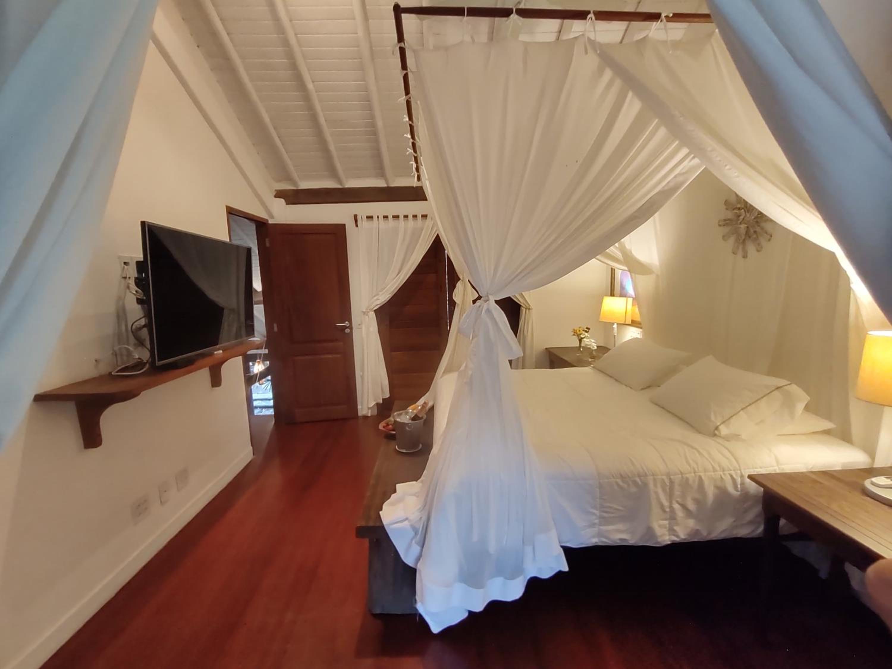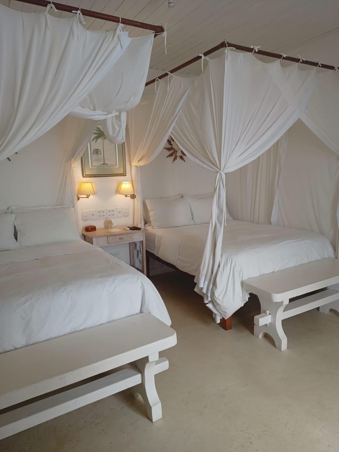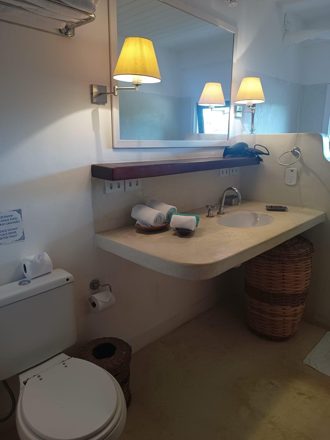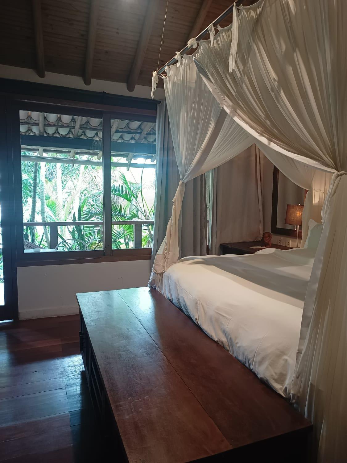 Os quartos são espaçosos, assim como os banheiros, que contam com produtos da Avatin. O gerente do hotel, Guilherme, foi um diferencial: atencioso, presente e disponível praticamente 24 horas por dia. Nos deu dicas valiosas sobre Trancoso e região, o que fez toda a diferença para que aproveitássemos ao máximo as praias e os passeios.