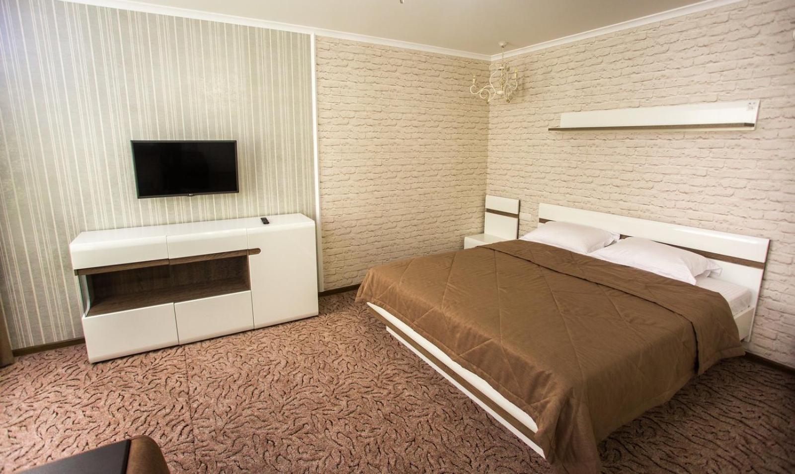 Просторий номер. Ліжко з нормальним матрацом. Наявність кондиціонера (+++), міні-холодильника, чайника та чаю. Безкоштовна парковка.