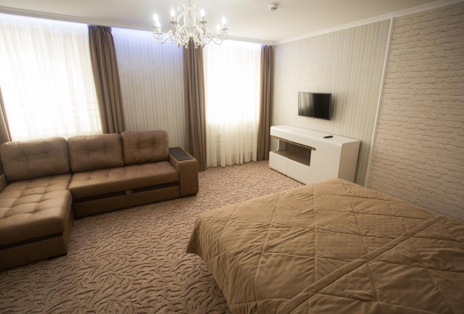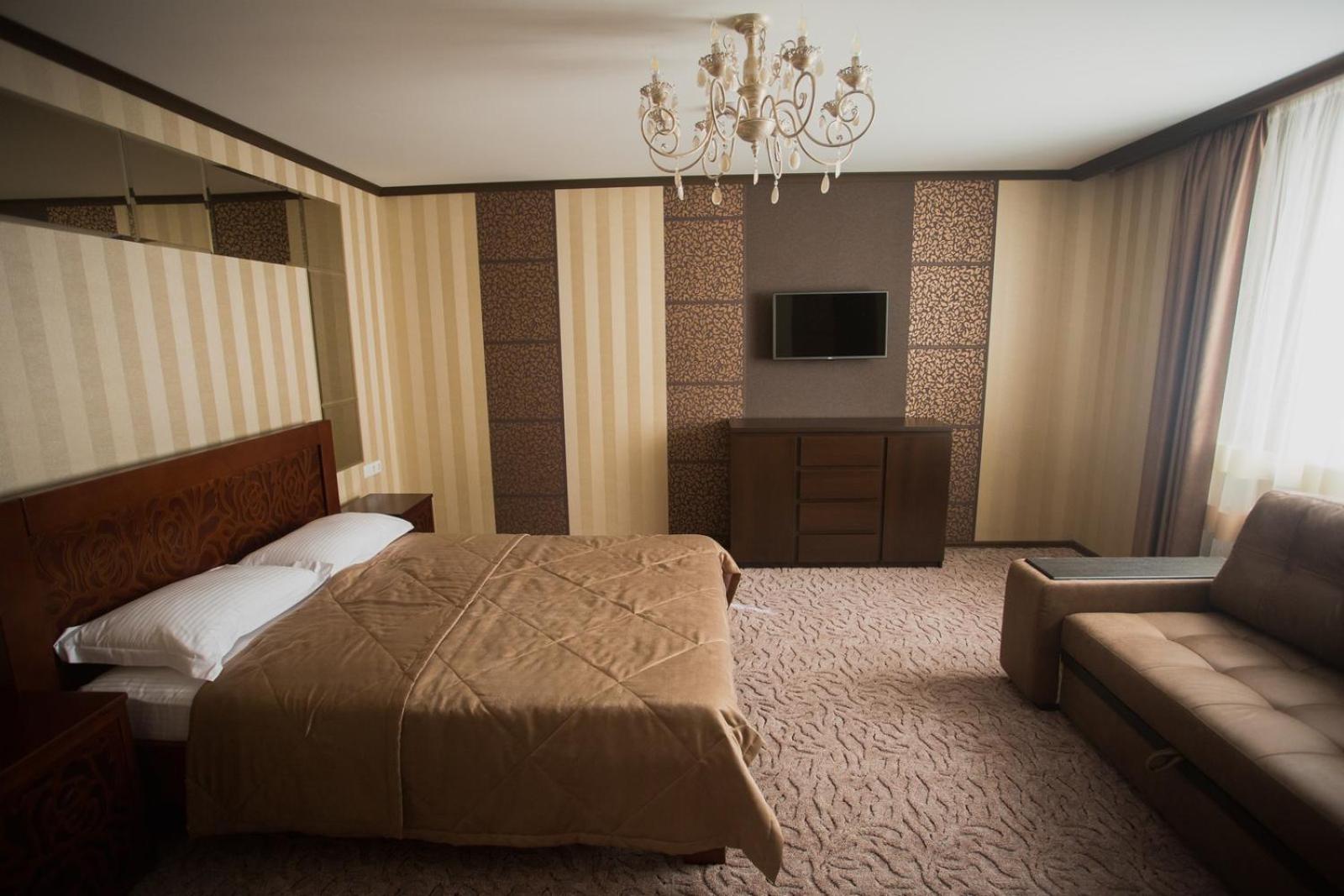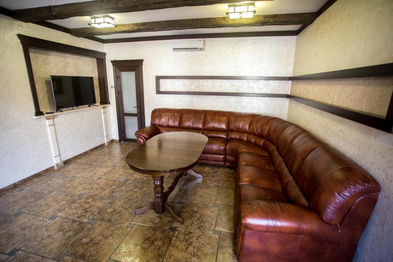 Port Royal in Tul'chyn offers a lavish 5-star experience with modern amenities. Each guest room is equipped with a private bathroom, flat-screen TV, and air conditioning. Some rooms even feature a cozy seating area for added comfort.