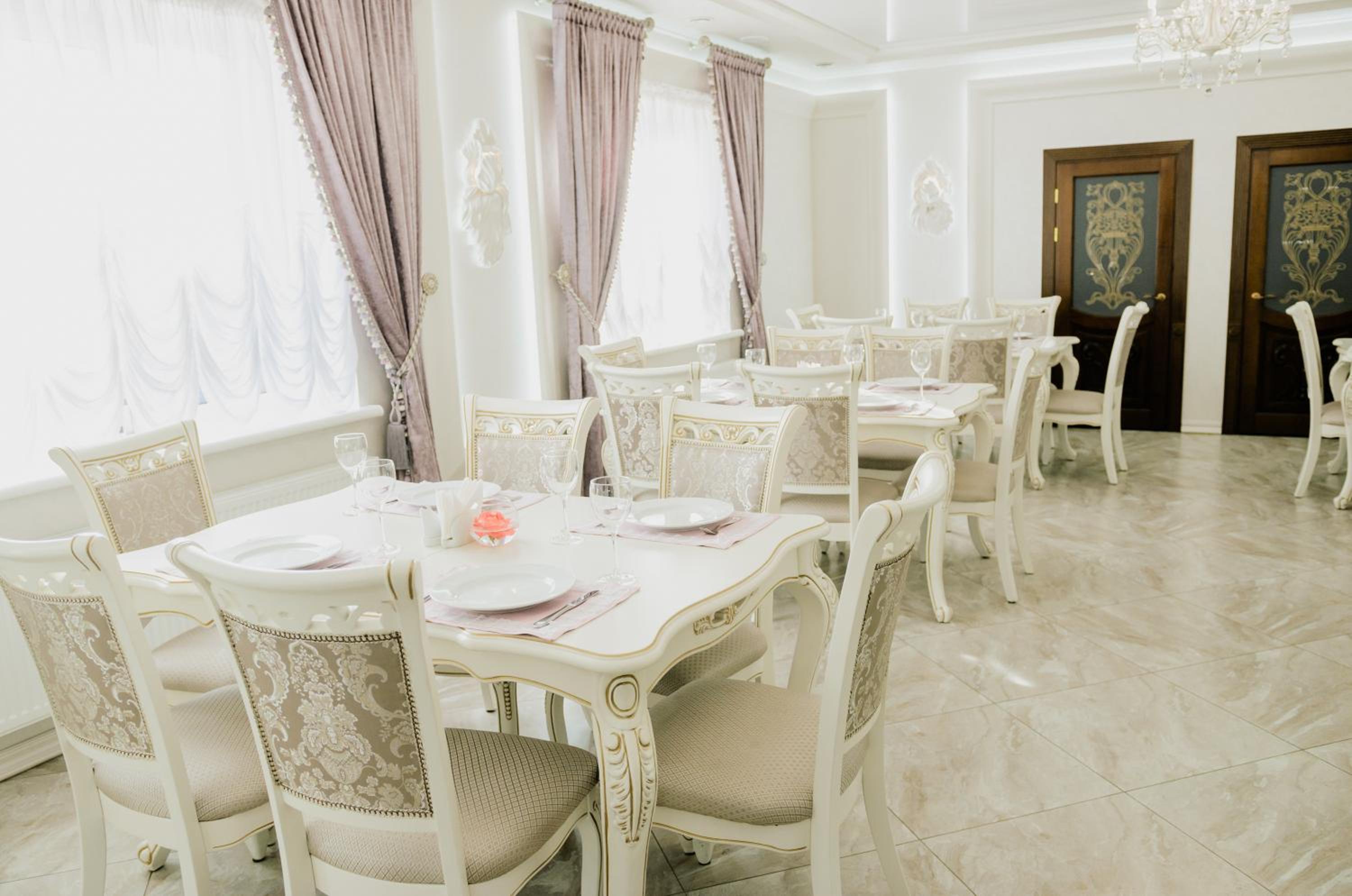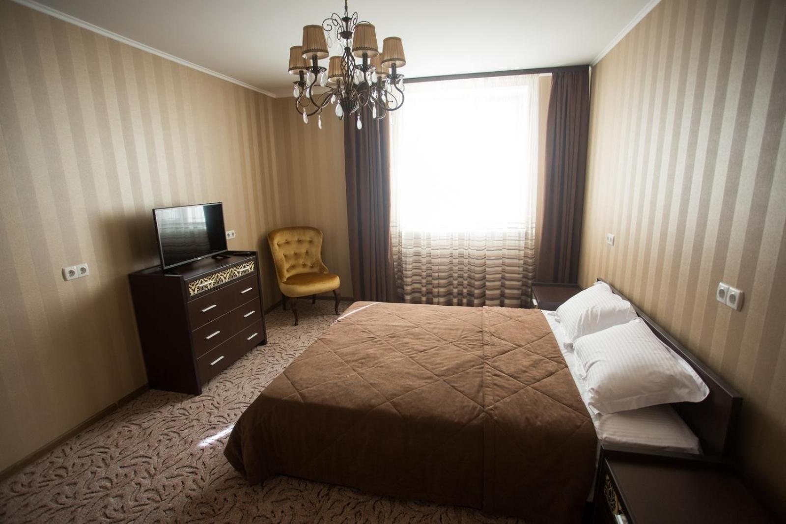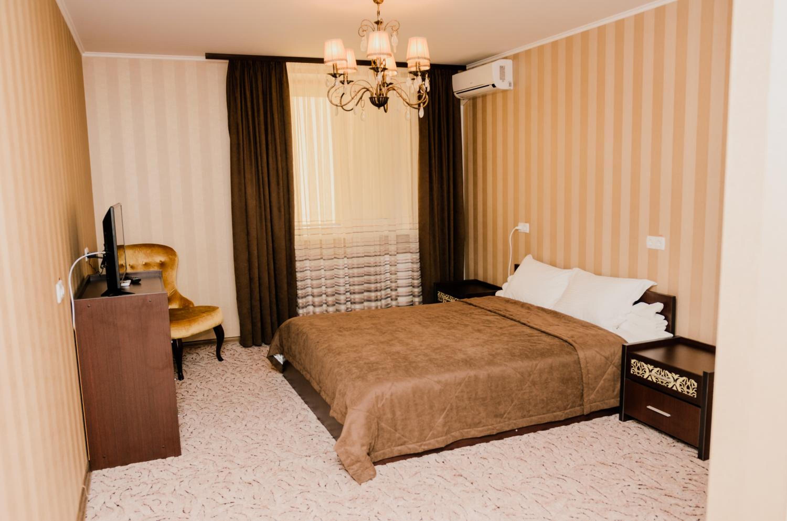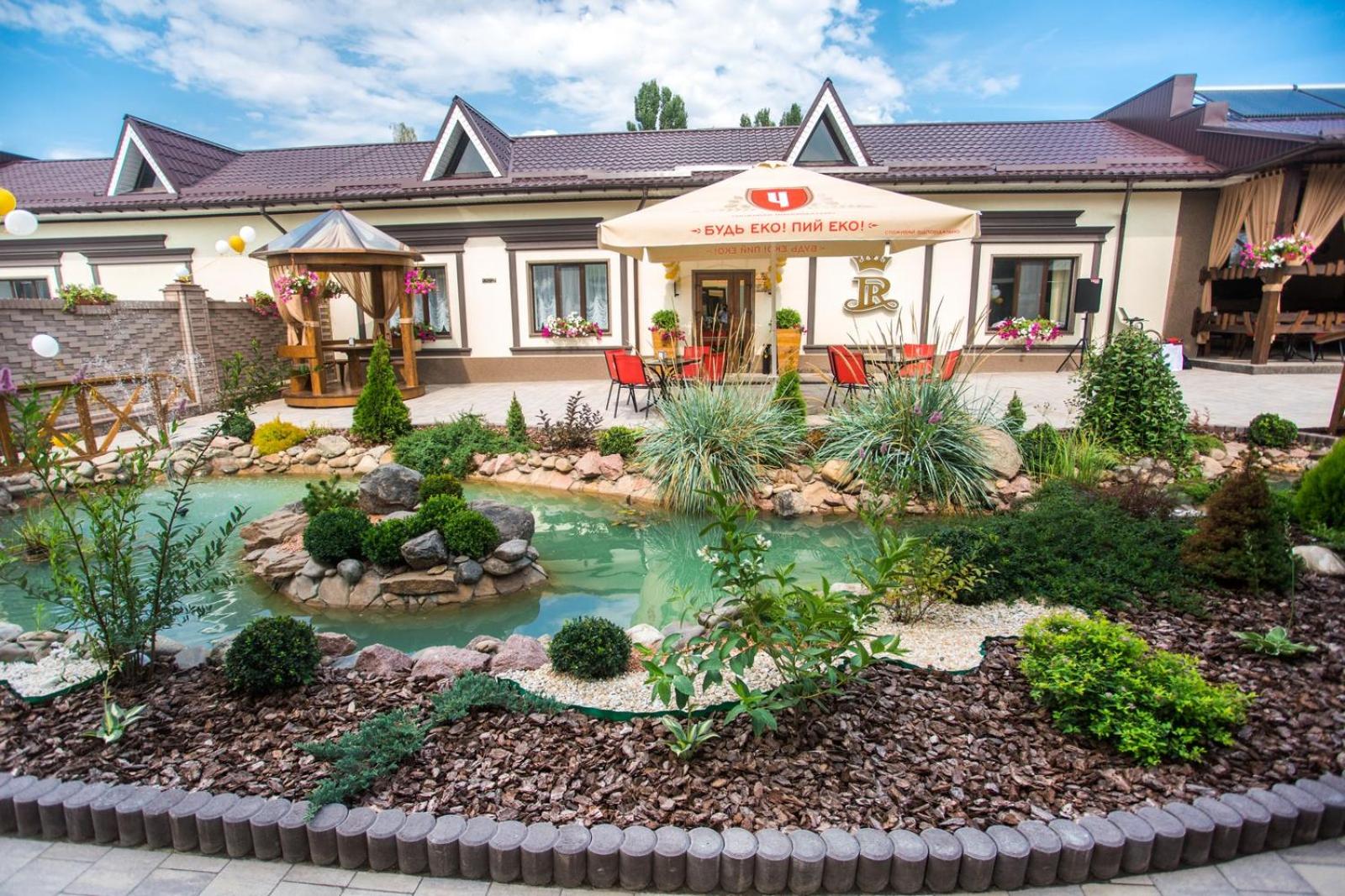 Port Royal in Tul'chyn offers a lavish 5-star experience with modern amenities. Each guest room is equipped with a private bathroom, flat-screen TV, and air conditioning. Some rooms even feature a cozy seating area for added comfort.