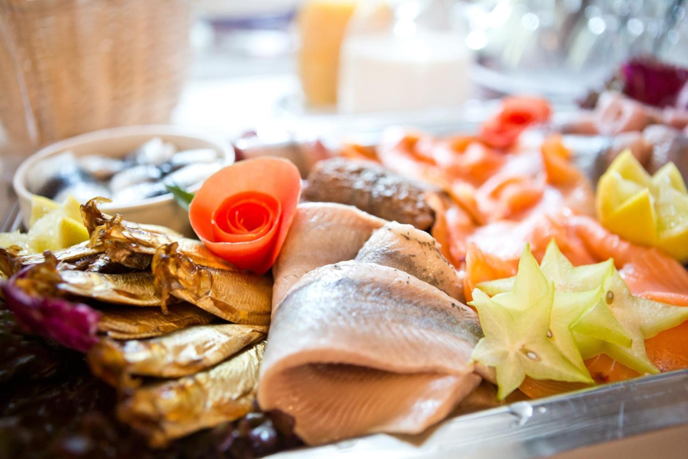 Start your day with a hearty breakfast buffet and savor fresh fish and regional dishes at the traditional restaurant. Unwind in the spa area with a pool and sauna, complimentary for guests staying over 3 nights.