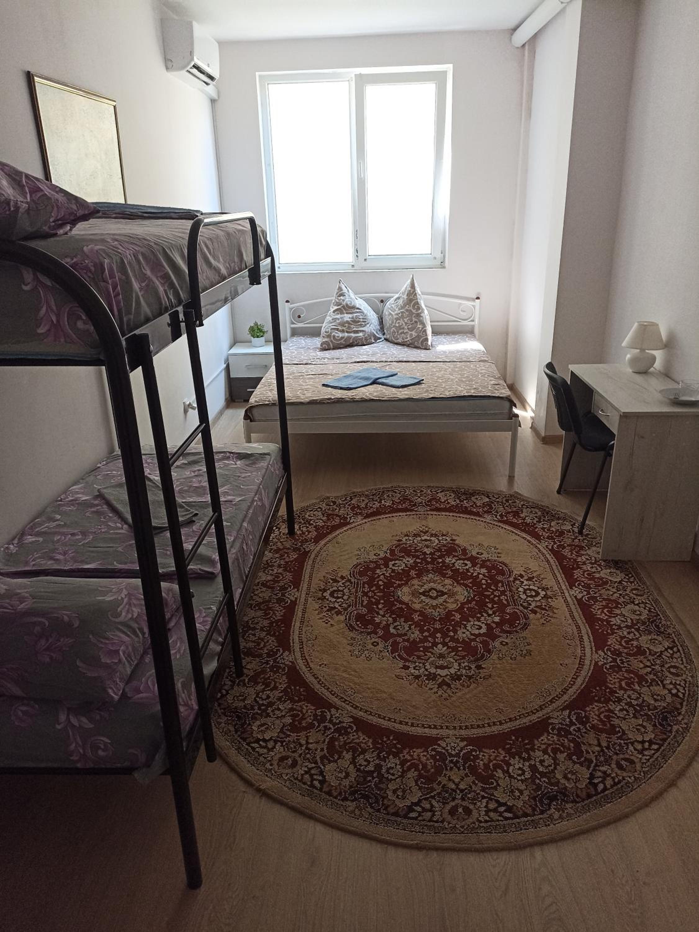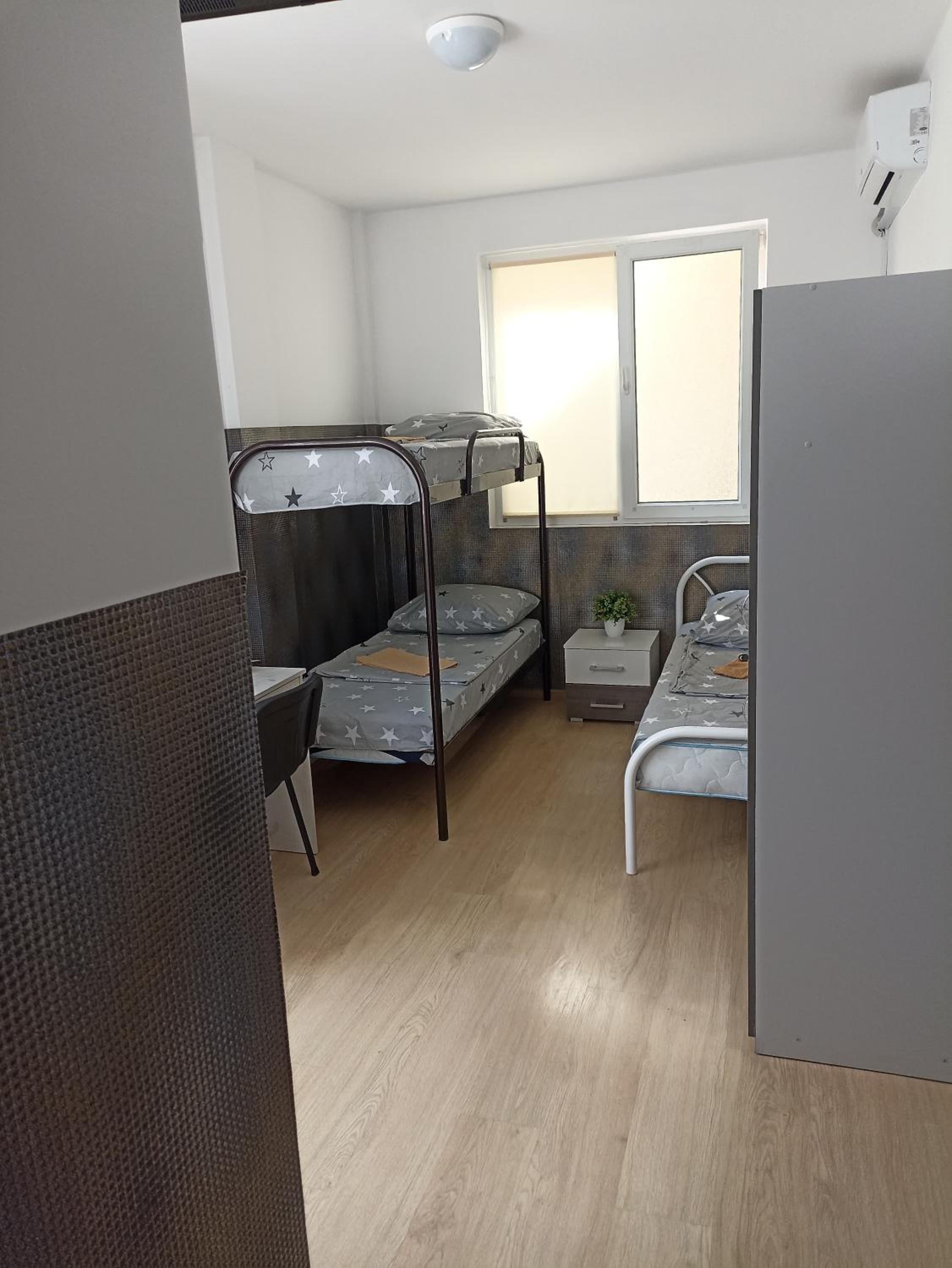 Грязно, неуютно (занавесок на окнах нет), чайника нет, туалетную бумагу пришлось просить , вонючие одеяла и сбитые в один клубок старые подушки. И нет отопления вообще нам включили кондиционер который гудел над головой всю ночь. Комната маленькая где-то 2м на 3м. Не рекомендую.