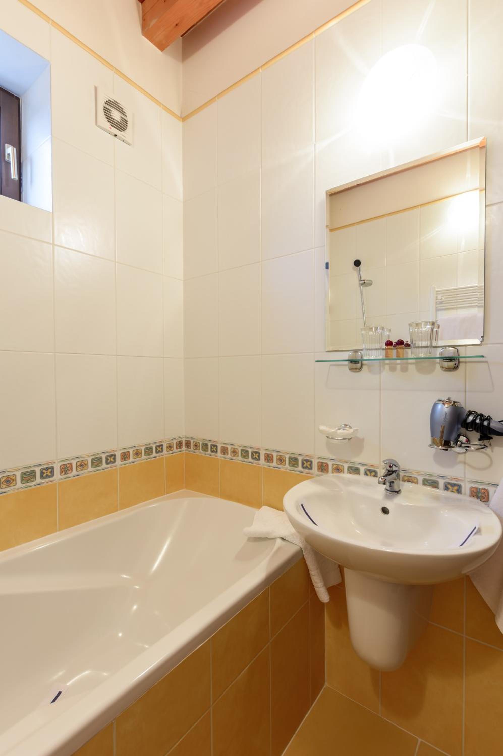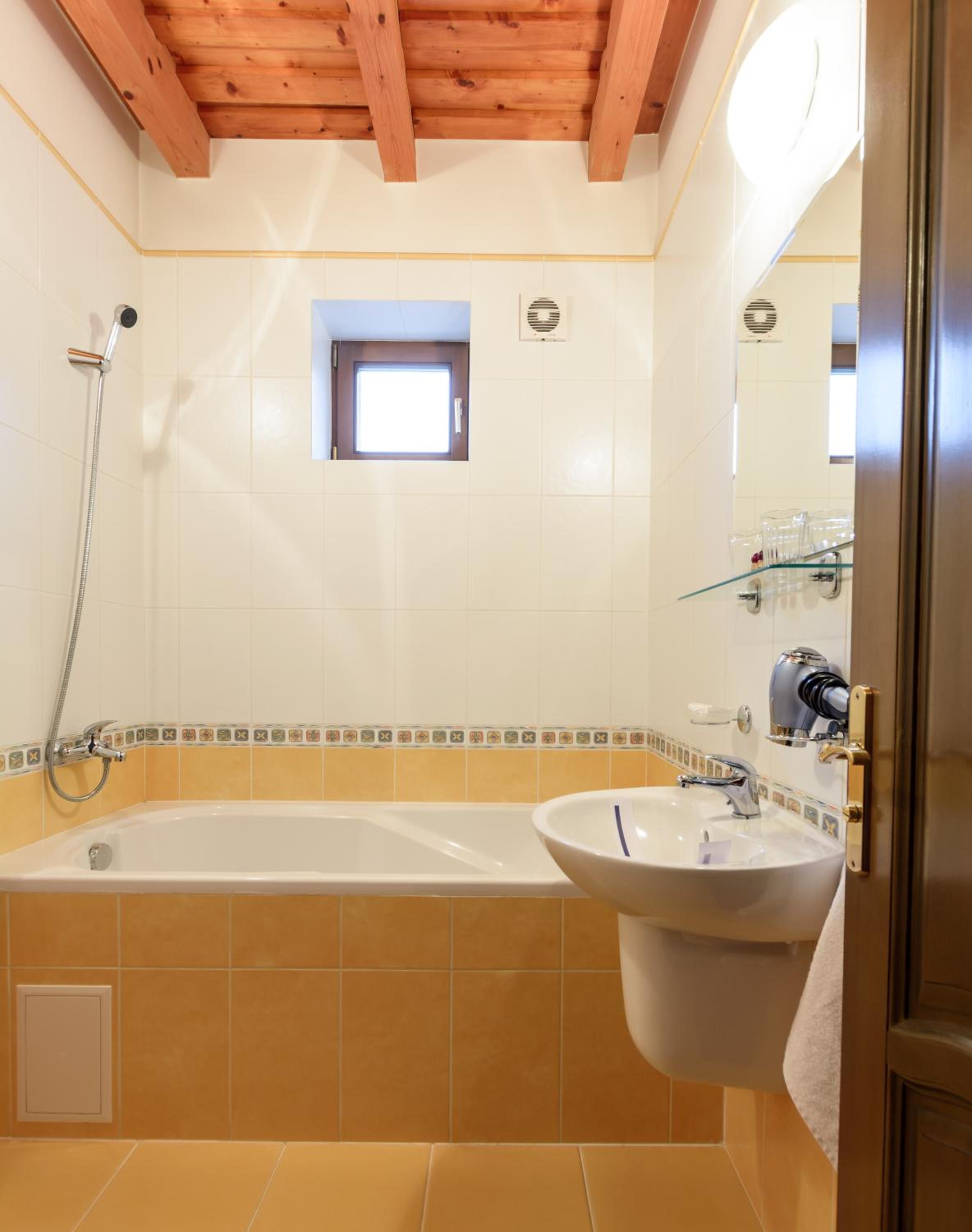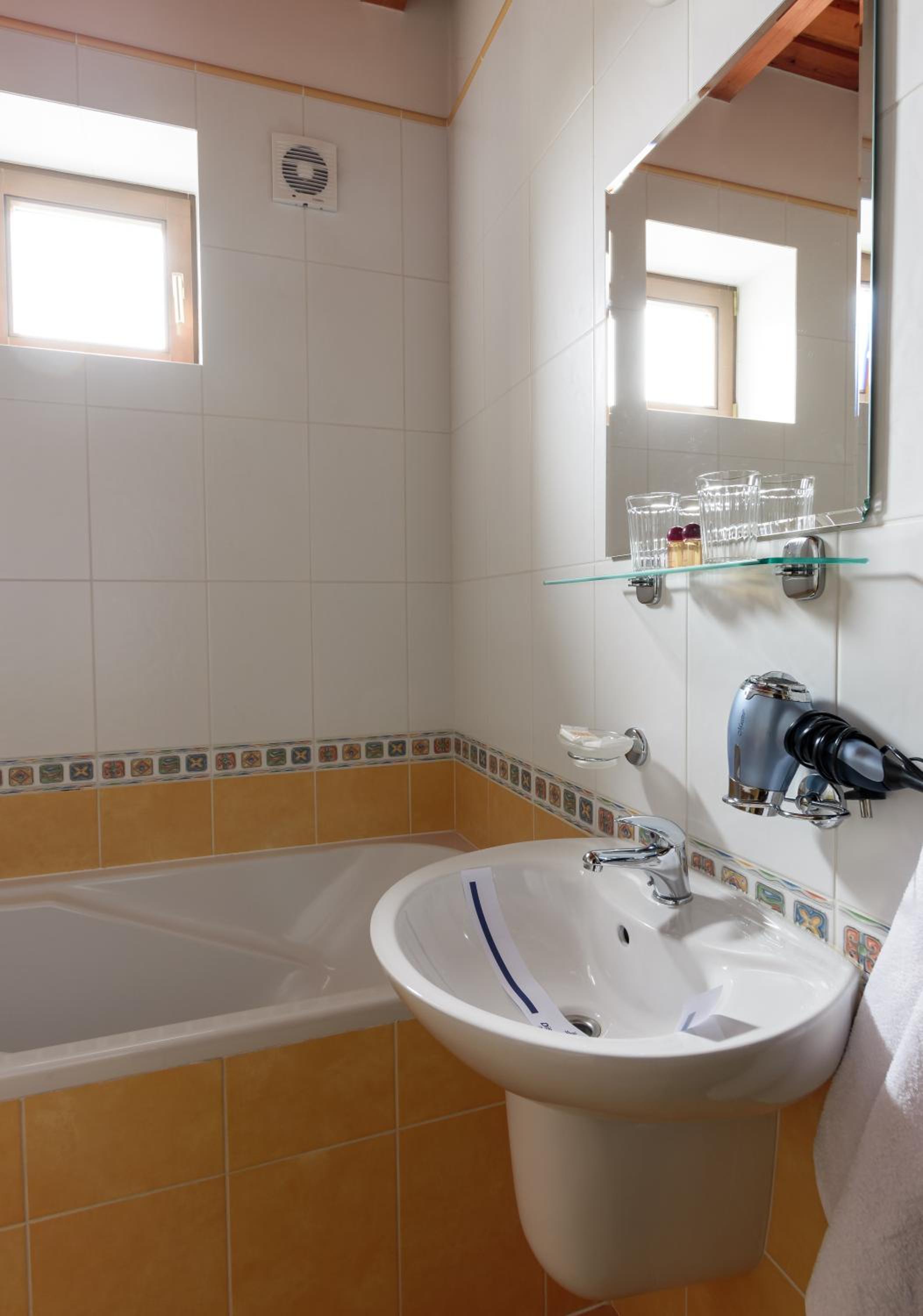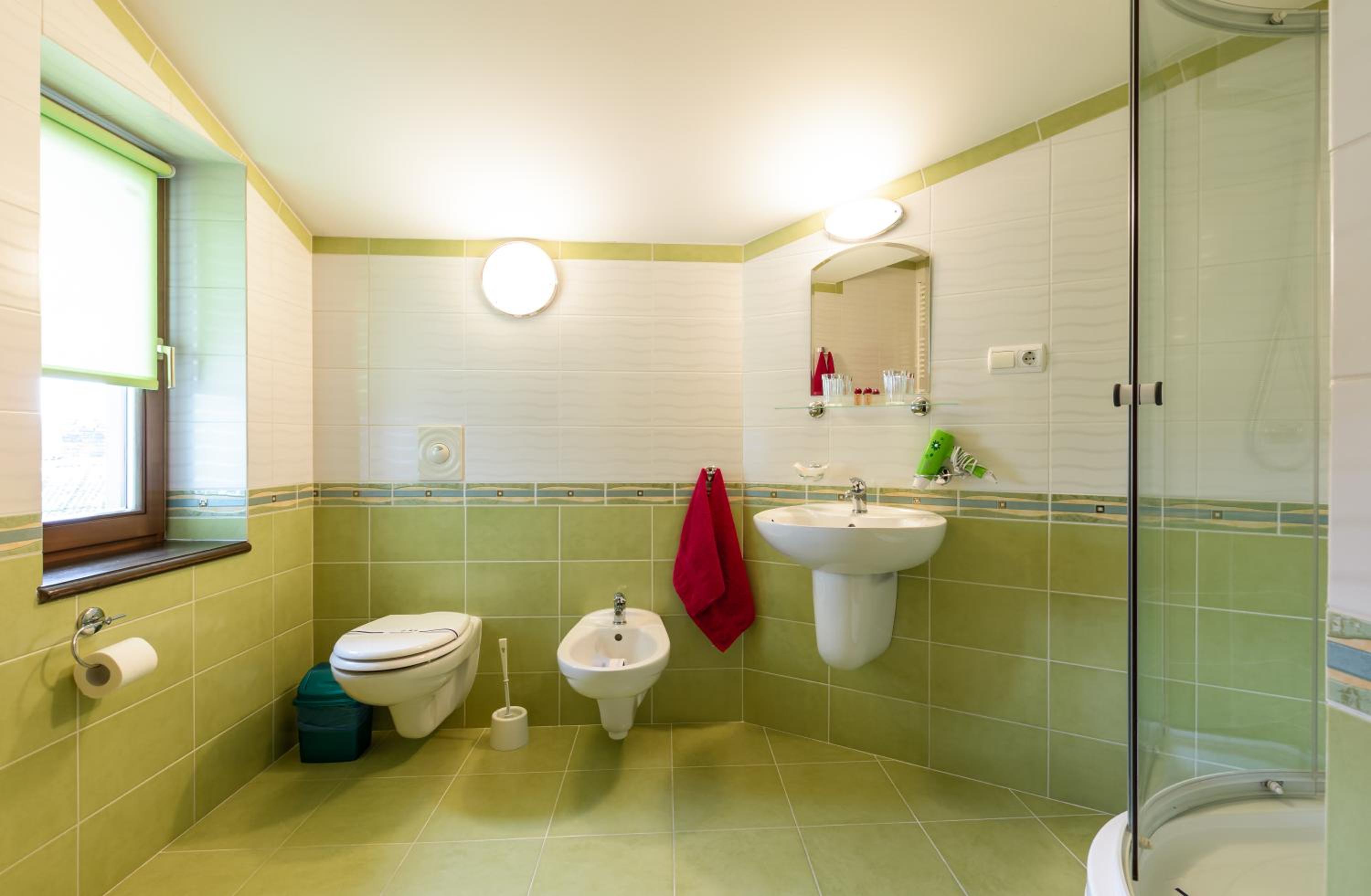 Ванна. Душем важко користуватись, бо нема шторки і вода розплескується на підлогу. В жовтні вже прохолодно, як обігрів запропонували кондиціонер, який взагалі не грів. Добре що ковдра тепла, вночі не мерзли. Чистота номера теж не на висоті. За таку ціну очікували кращого.
