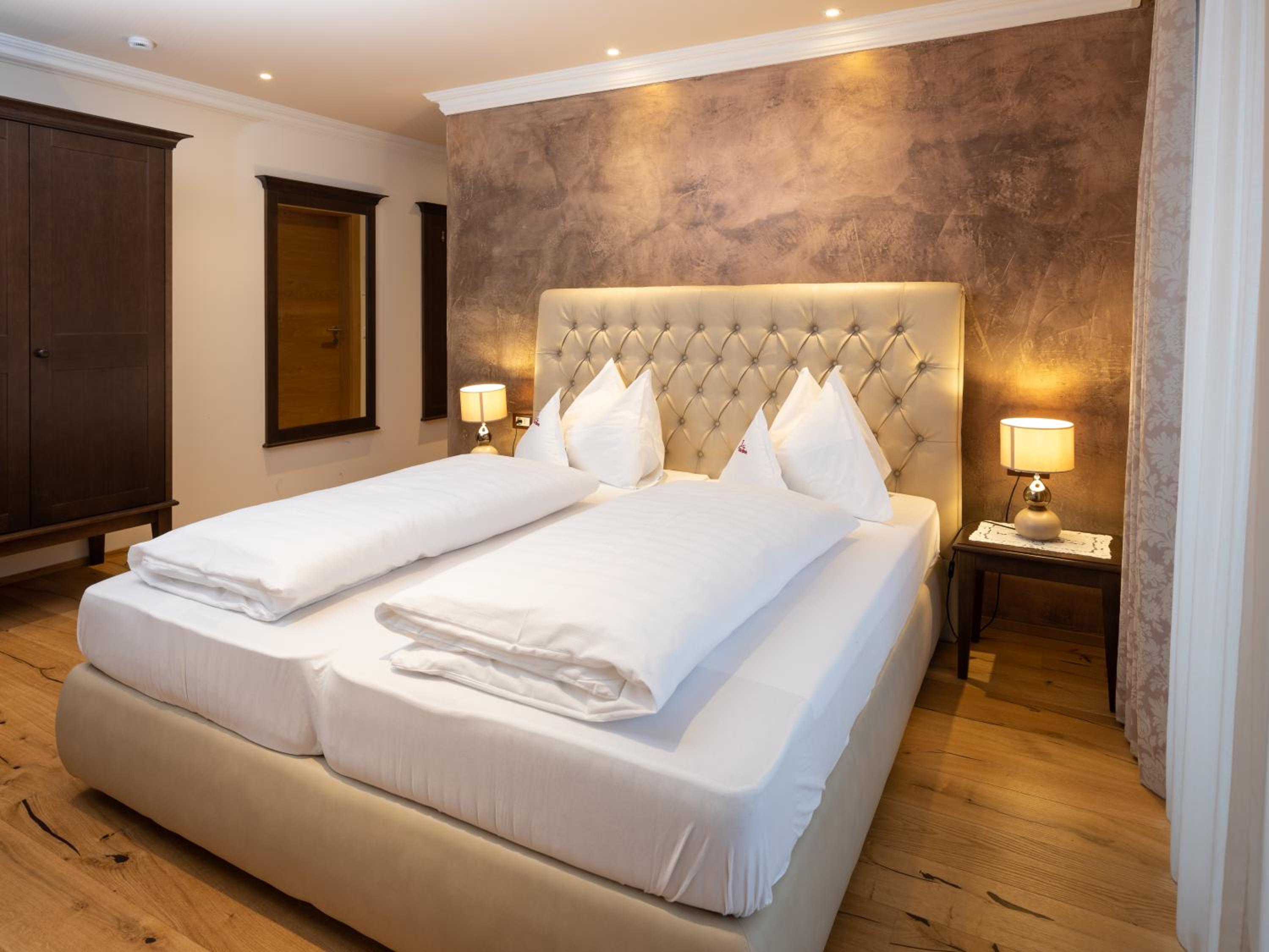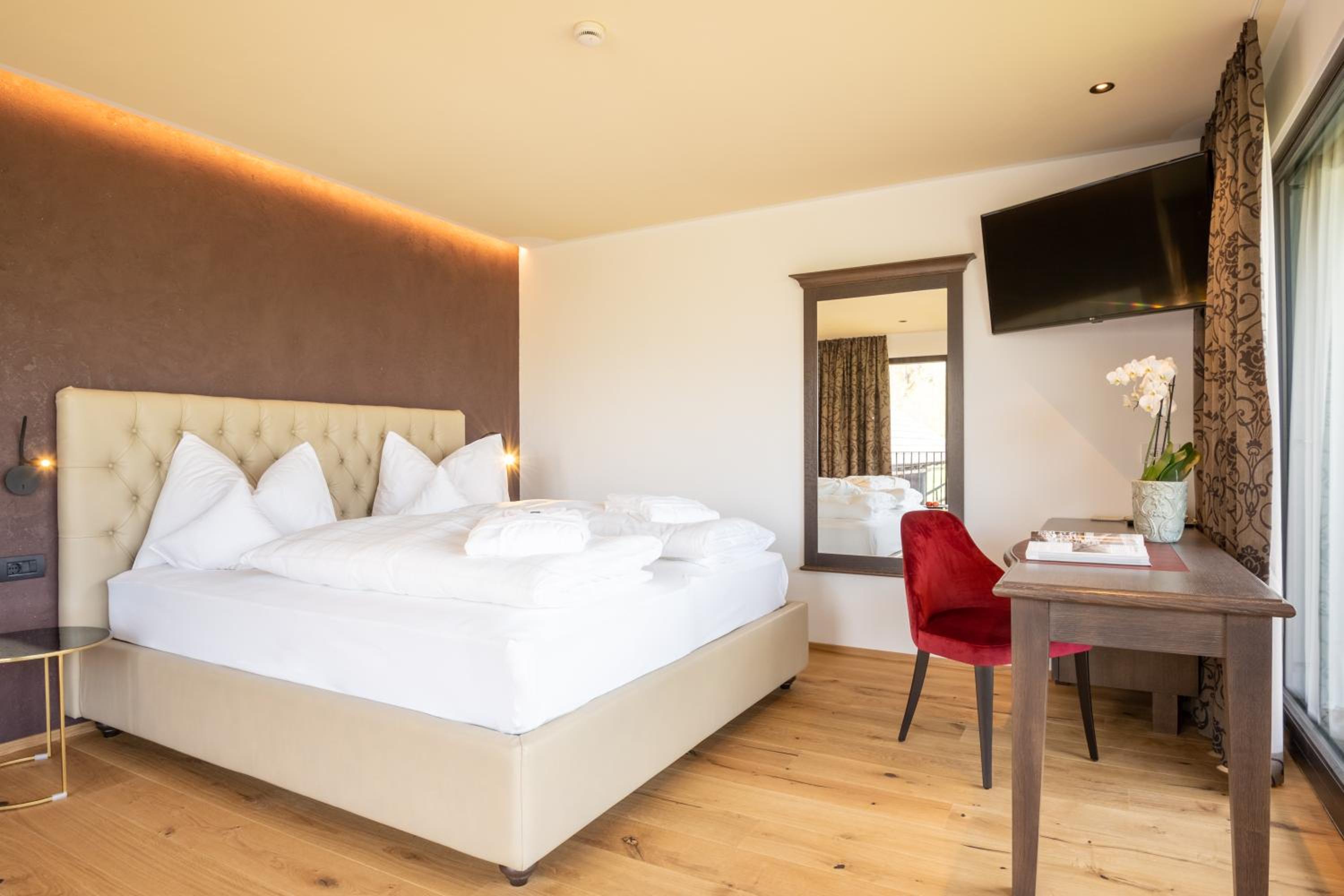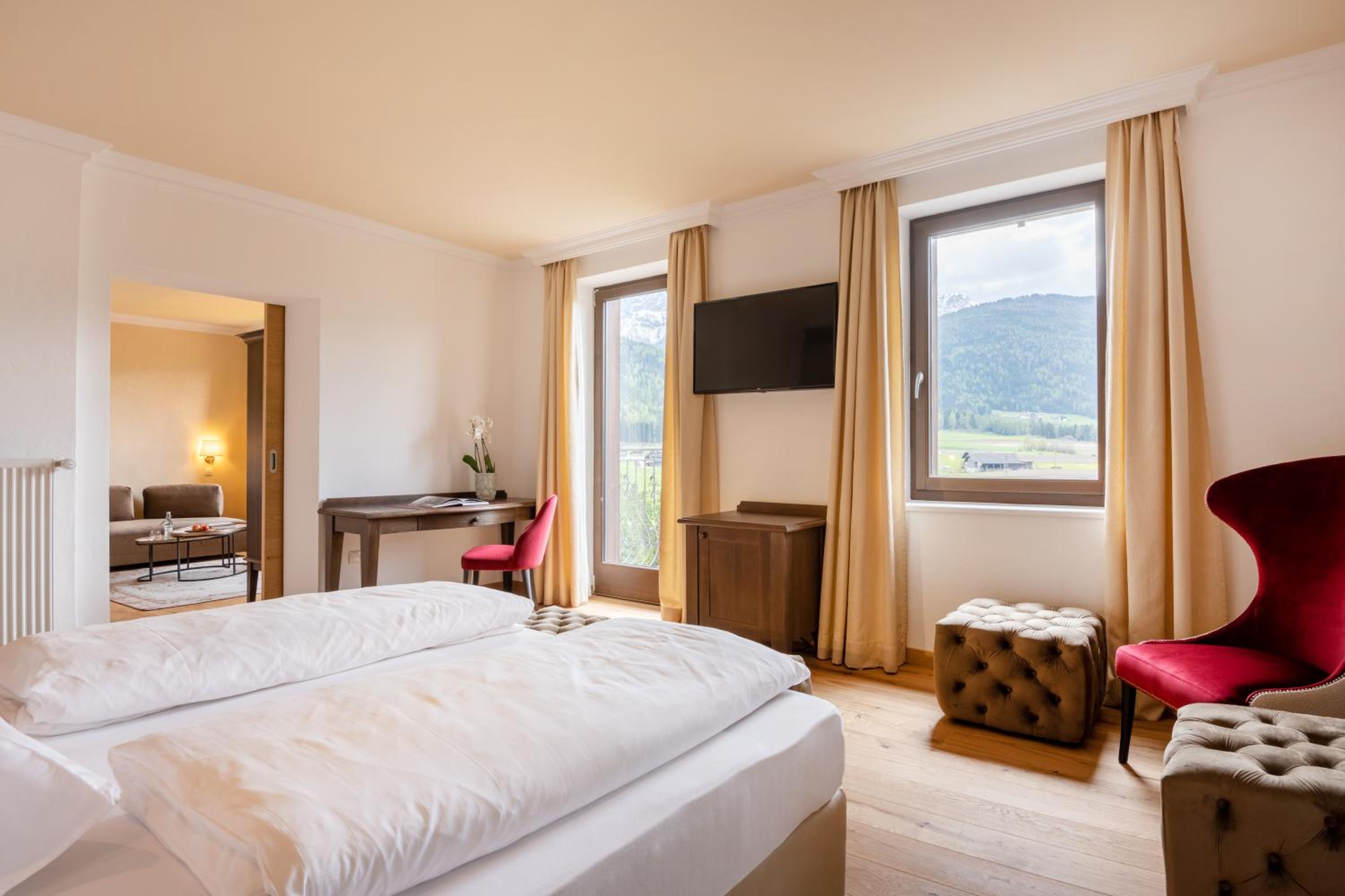 Spectacular Views and Modern Comfort: Enjoy stunning views of Lake Valdaora and the Dolomites from your balcony or terrace in our modern Alpine-style rooms and suites, equipped with all amenities for a comfortable stay.