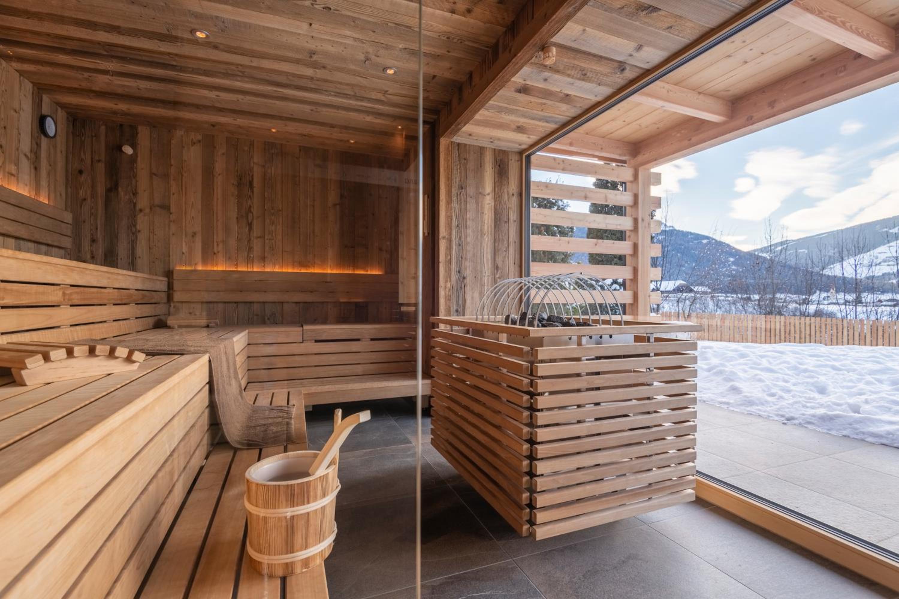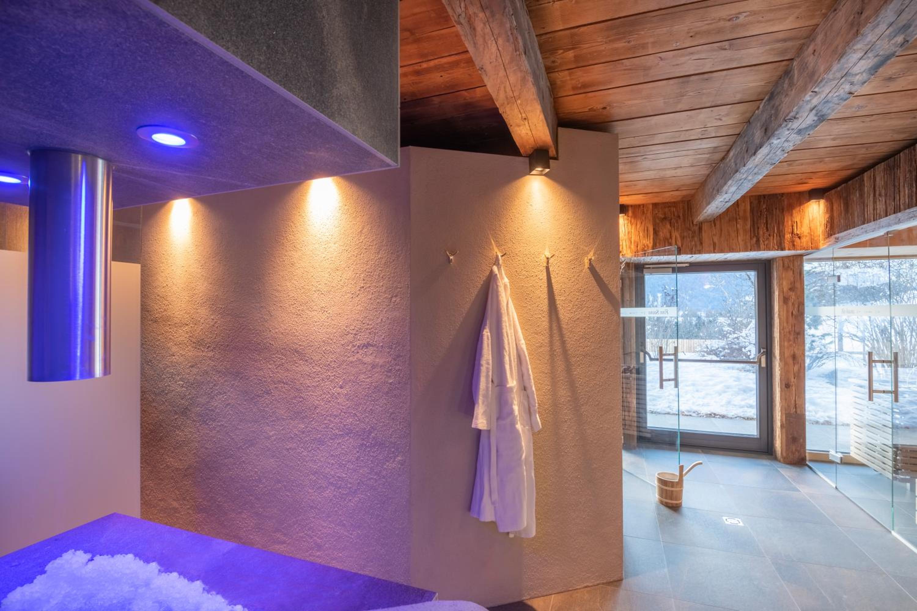 Krásné wellness centrum s možností jít ven, sauny s výhledem do okolí. Odvoz privátním skibusem přímo k lanovce. Velice bohatá snídaně. Prostorný pokoj